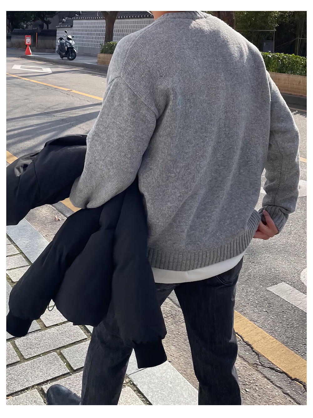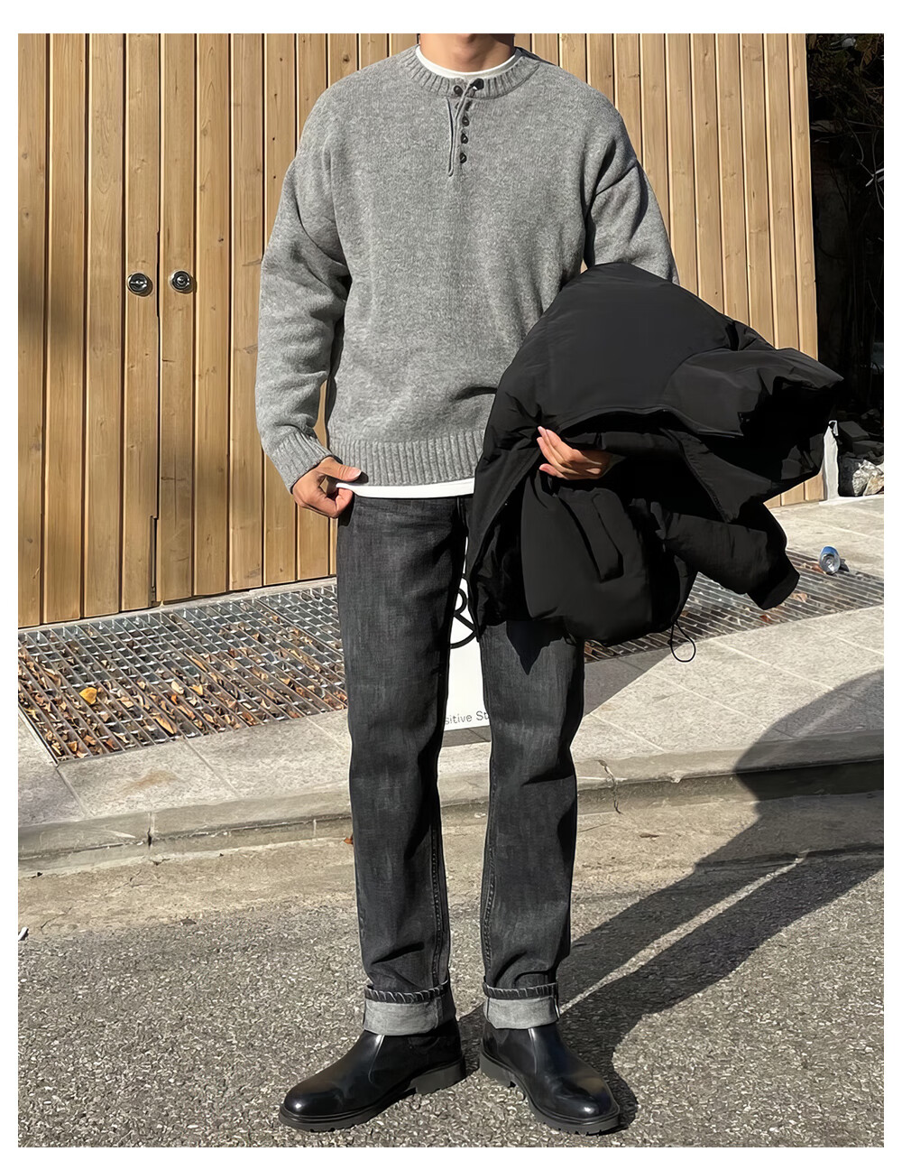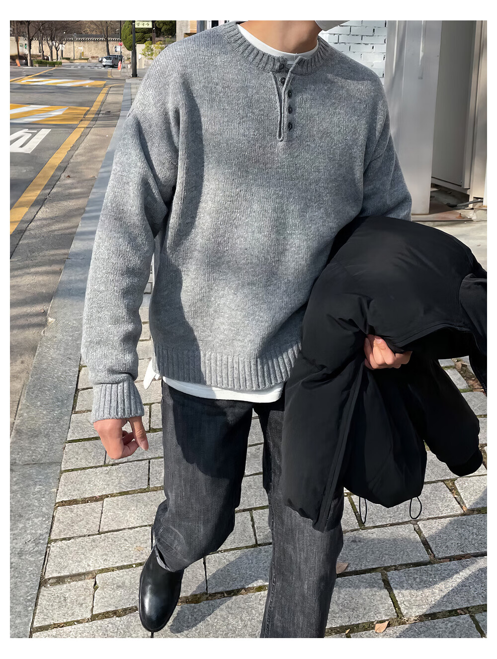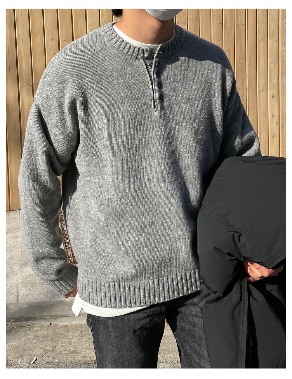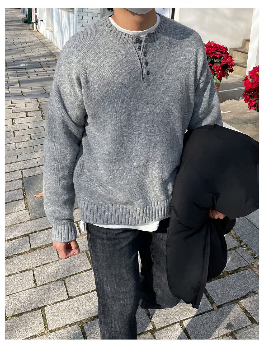 DAVID&ME Henry collar sweater men's spring and autumn new style Japanese retro light literary casual simple versatile loose pullover sweater Army Green M