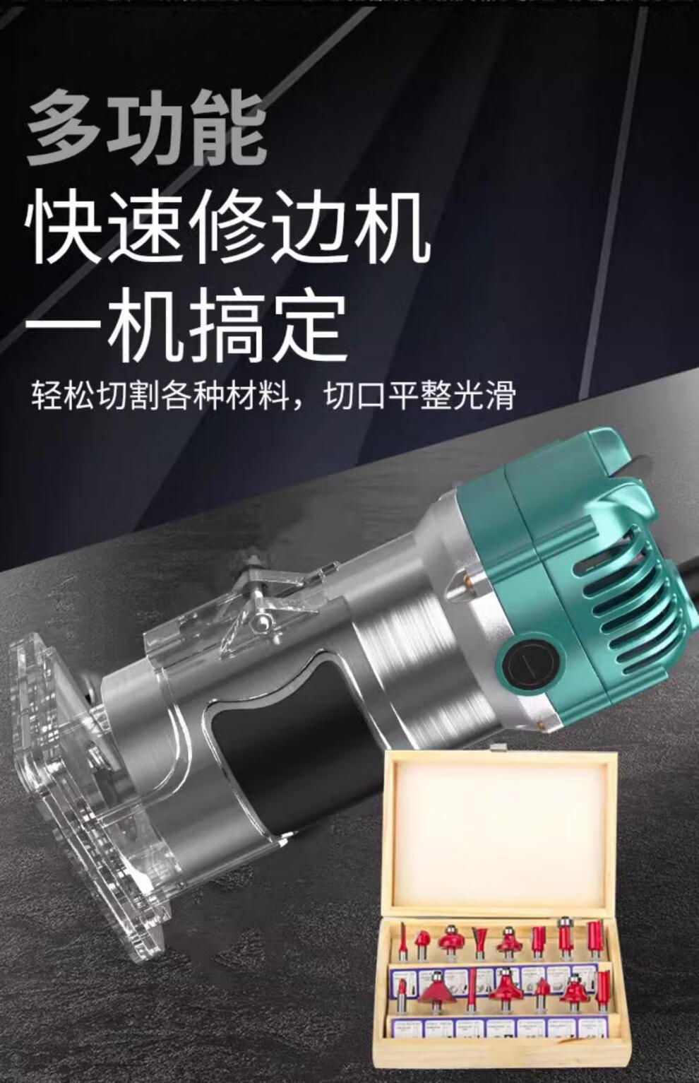 Electric woodworking special edge trimming machine, hole slotting and bending tool, multi-functional household wood milling machine, high power, 6-speed adjustable aluminum body model - 3 meters wire, luxury set