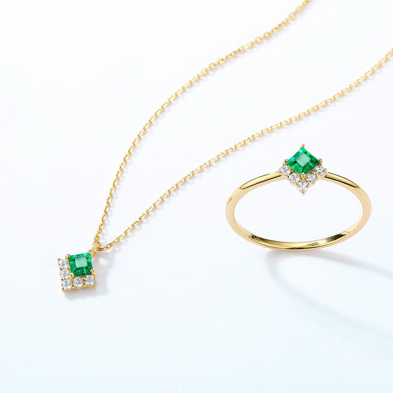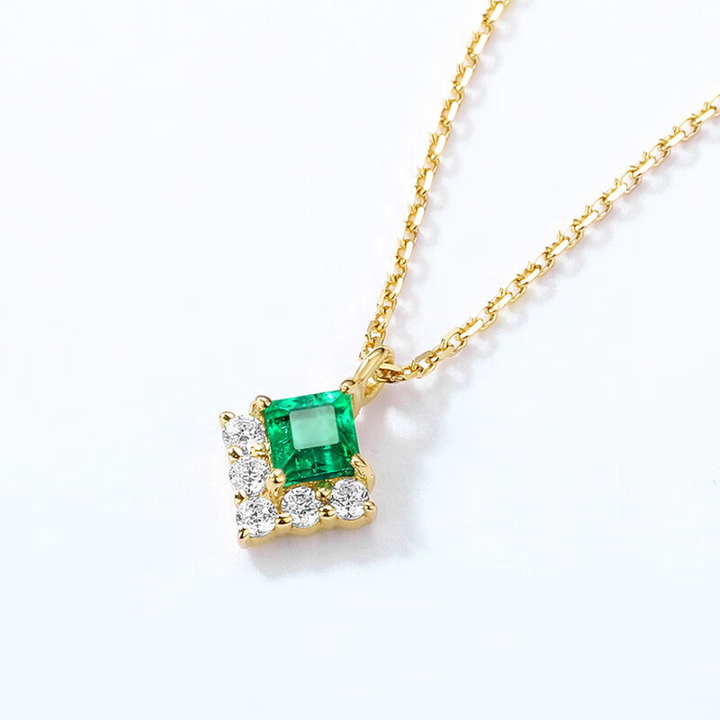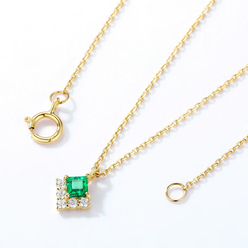 Shengbei 14K gold necklace women's square clavicle chain light luxury exquisite prismatic pendant necklace gold necklace 18K necklace with identification certificate