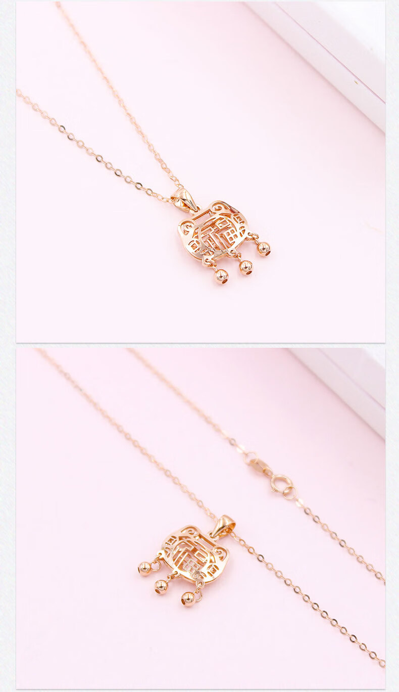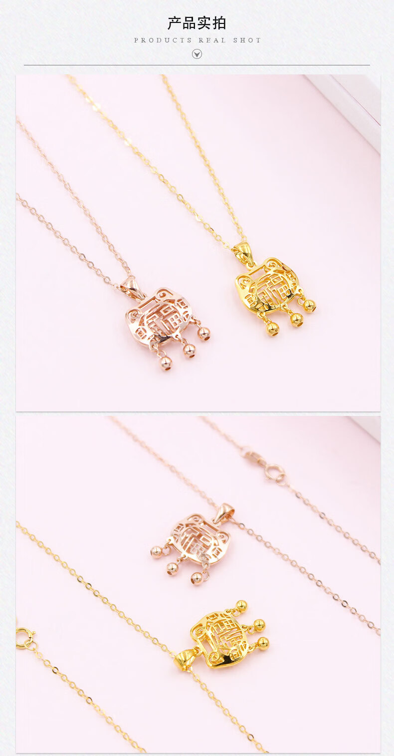 Shengbei 18K gold blessing lock pendant real gold rose gold Ruyi lock necklace au750 color gold clavicle chain set chain necklace 18K gold yellow blessing lock pendant