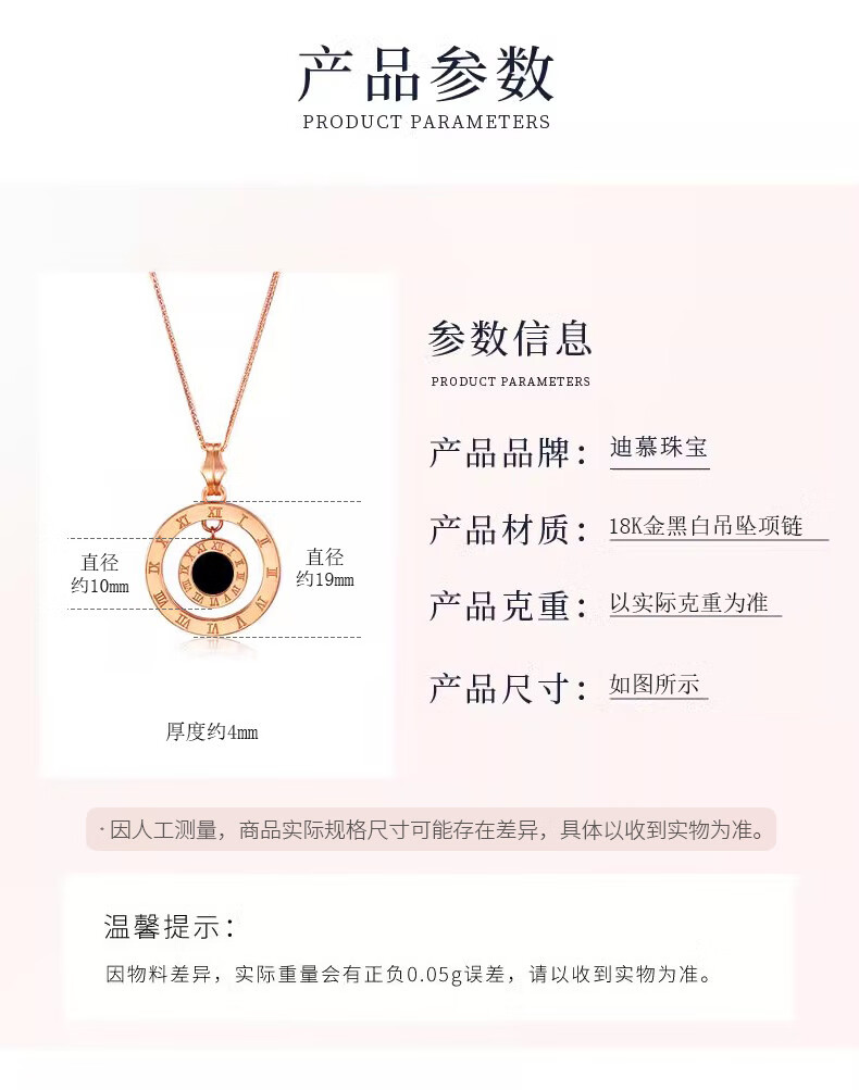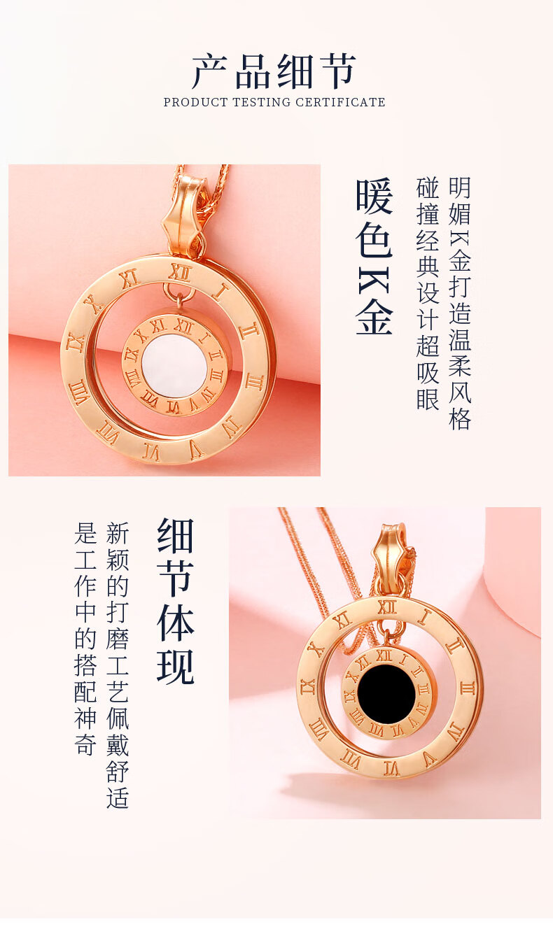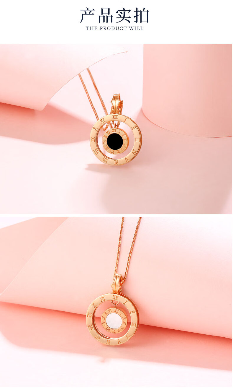 Shengbei 18k gold necklace for women, black agate and white mother-of-pearl double-sided pendant, second wear style, colored gold clavicle chain, 520 gift for girlfriend, 18K gold second wear style pendant