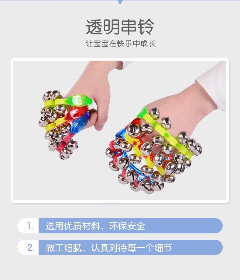 Yuan ethnic group hand bells and string bells Orff kindergarten performance children's rattles baby hand bells hand-held bells baby string bells stick bells red pair dedicated to children's performance/instrument enlightenment teaching