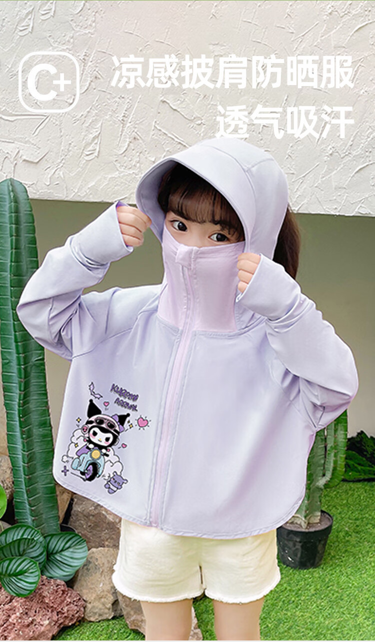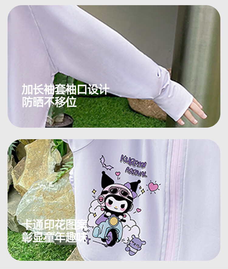 SKONWAT Kuromi Girls' Sun Protection Clothes Summer 2025 New Children's Ice Silk Feel Girl Baby Thin Cloak Jacket Purple Kuromi - Top 110 (recommended height is about 110-115cm)