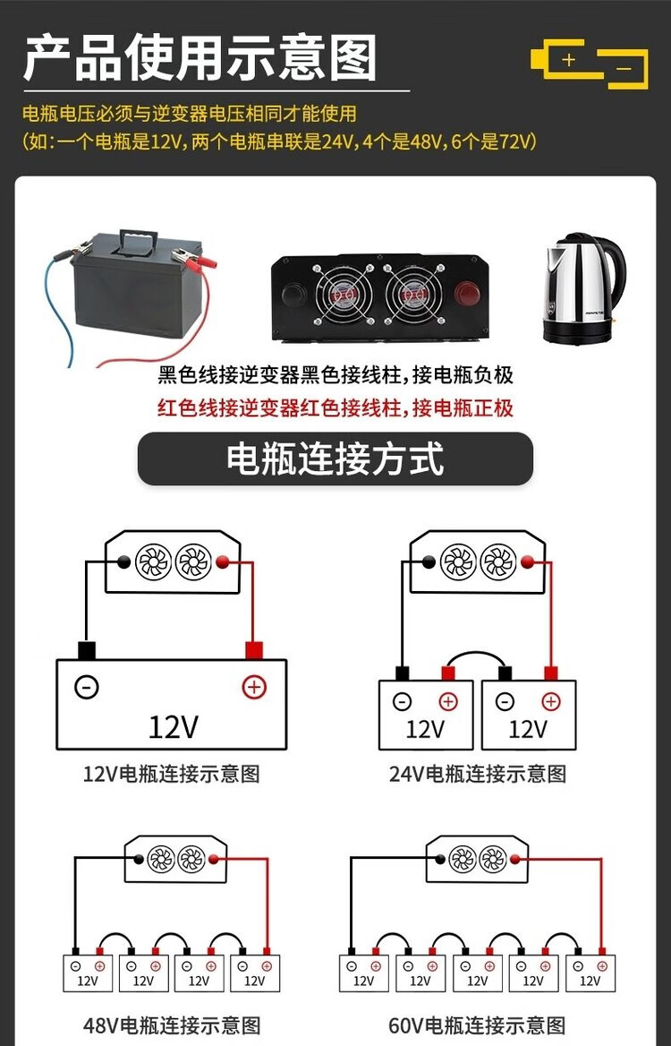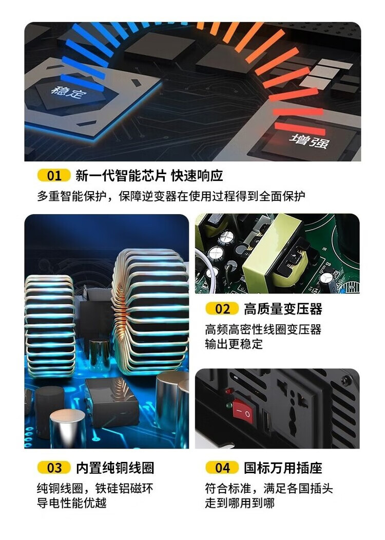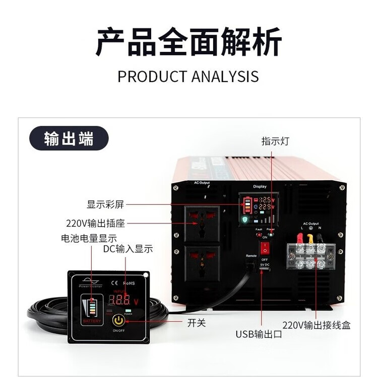 Power frequency inverter pure sine wave household photovoltaic vehicle 12V/24V/48V/60V/72V 96V to 220V extra high power pure sine wave inverter 60000W 24V to 220V