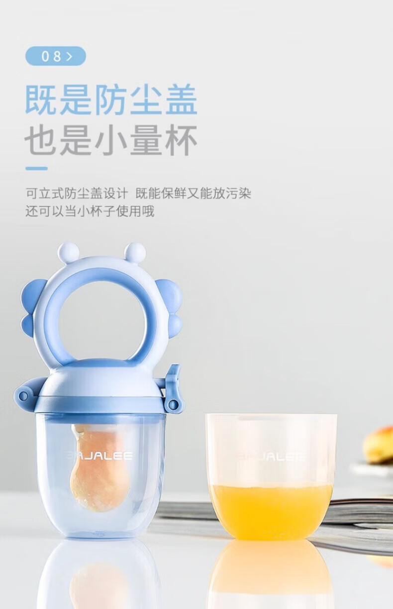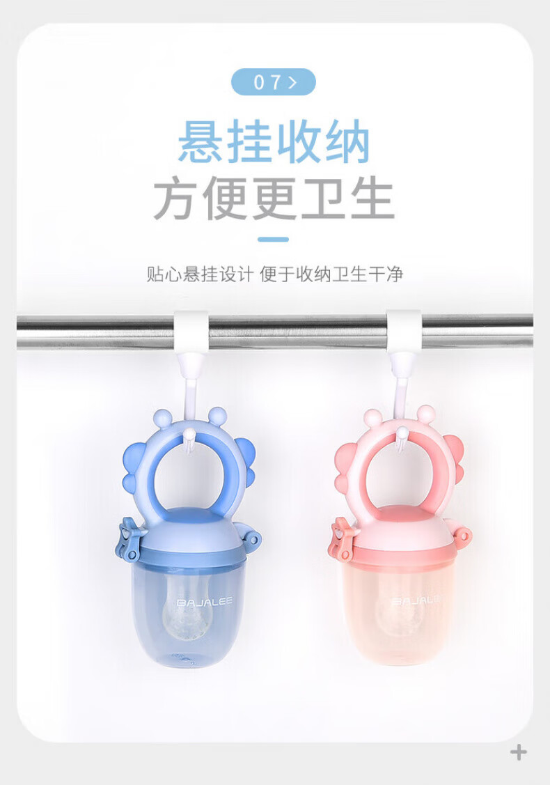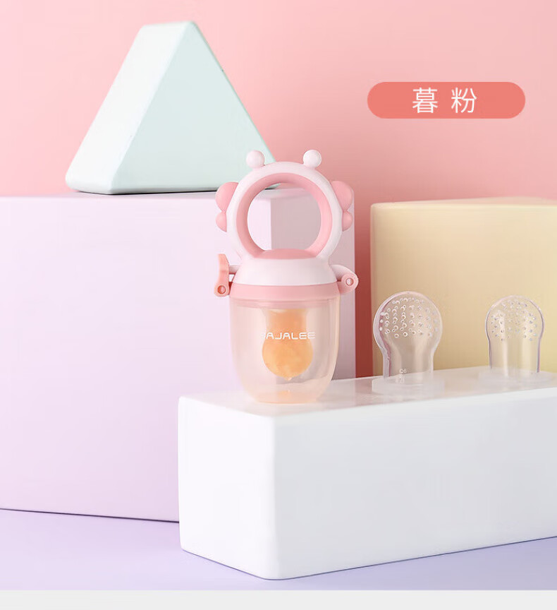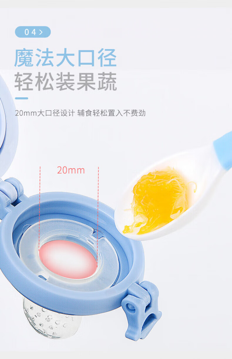 Qiaran Japanese baby chewing and eating fruit can push silicone food fruit and vegetable baby to eat fruit food supplement soothing teether chewing bag glacier blue 1 pack
