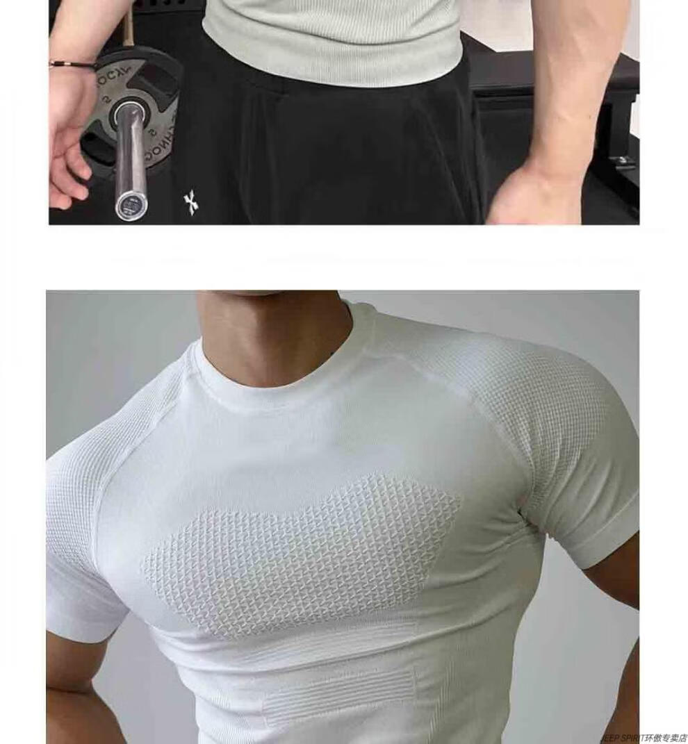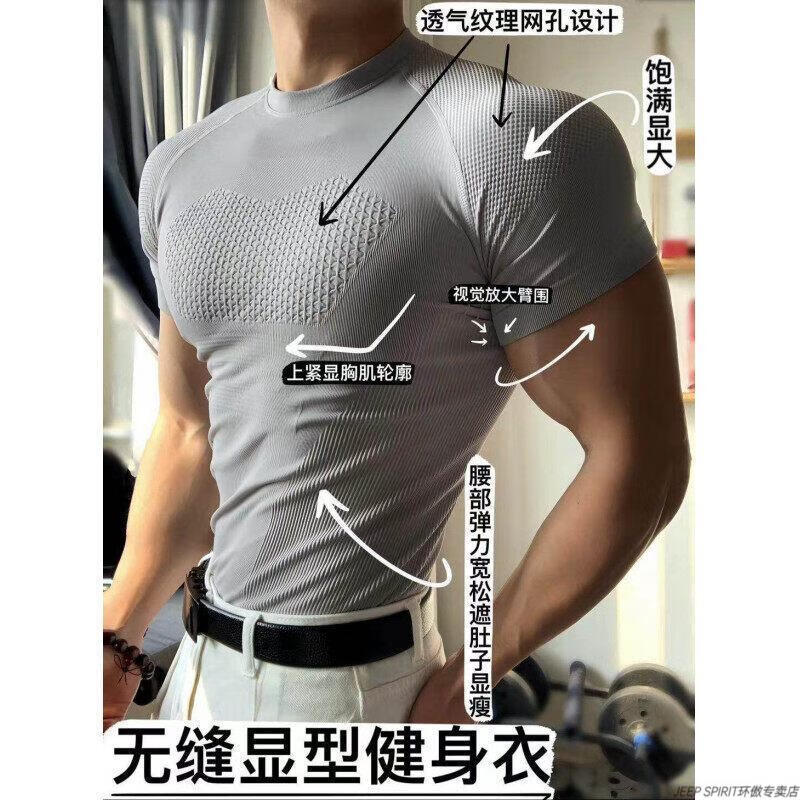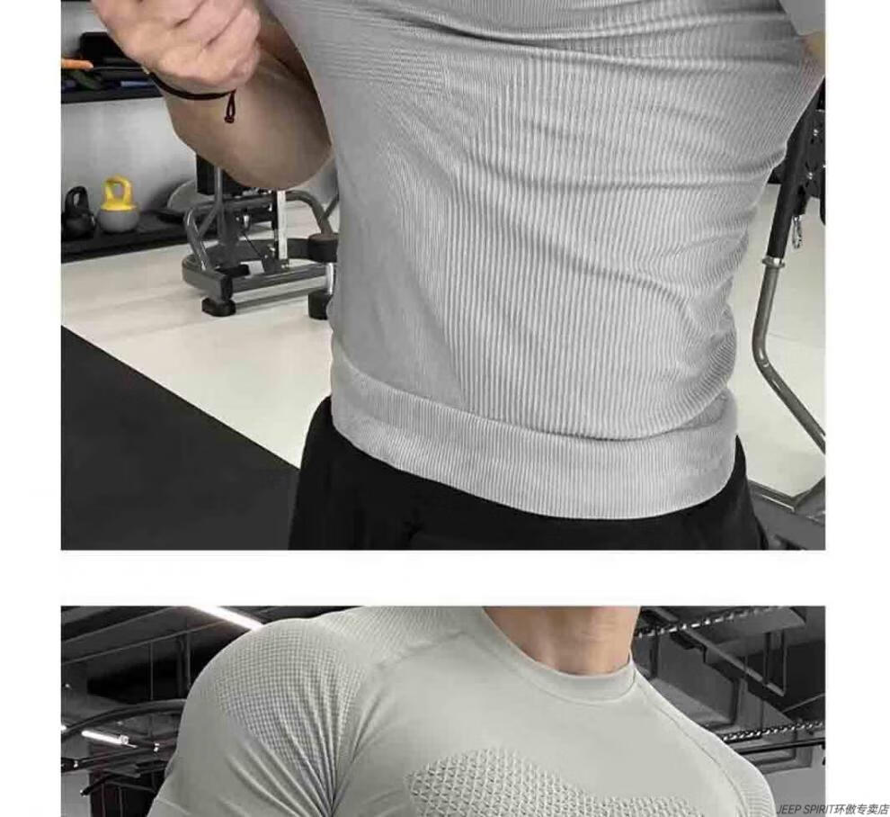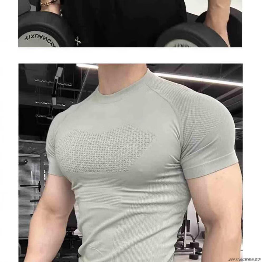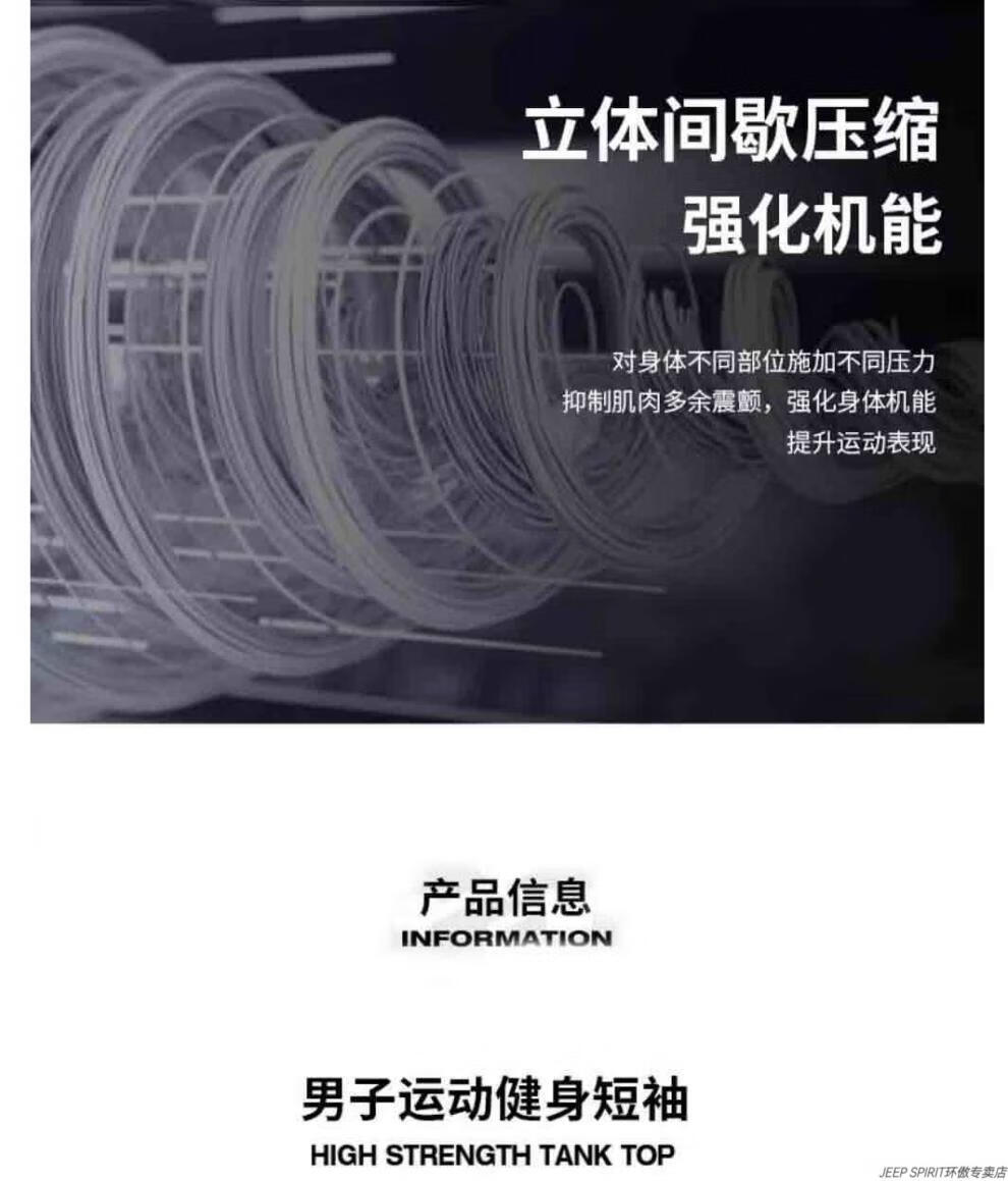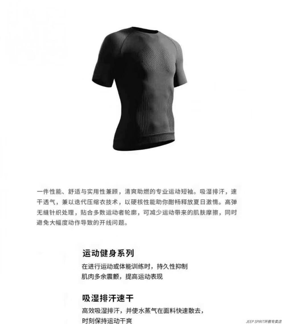 JEEP SPIRIT seamless quick-drying breathable sports fitness short-sleeved T-shirt running training cycling clothing compression tight elastic top for men classic black--quick-drying sports short sleeves M