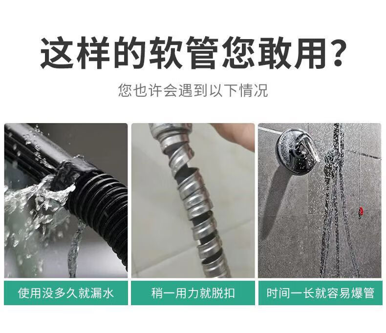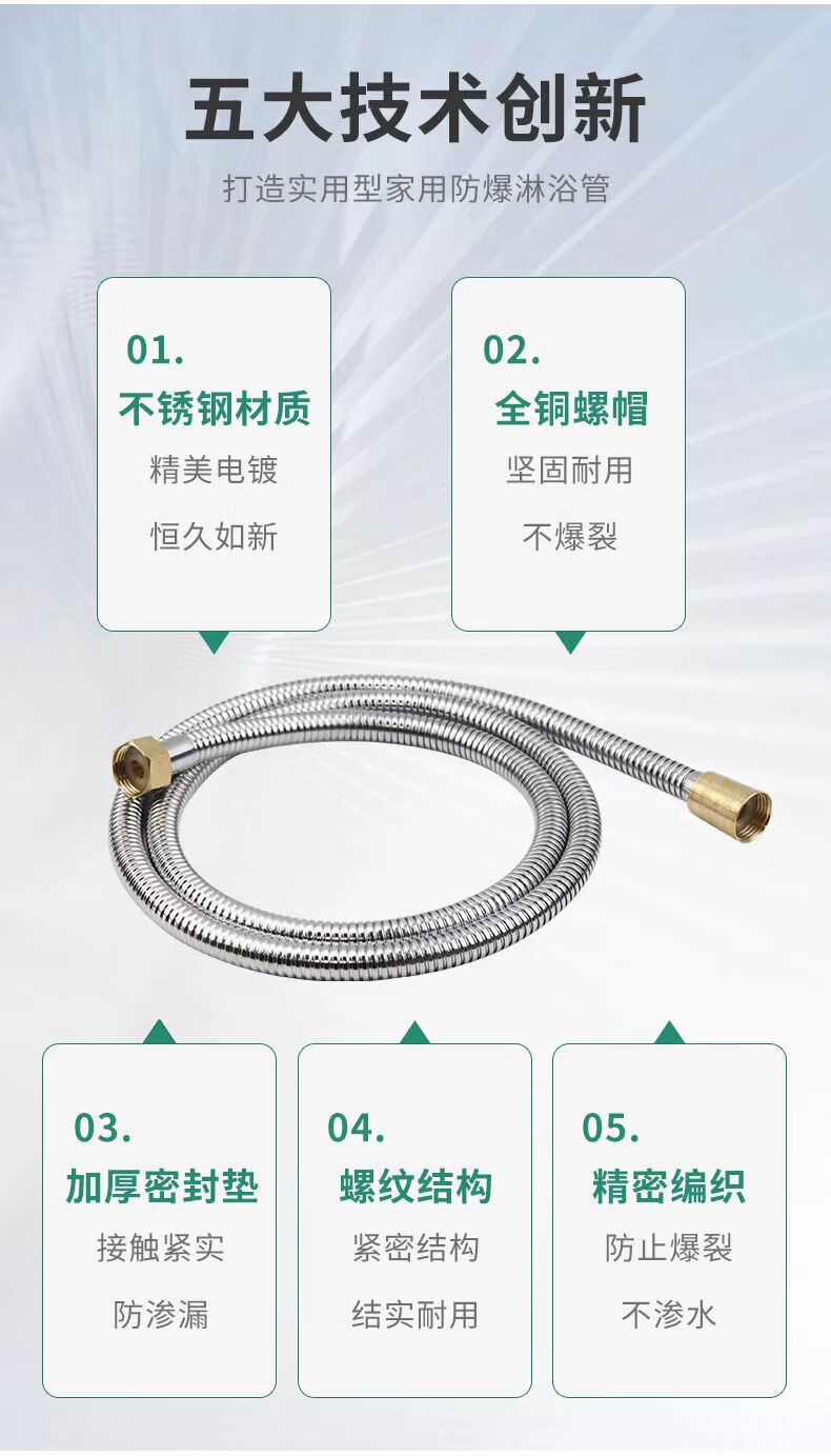 Haofanjie shower hose 3 meters universal shower head extension connection water pipe bathroom water heater water outlet stainless steel hose 3 meters stainless steel encrypted explosion-proof hose 1.5 times encryption
