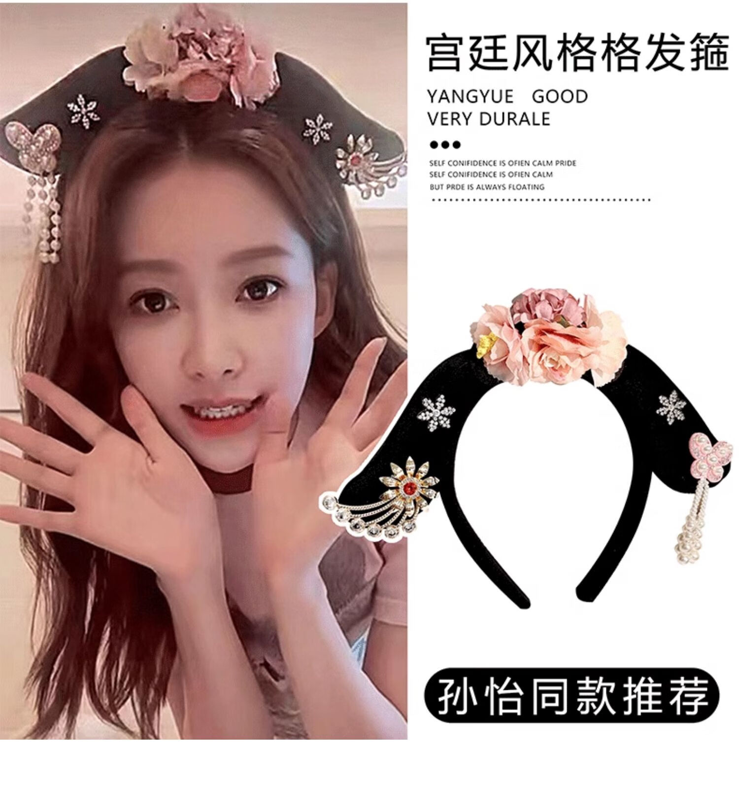 XPEL Princess Hairband Palace Style Nobles Flag Headband Zhen Huan Chuan Empress Royal Concubine Hairpin Performance Props Headwear Hair Accessory Princess Hairband-Guiren 1 piece package Free eyebrow stickers