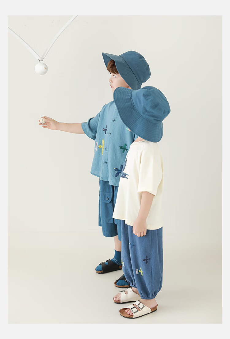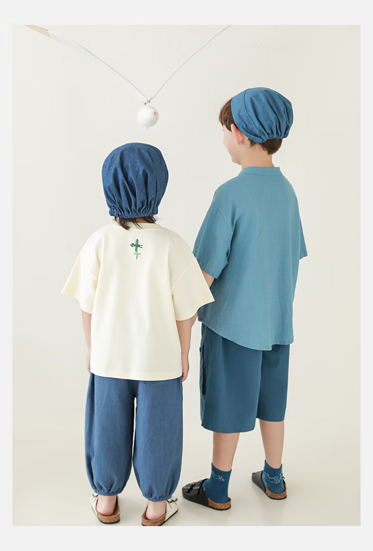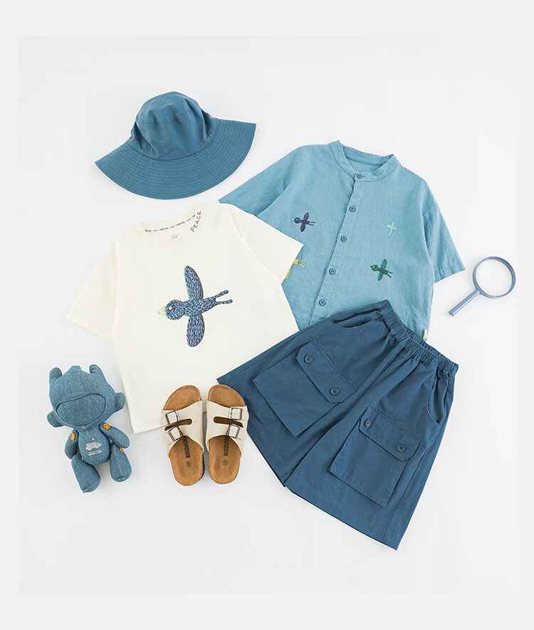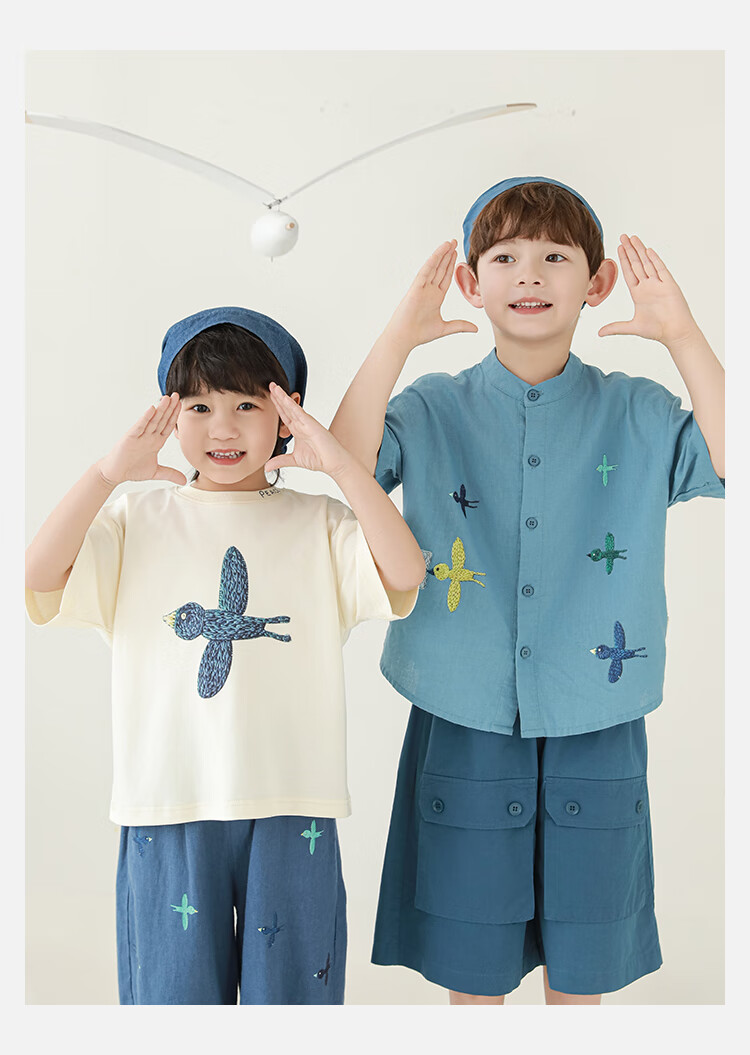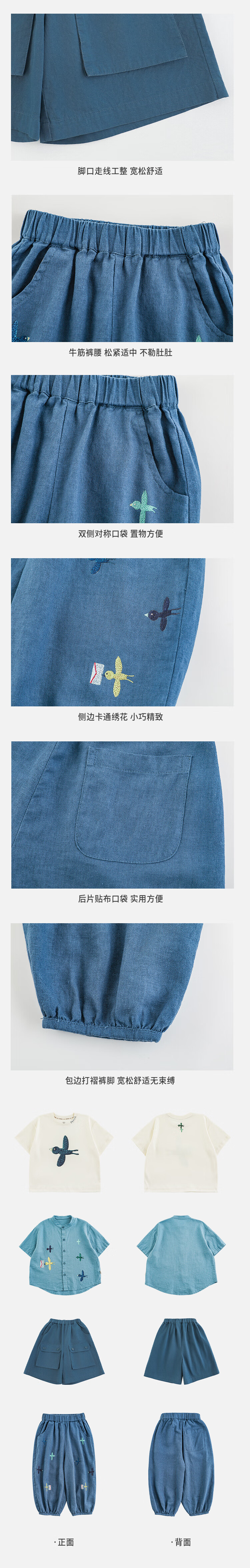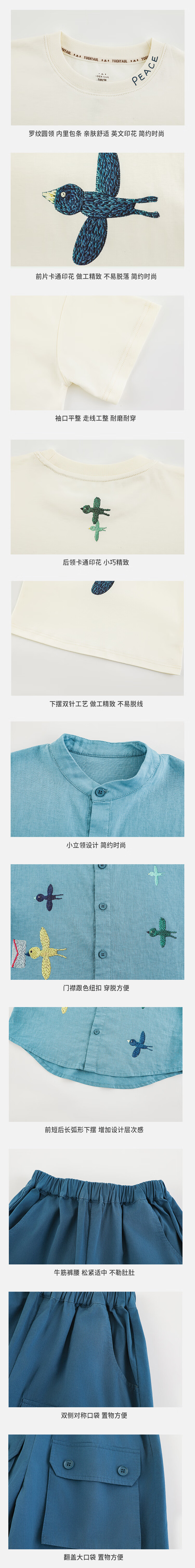 Youyou boys 2025 summer new short-sleeved T-shirt round neck handsome shirt overalls shorts carrier pigeon suit shirt blue green N5729 80 cm
