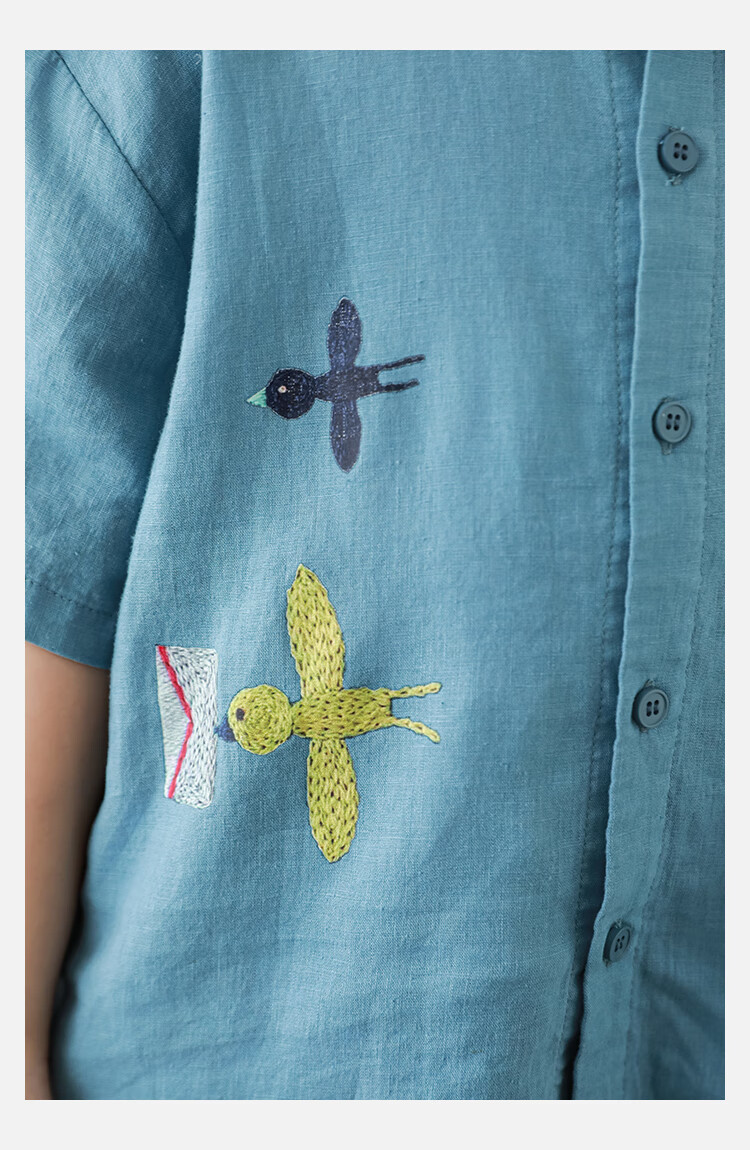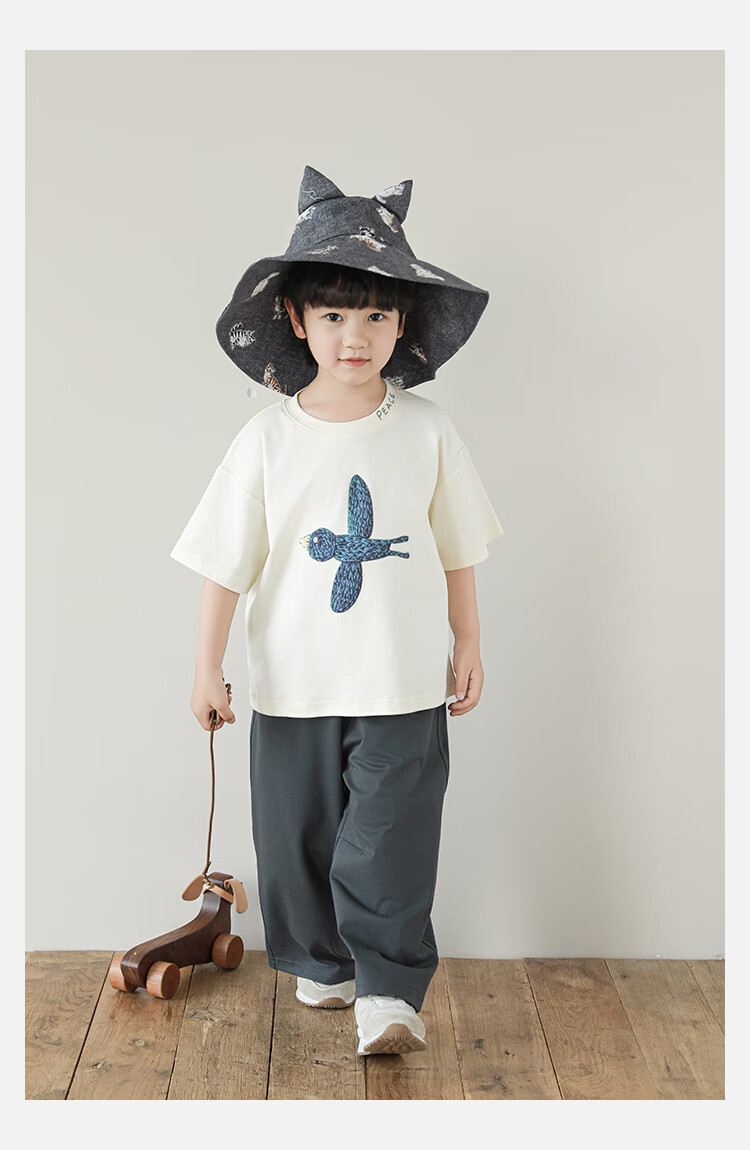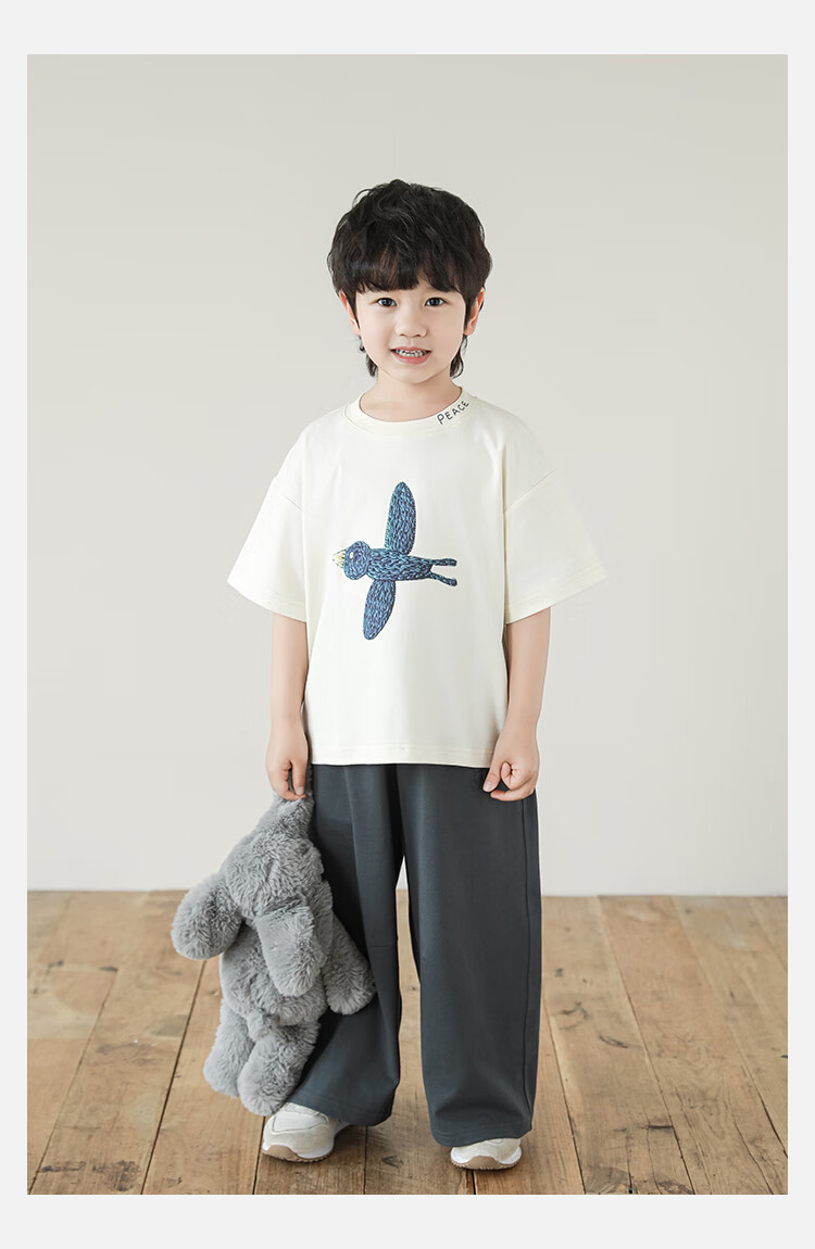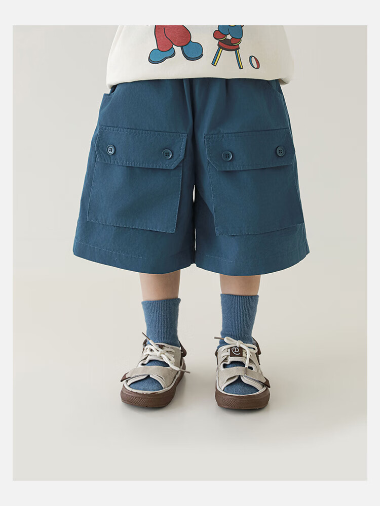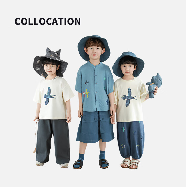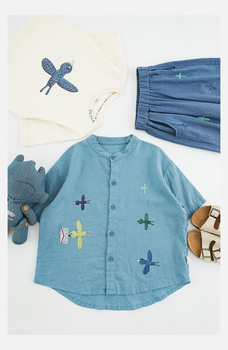 Youyou boys 2025 summer new short-sleeved T-shirt round neck handsome shirt overalls shorts carrier pigeon suit shirt blue green N5729 80 cm