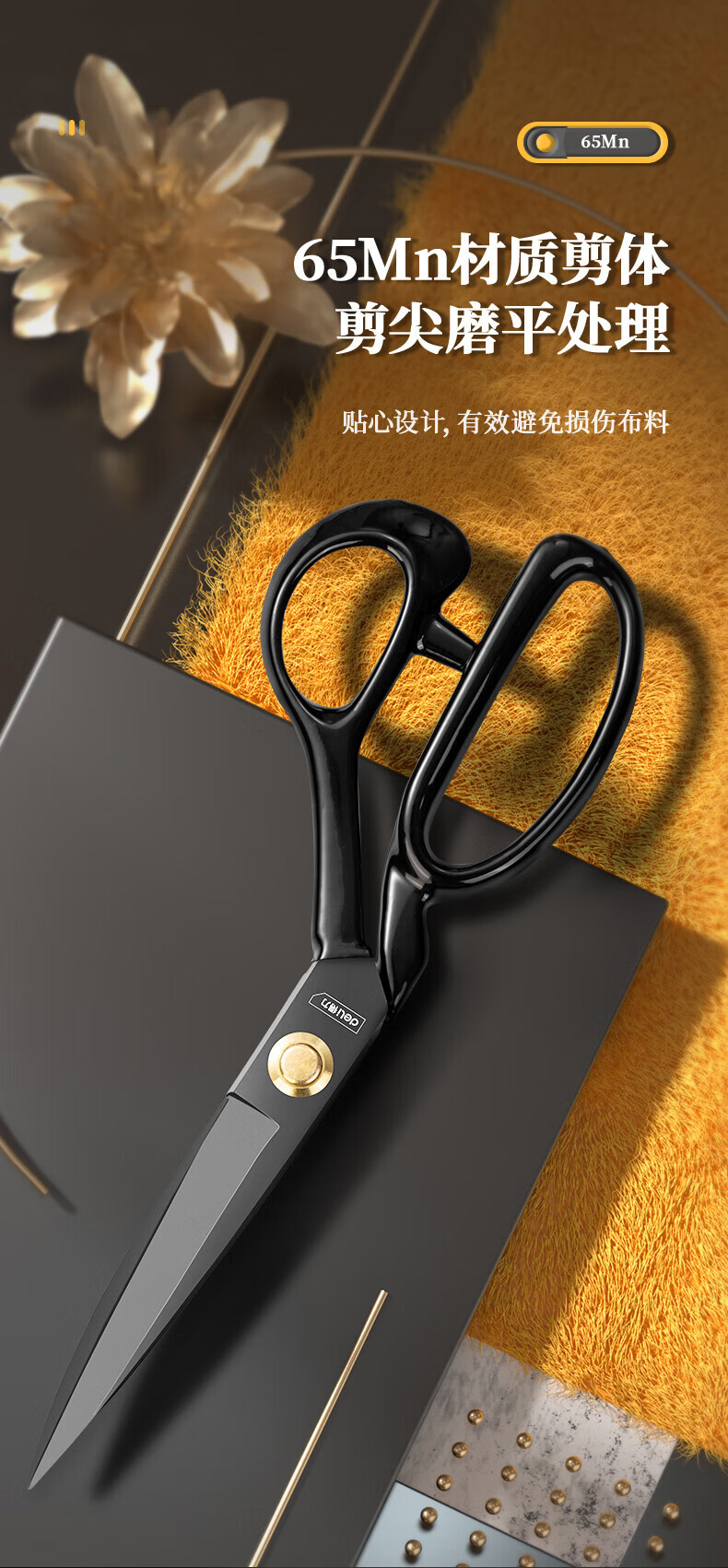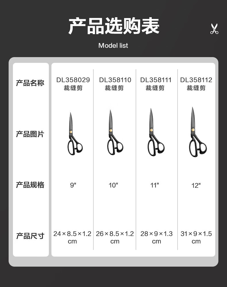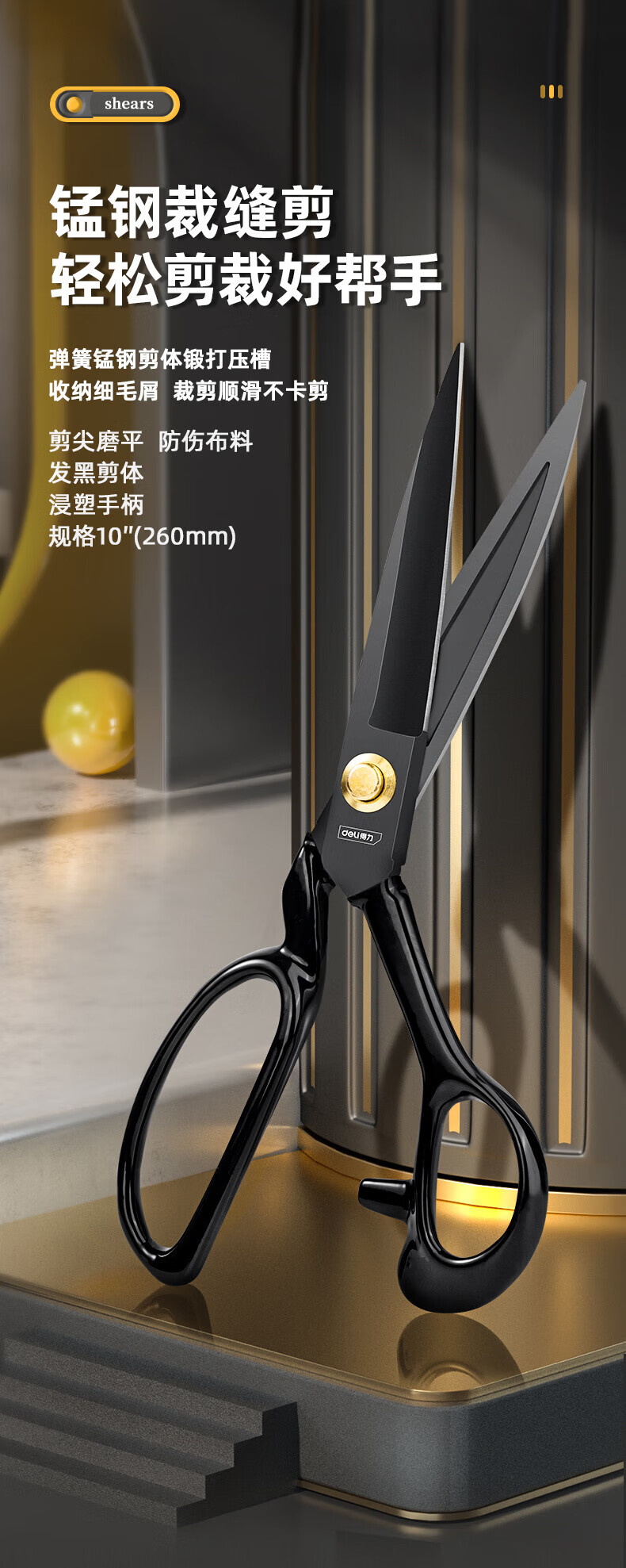 Deli industrial sewing scissors, tailor's scissors, clothing scissors, professional cutting scissors, 9-inch special household cloth cutting scissors, 9-inch manganese steel tailor's scissors