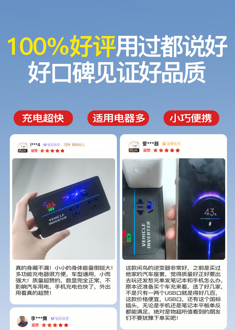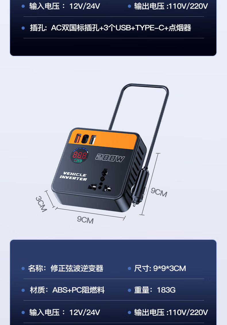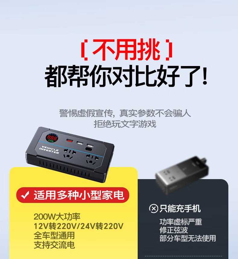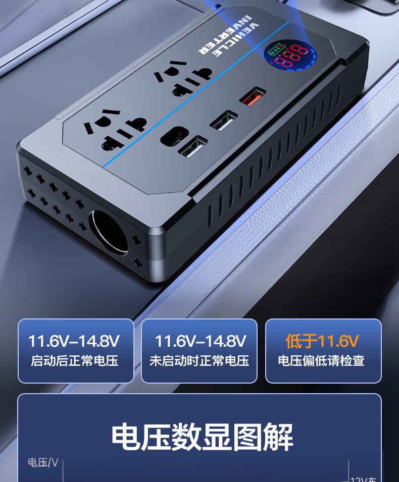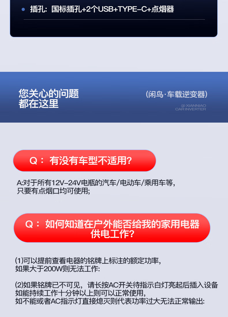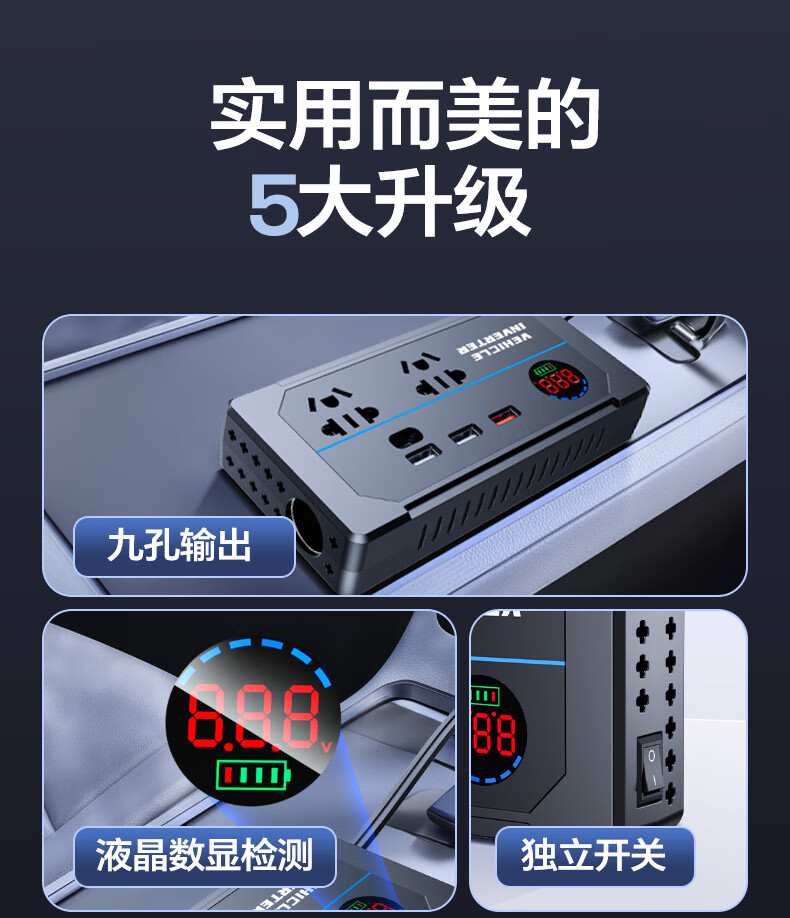 Xianniao car inverter 12v24v to 220v pure sine wave high-power fast charging cigarette lighter battery power converter upgrade flash charge 12/24V universal AC output car and truck universal multi-function transformer socket socket