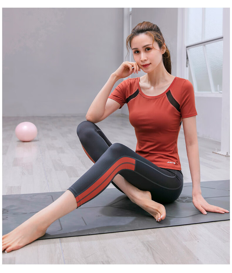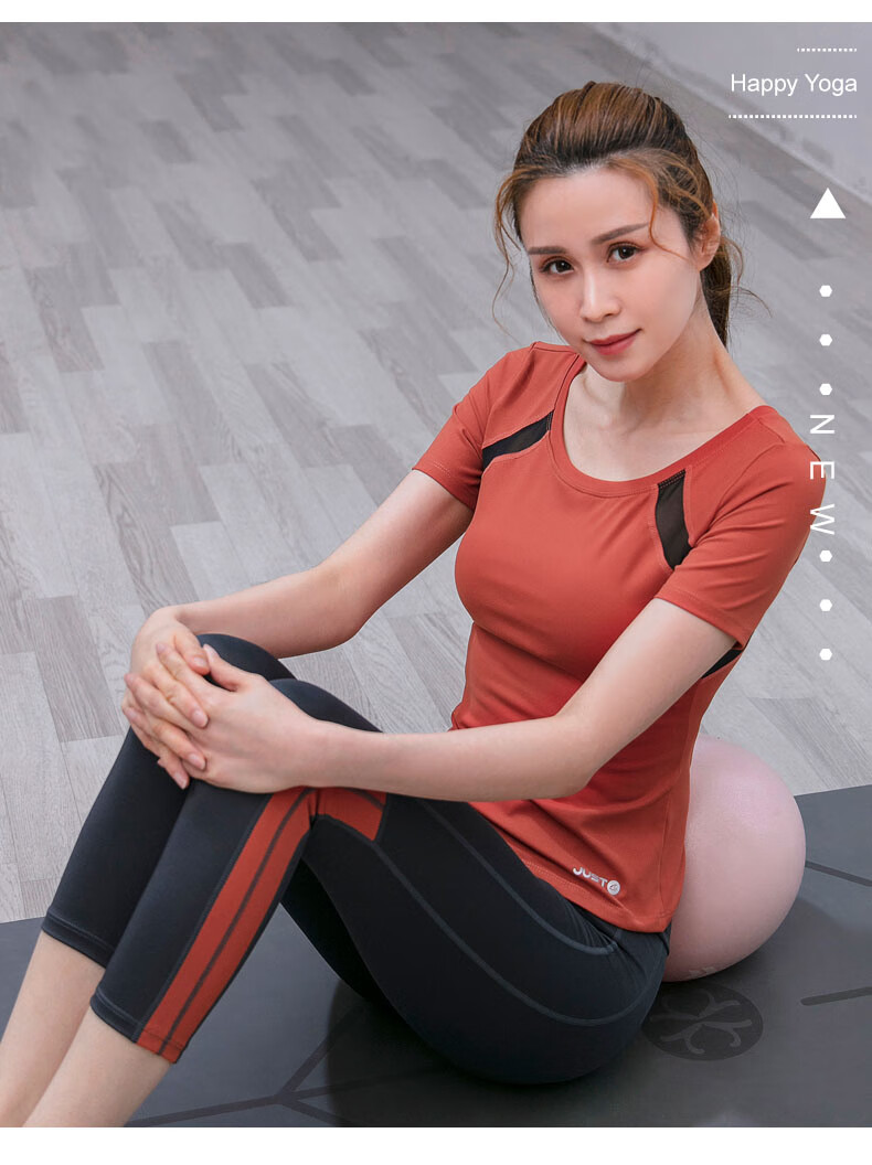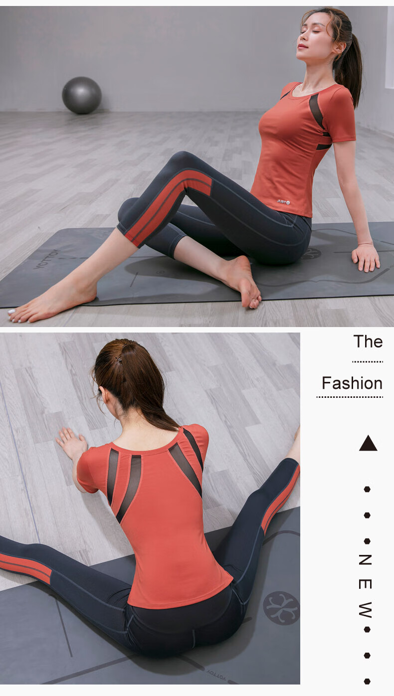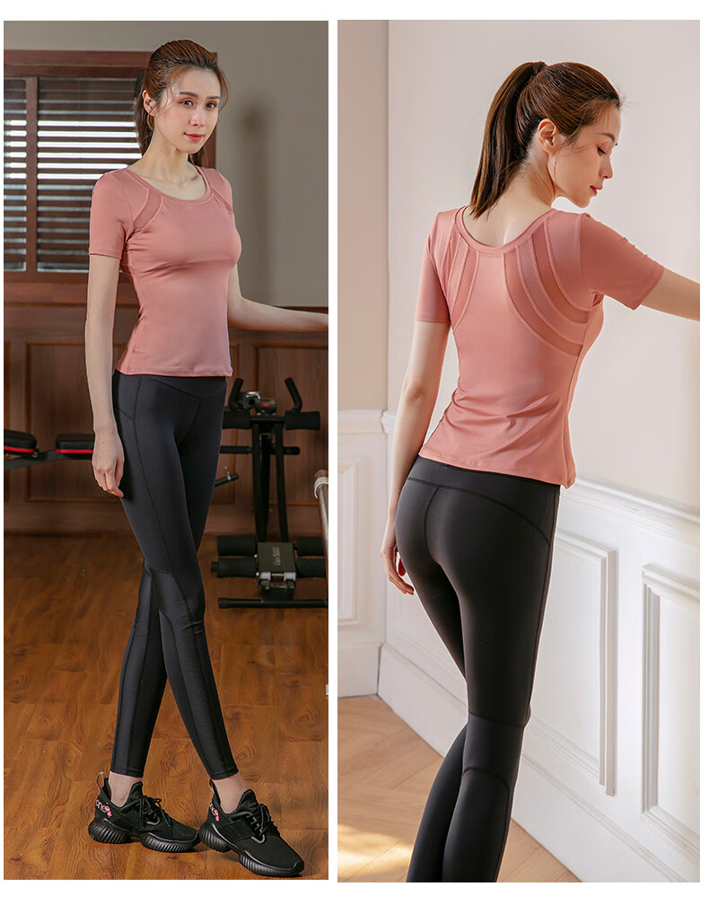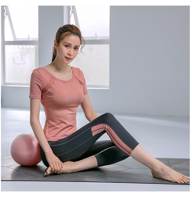Sporn Yoga Wear Women's 2025 New Set Short-Sleeved Thin Professional Fitness Sports Running Wear Slimming Pilates Top Black Top + Pants Suit XL (120-140Jin Jin equals 0.5kg)