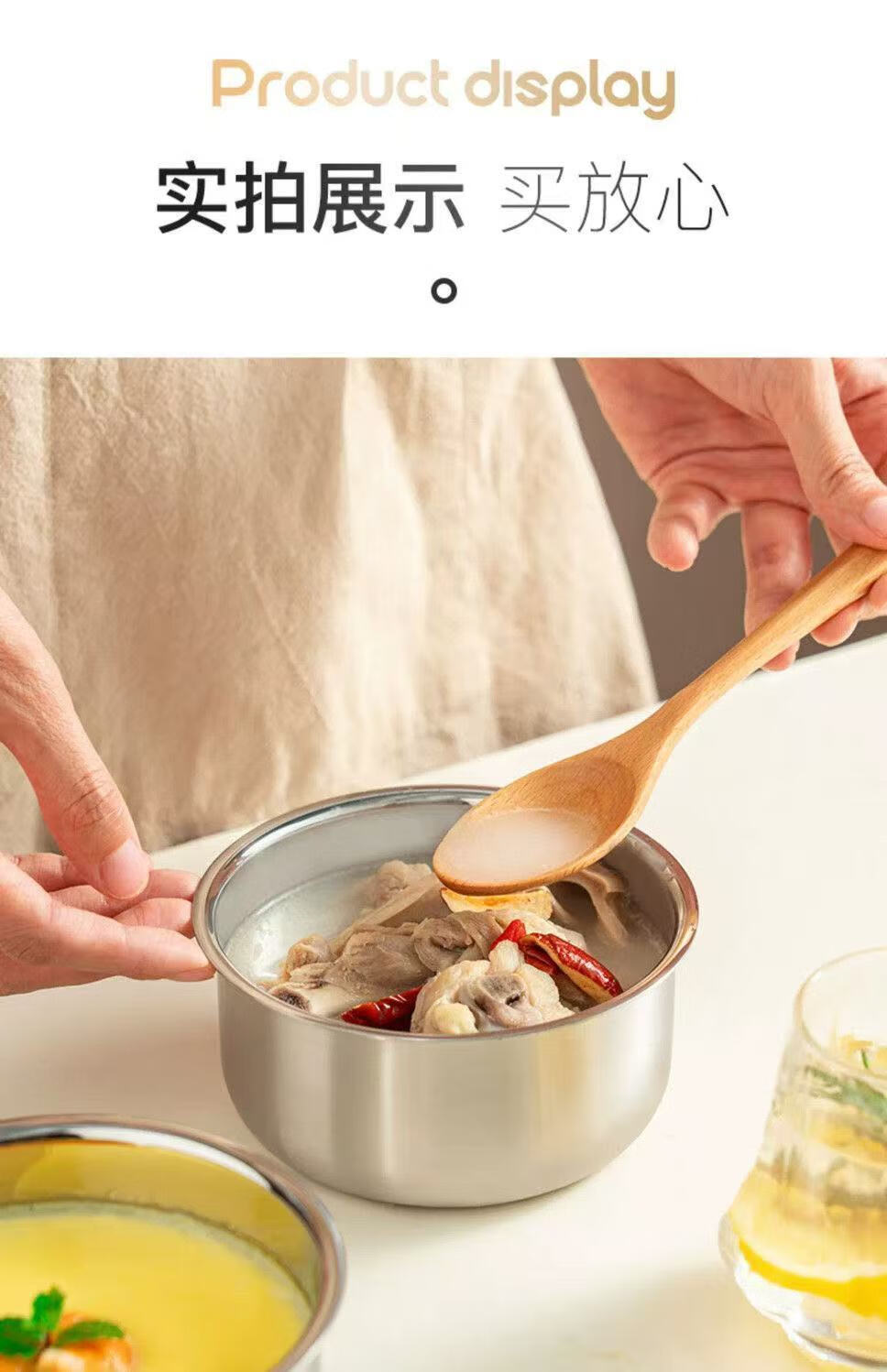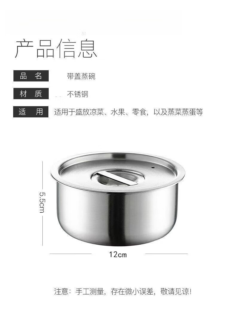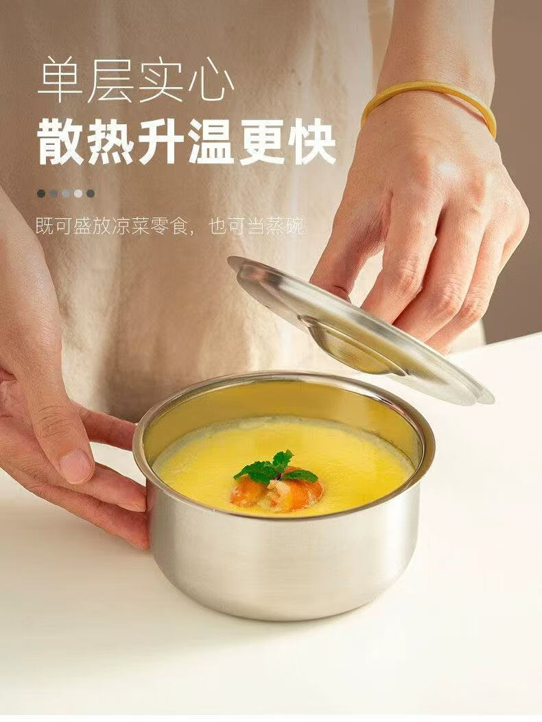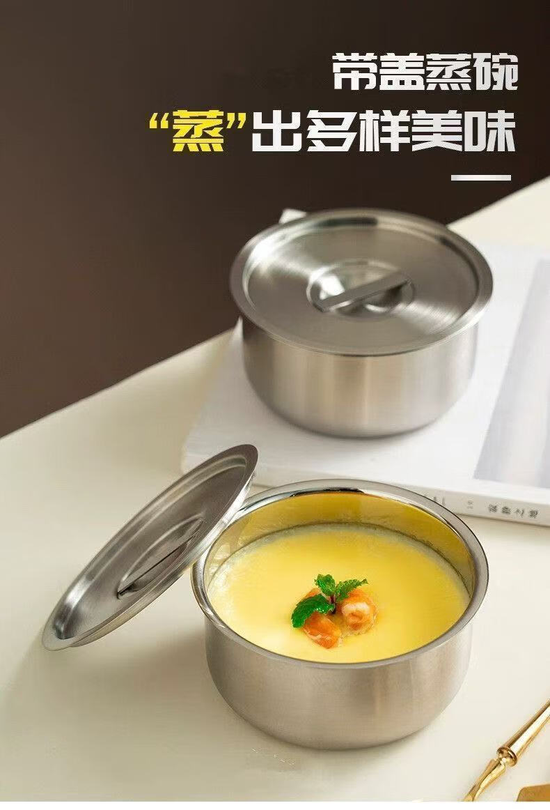 Feiyiya 304 stainless steel egg custard steamed egg steaming plate steaming box steamer with lid, food-grade cage steamer, steaming bowl, steamed rice, long-lasting freshness, steamed egg artifact, one bowl, one lid, thickened and durable