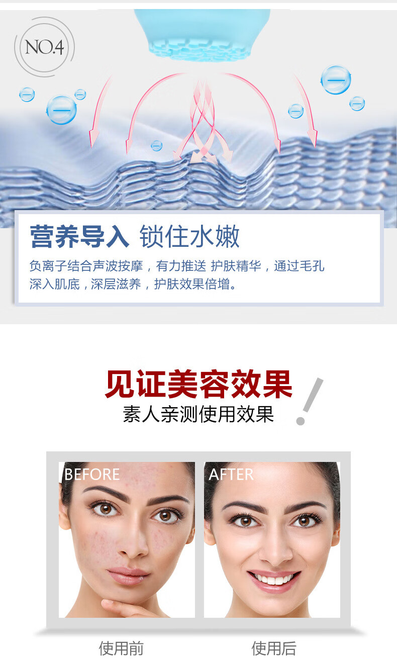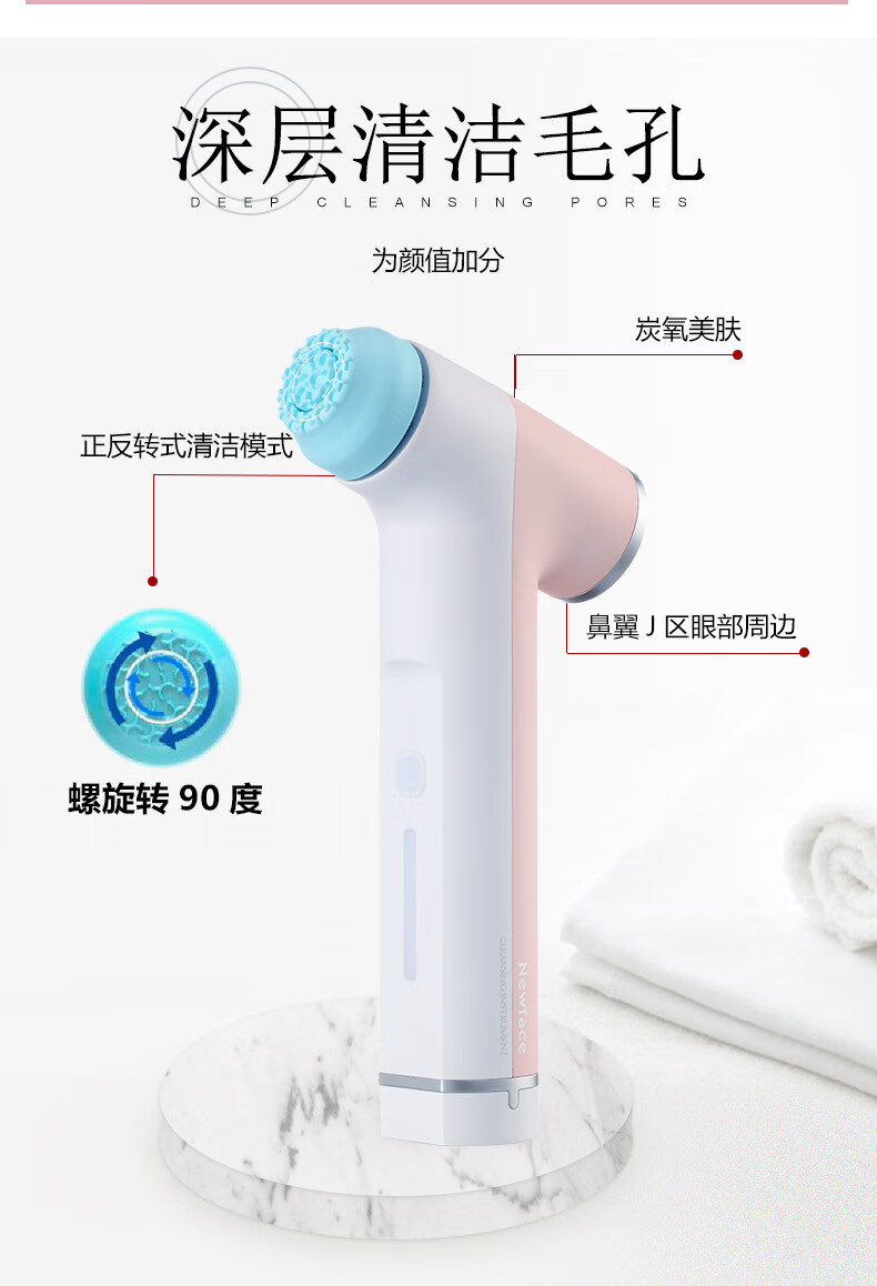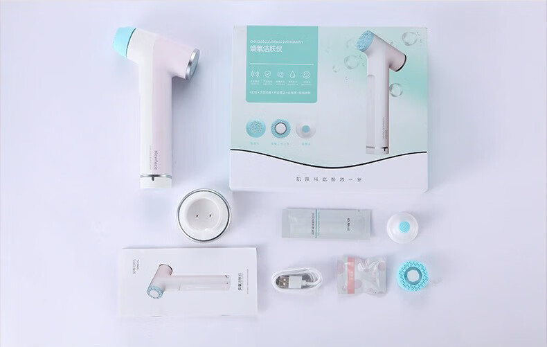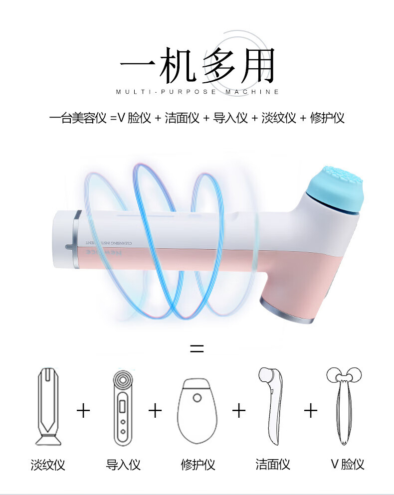 Facial cleansing and beauty instrument V-face cleansing instrument, household makeup remover and light wrinkle introduction instrument, blackhead removal facial beauty instrument, pink and white 3 pieces