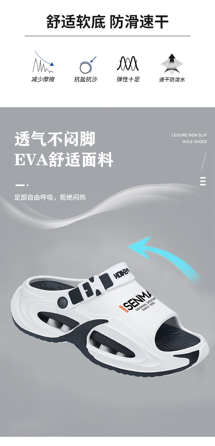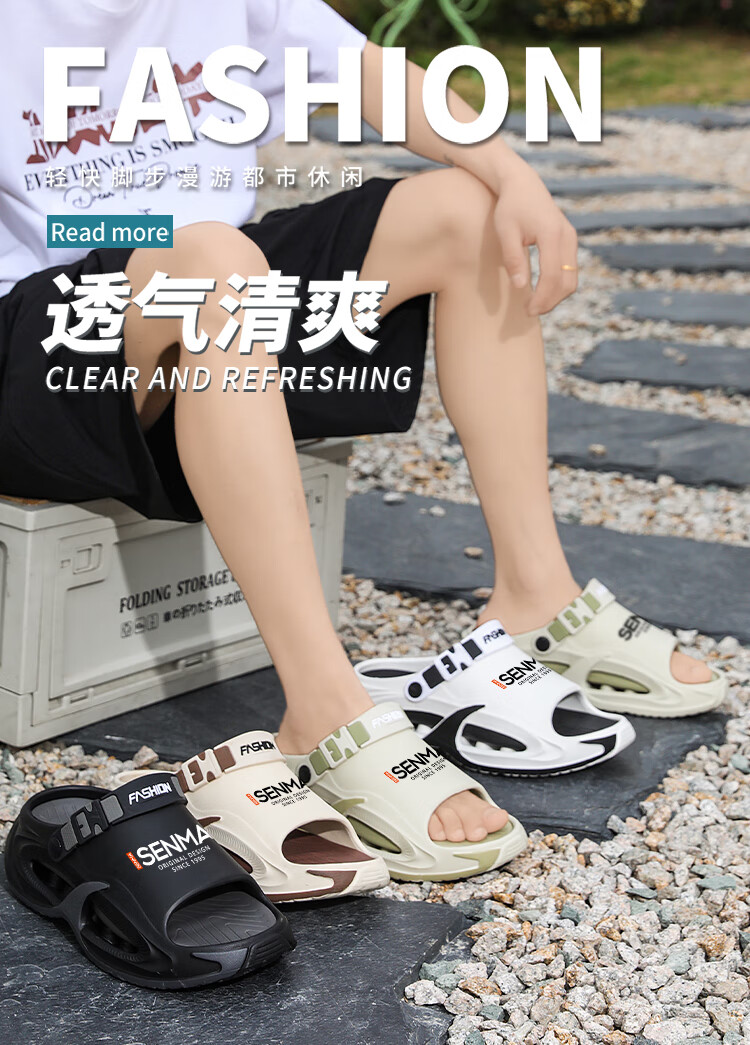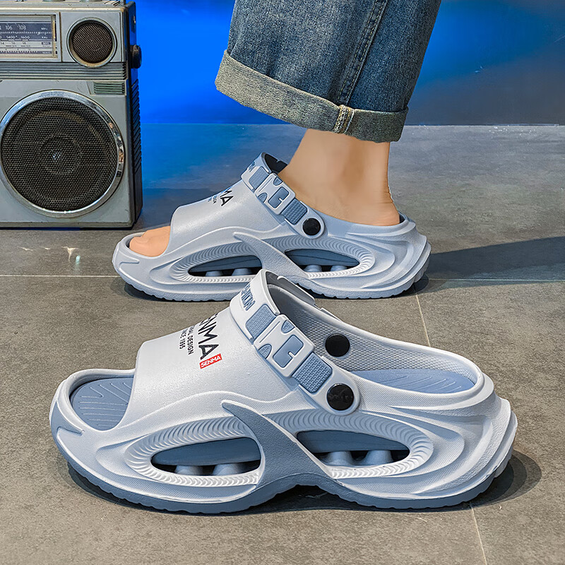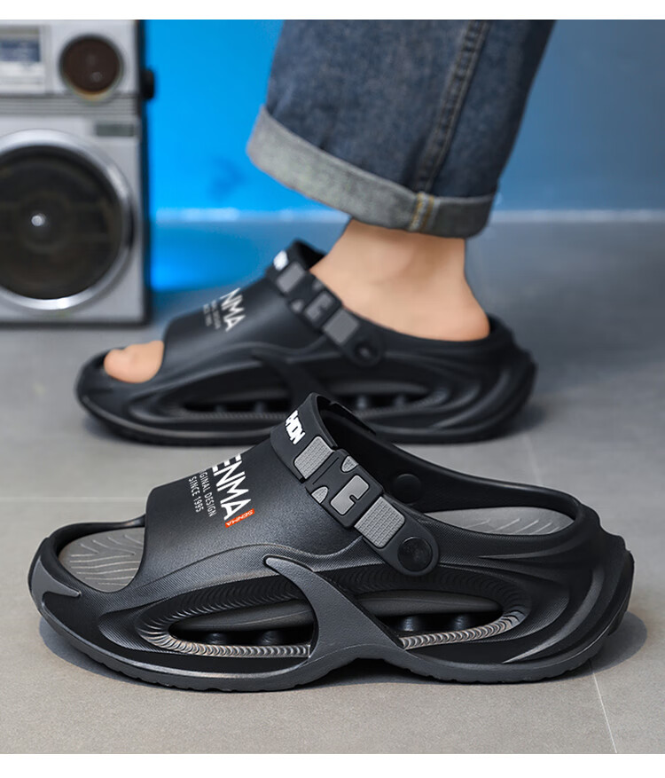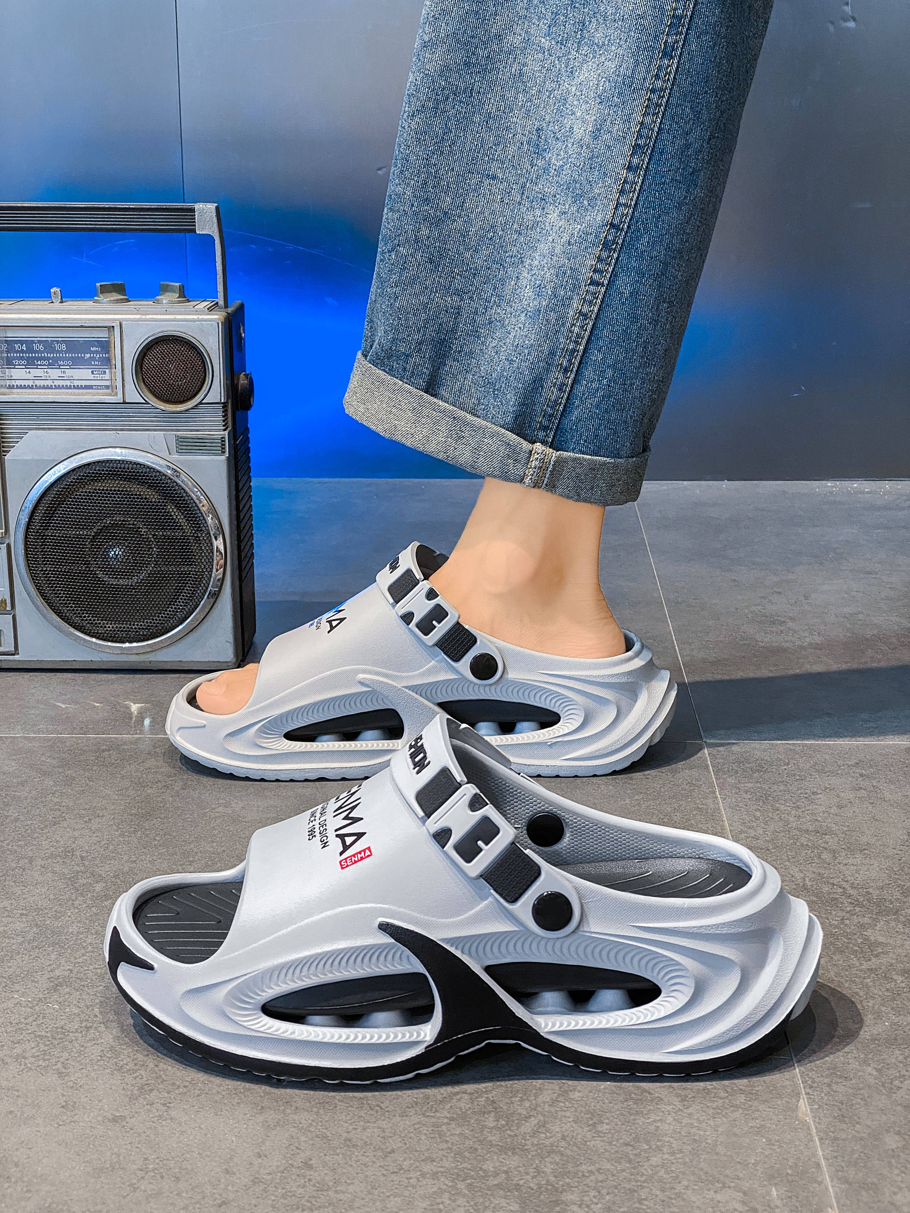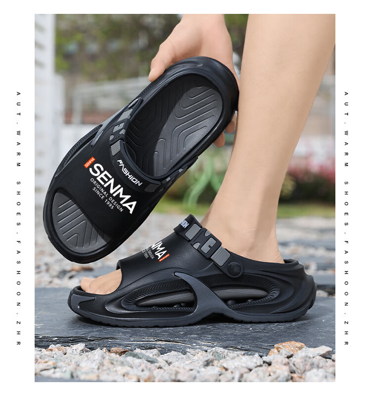 Semir 30-51 Large Size Summer Men's Slippers for Sports and Driving, Anti-slip, Anti-odor, Shit-feeling Outer Sandals, Black Upgraded Version 42-43 Ready in Stock