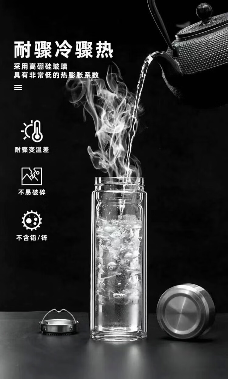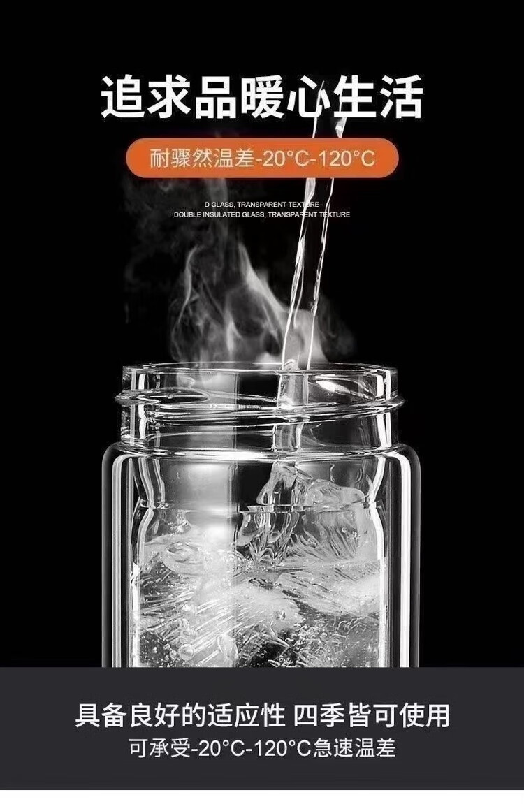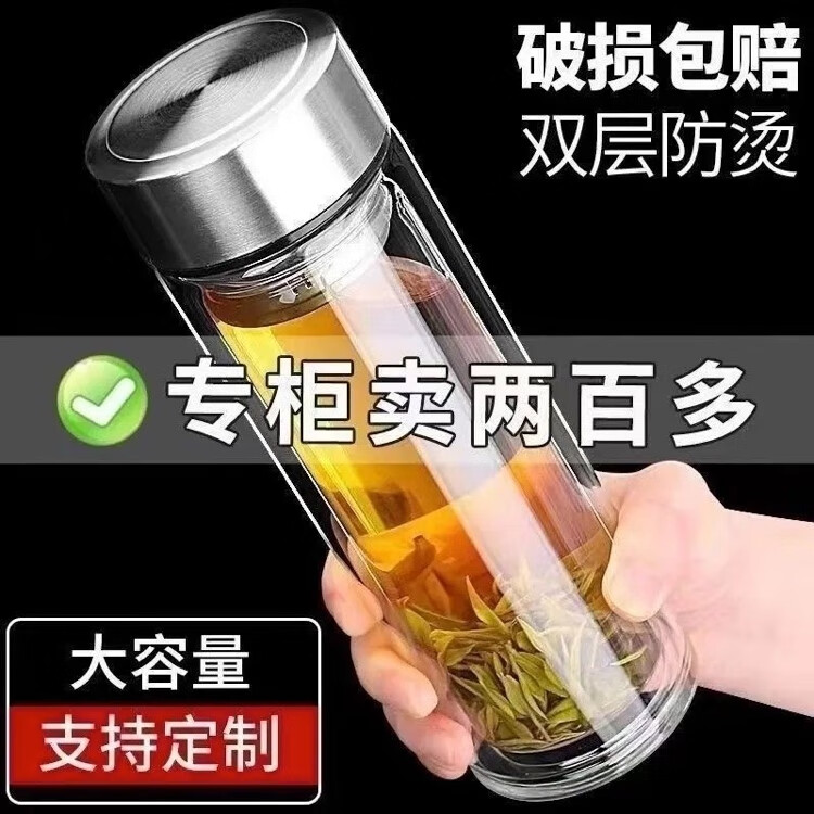 Limited time grab double-walled glass portable household insulated tea cup for men and women, high-end large-capacity thickened water cup, large-capacity explosion-proof 350ml