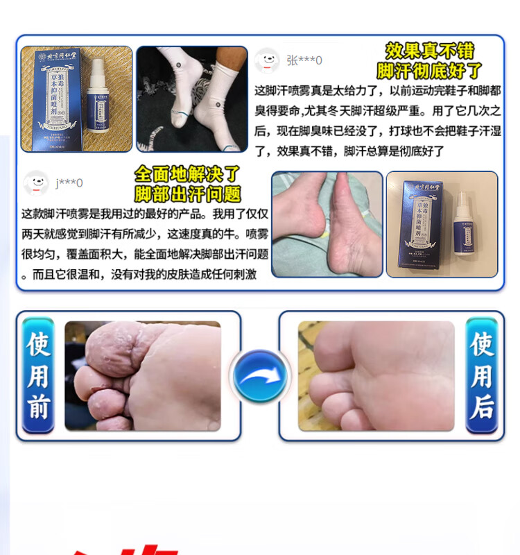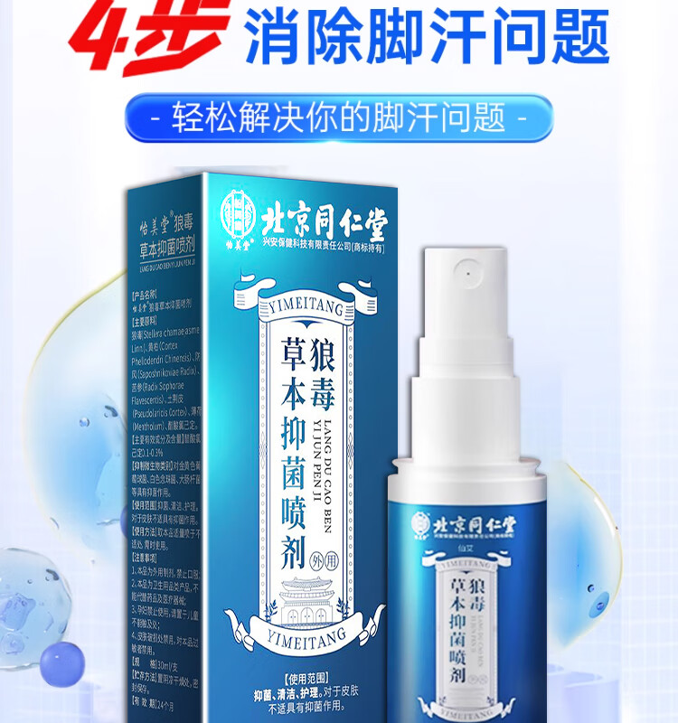Beijing Tongrentang foot sweat and odor special anti-perspirant soak for athlete's foot and foot odor, special for excessive sweating, sore feet, athlete's foot, antiperspirant fungal infection spray, buy 2 get 1 free, 99% choice antiperspirant artifact