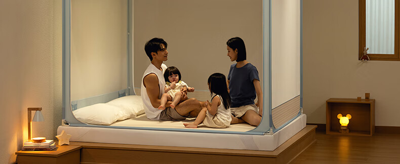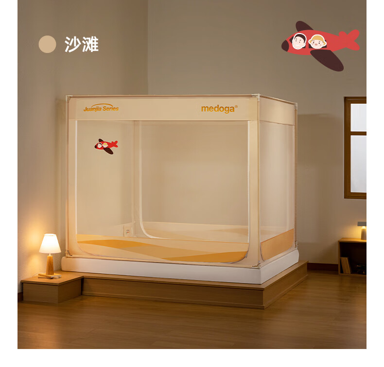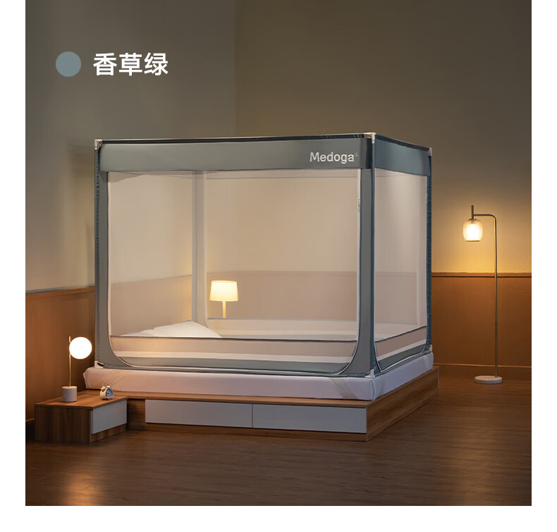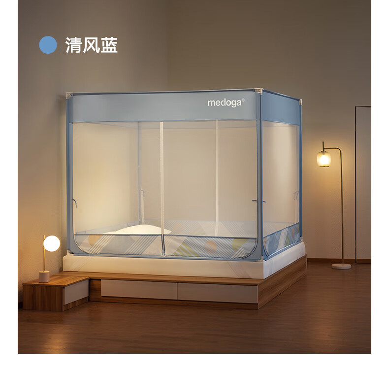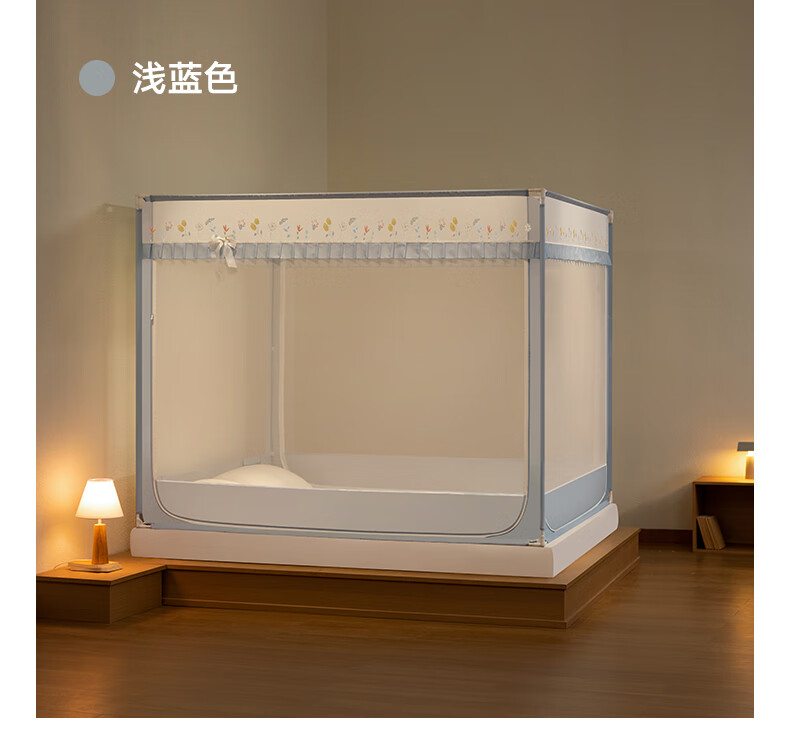 MEDOGA Anti-fall Mosquito Net Home 2025 New Bedroom Baby Mosquito Net Children's Fence Zipper Sheet Integrated Blue T Door Individual Mosquito Net Classic 1.8*2.2m Bed