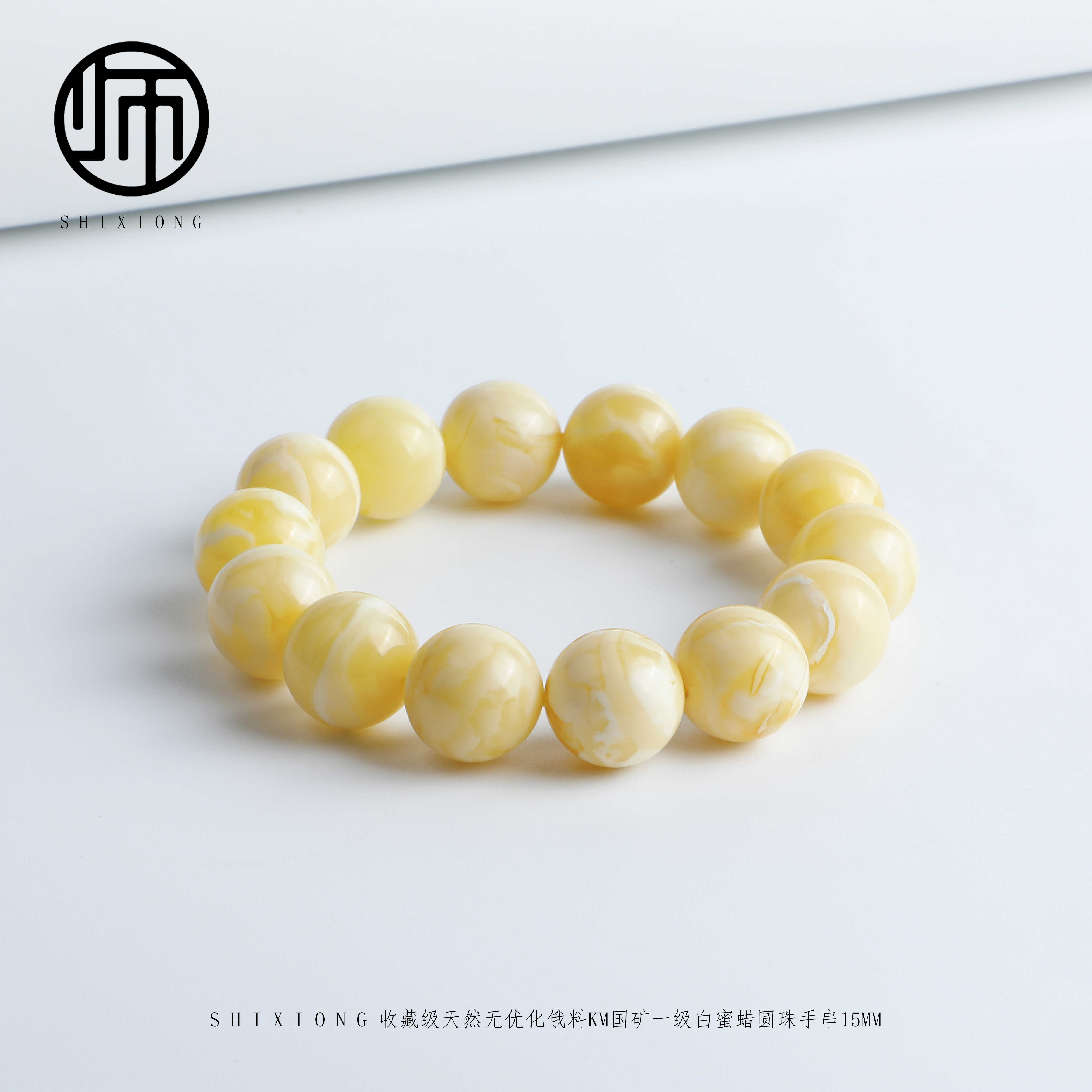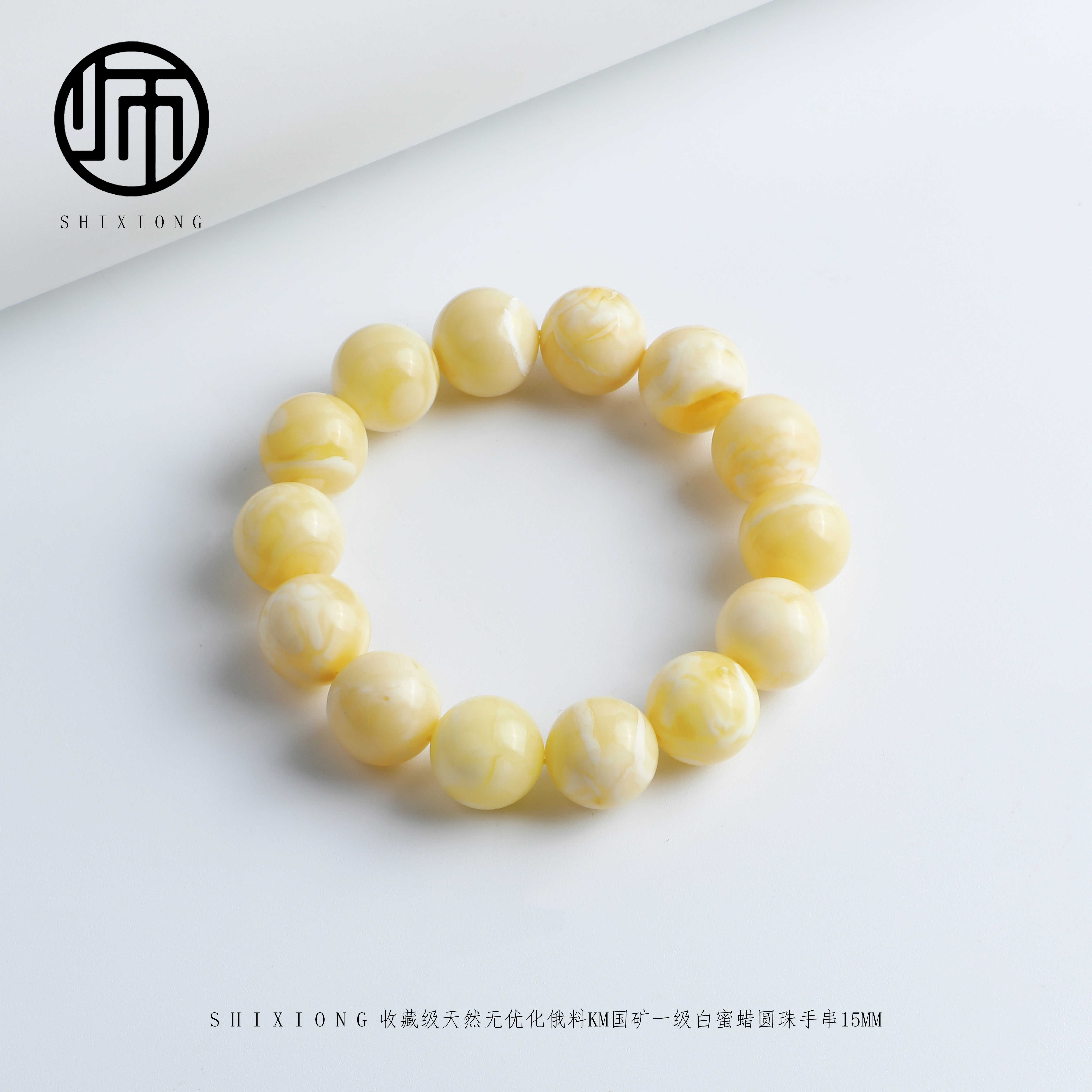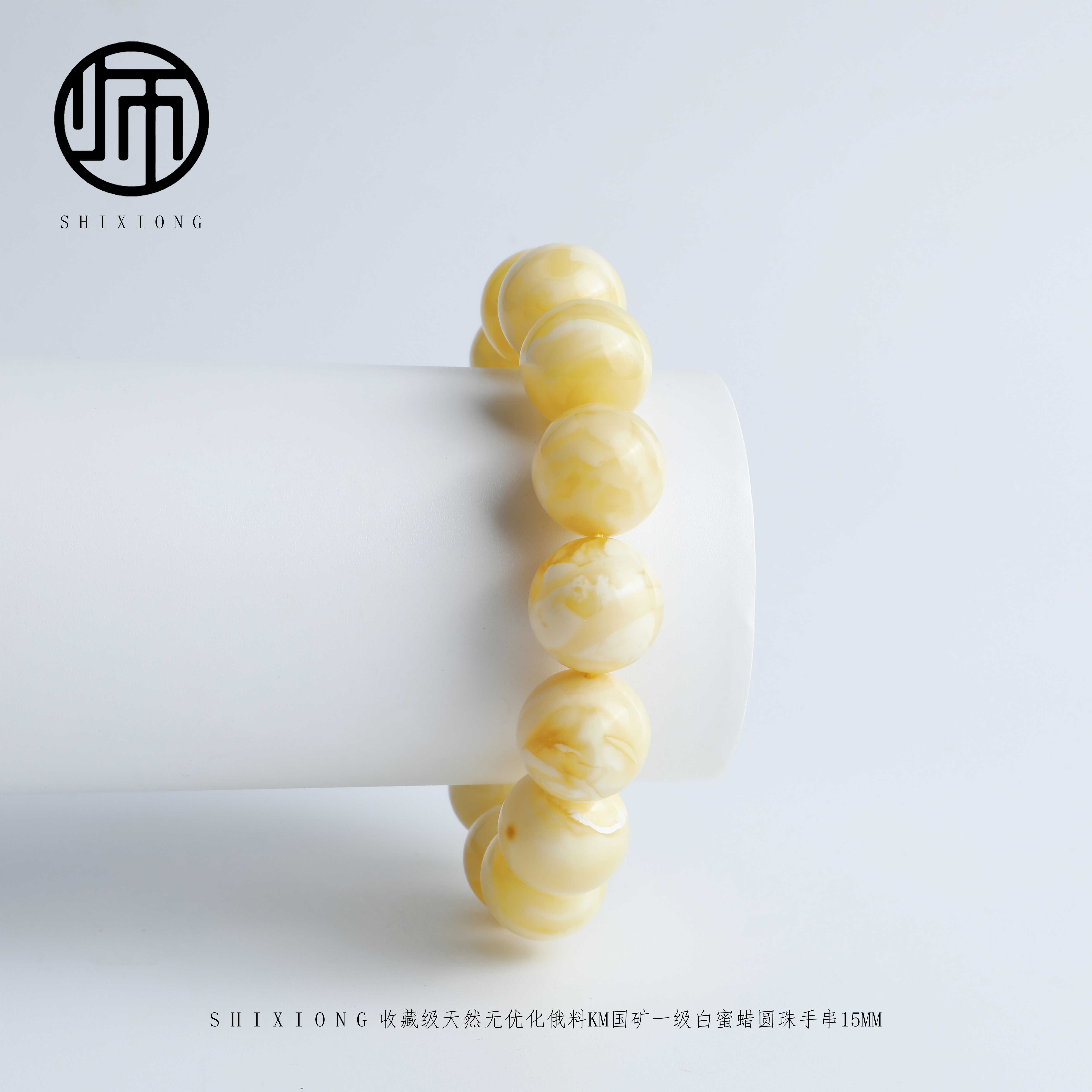 Kawamori collection grade natural unbaked color unoptimized white beeswax bracelet Russian material first grade explosive waxy amber bracelet unoptimized white beeswax - bead diameter 14MM