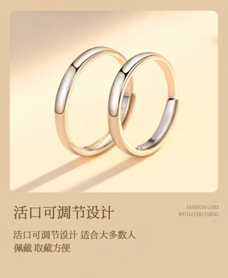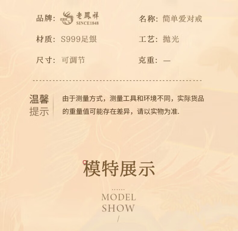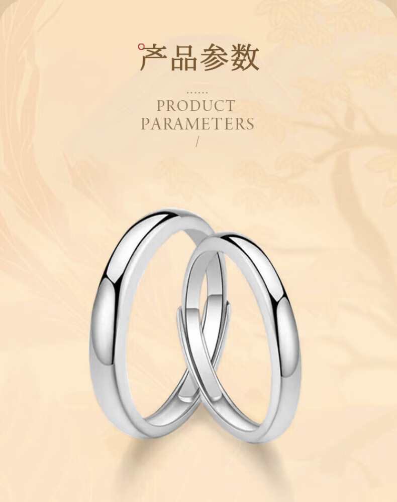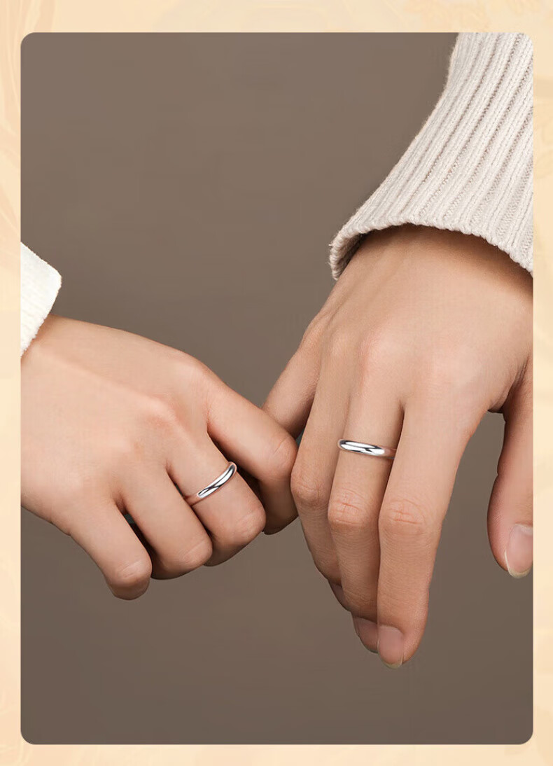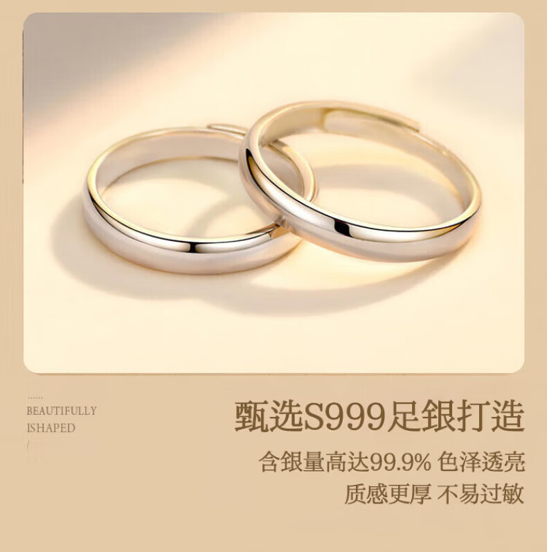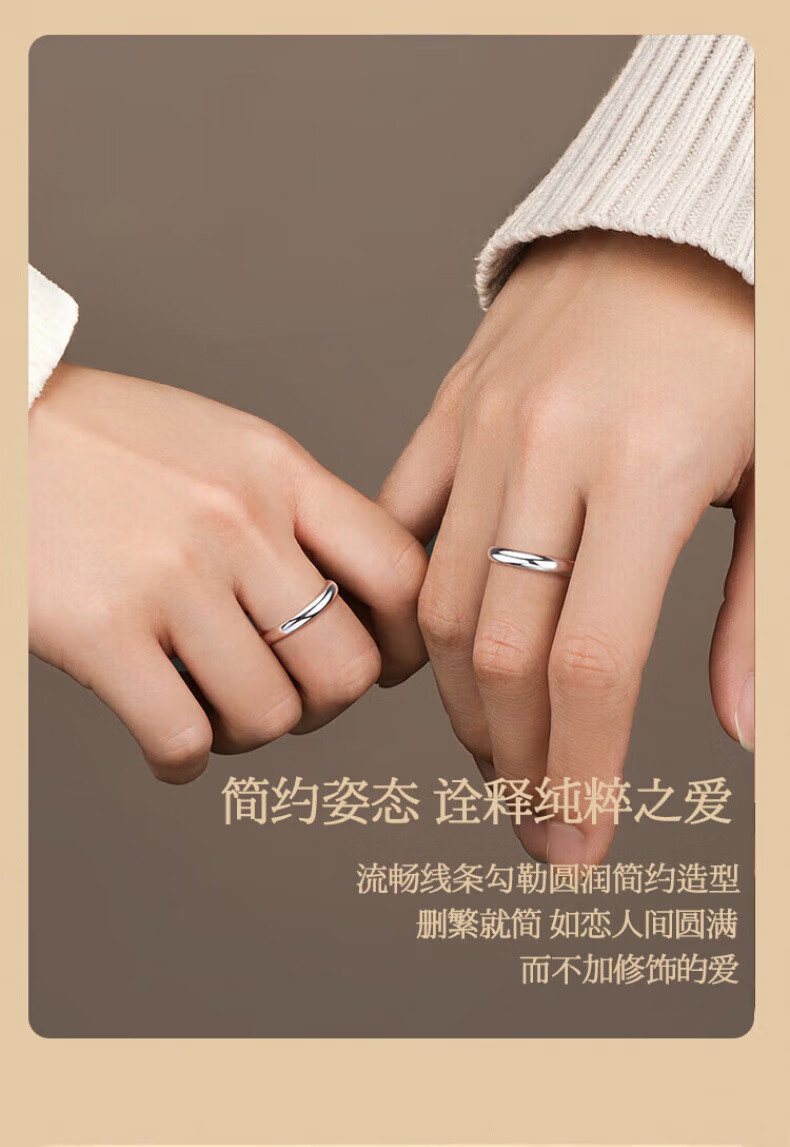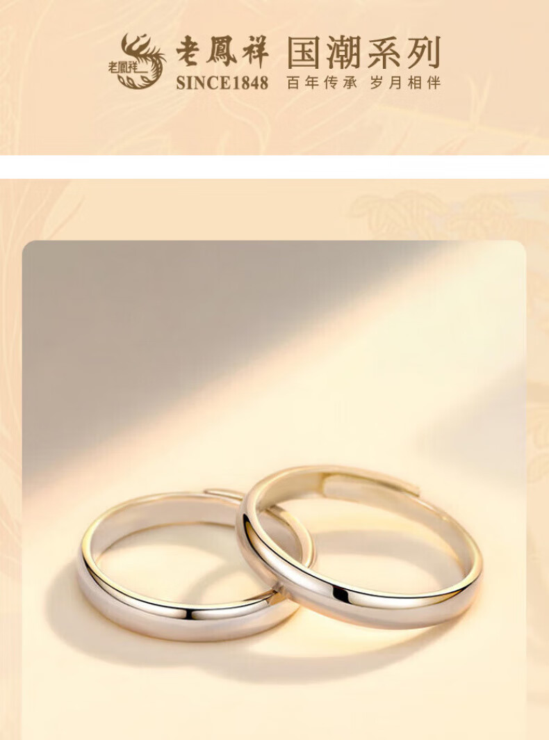 Lao Fengxiang plain ring couple ring sterling silver 999 couple ring female niche birthday gift for girlfriend lettering/greeting card plain ring smooth face ring brand gift box
