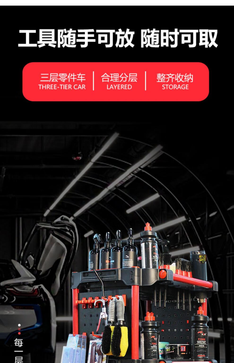 Shantou Lincun car wash shop car beauty tool cart special multi-functional plastic three-layer mobile storage trolley shelf wash beauty 5-layer towel cabinet