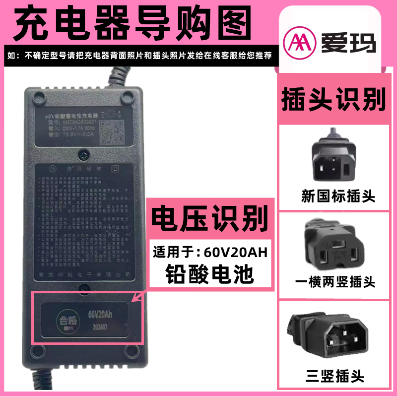 Emma electric car original genuine charger Emma battery car 48V60V72V-12/20AH new national standard charger 72V-20AH (3A) three vertical plug