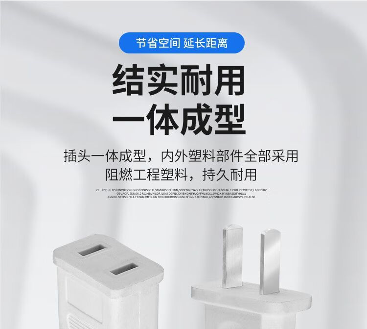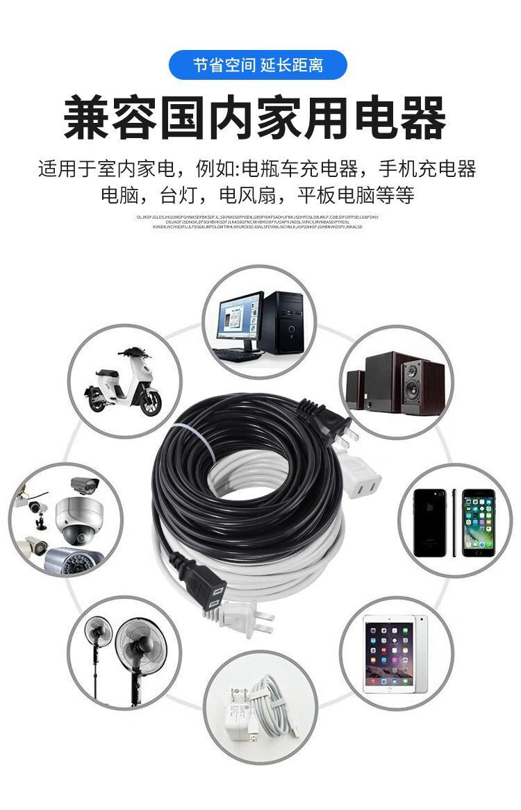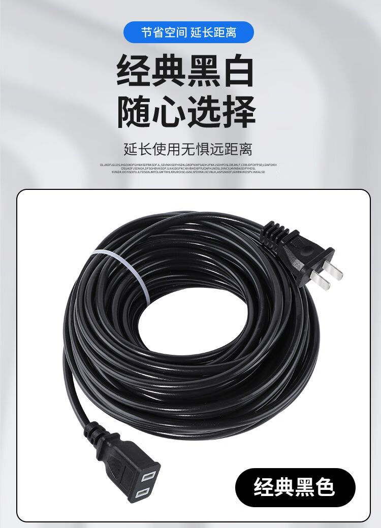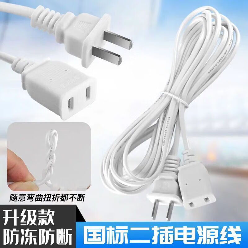 Jiazhidong high-power power supply charging extension cord socket two-pin plug strip wiring board fan two-plug extension cable thick extension cord straight 2800 watts white/0.5