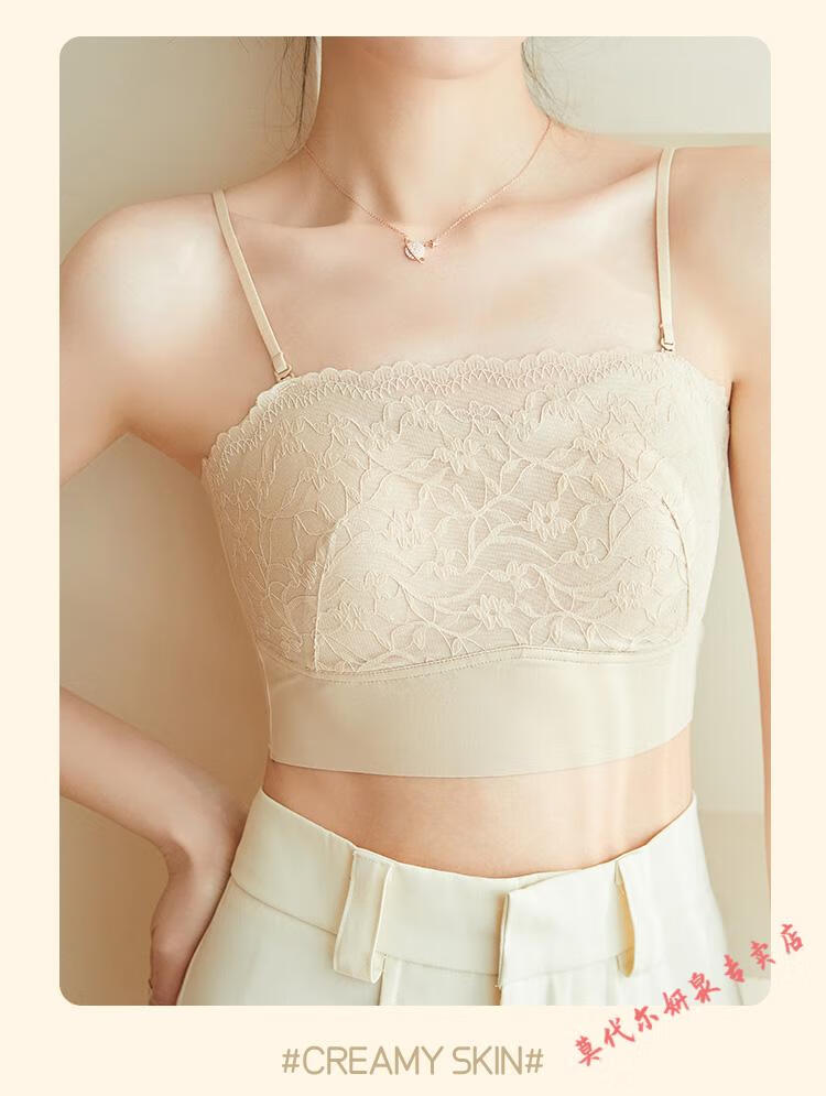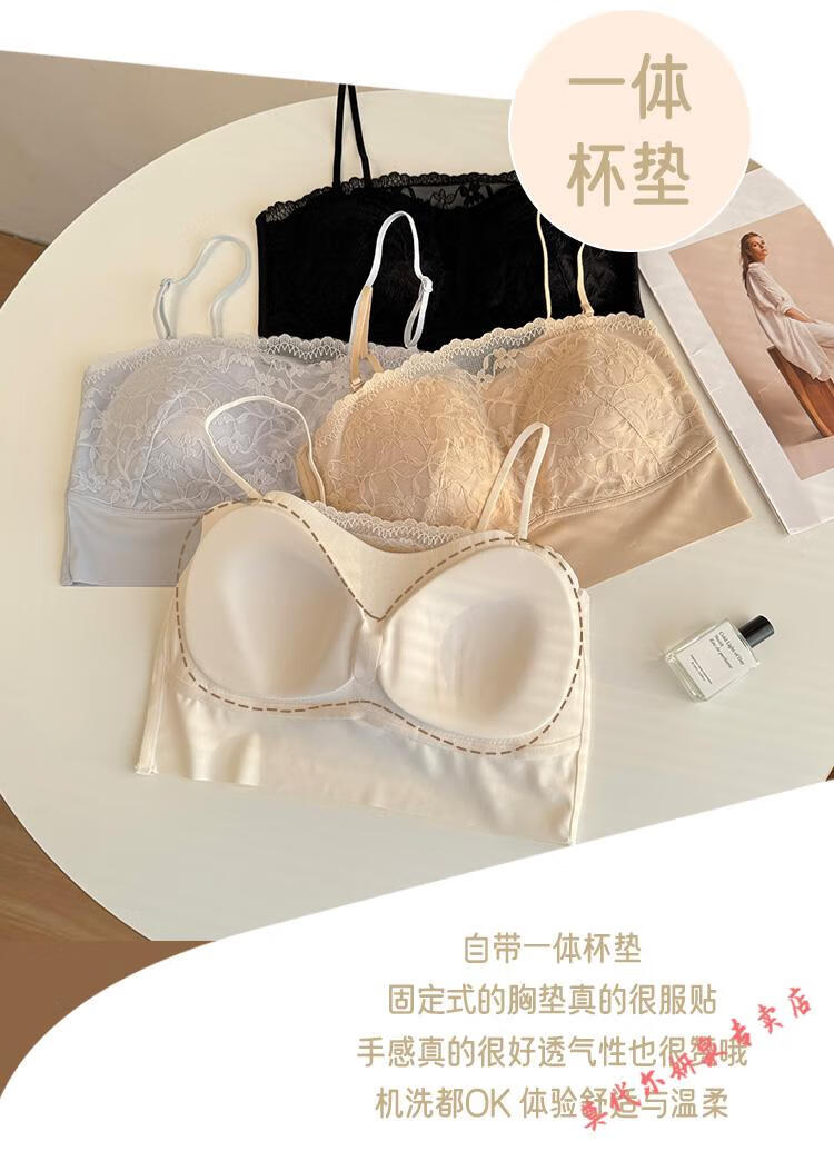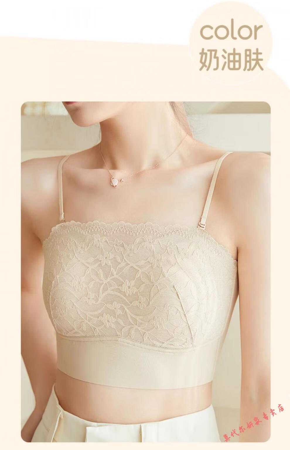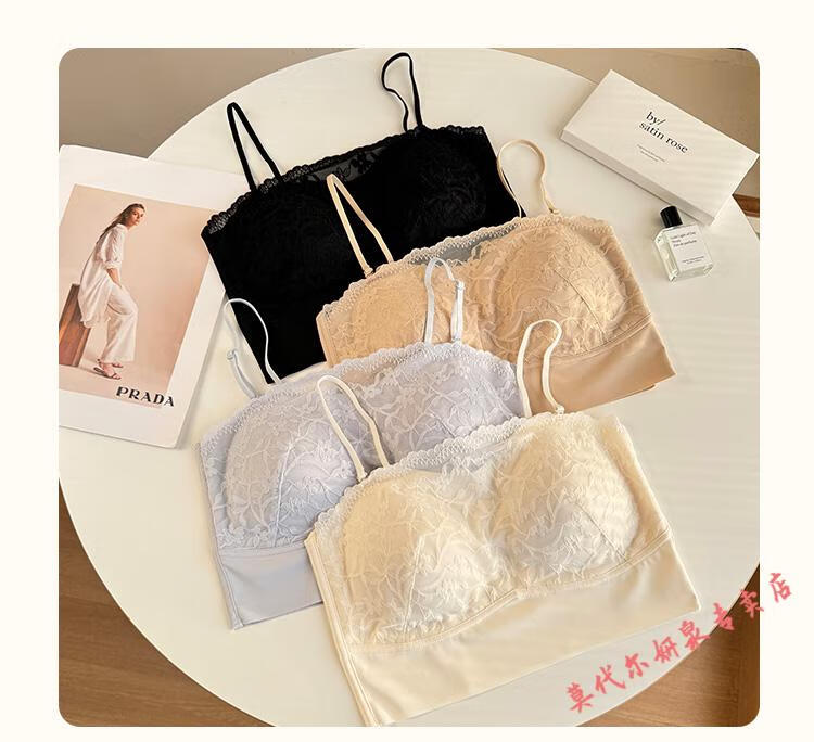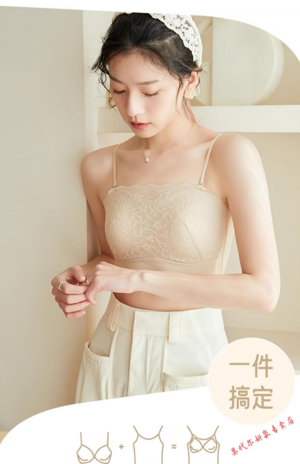 Modal Anti-Lighting Breast Covering Artifact Tube Bra Women's Thin Large Breast Showing Small Breast Anti-Lighting Breast Covering Summer Beautiful Back Pendant Elegant Black M (80-110Jin Jin is equal to 0.5kg)