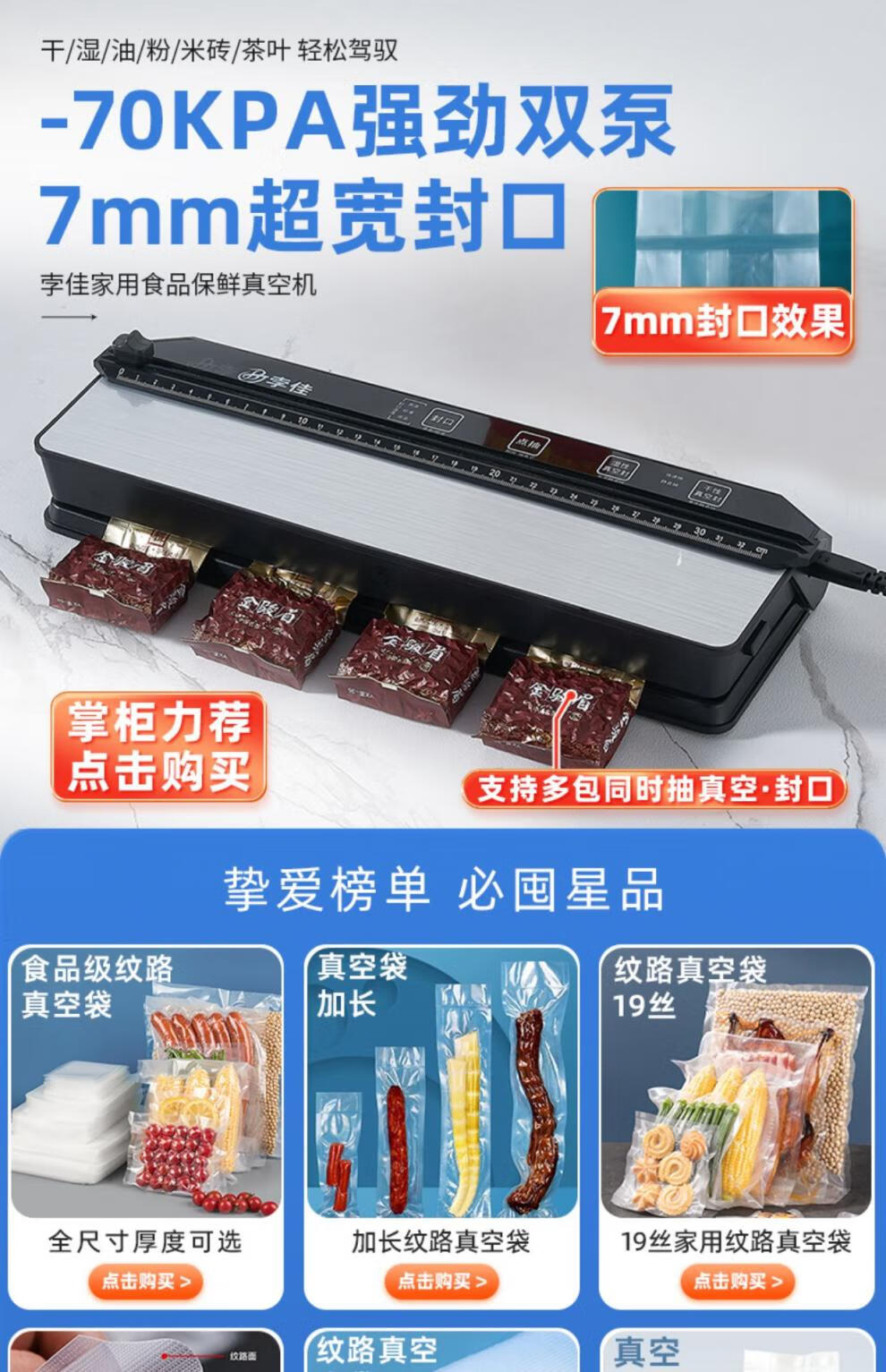 JCZS Japanese food grade vacuum bag household sealing machine special thickened mesh texture sealing plastic compression packaging 16 wires 30*50cm 100 pieces 1.0