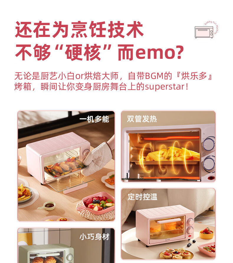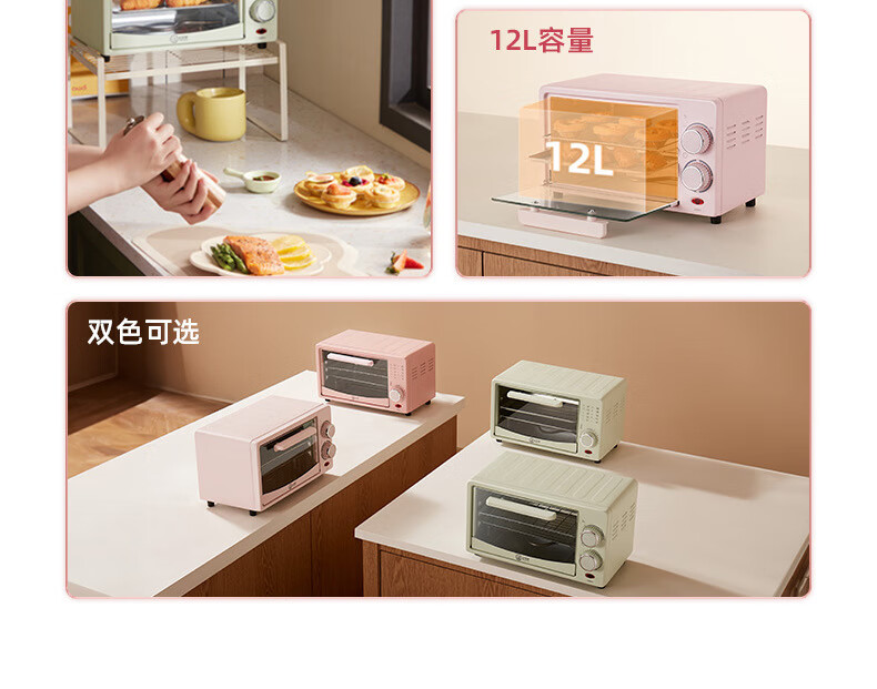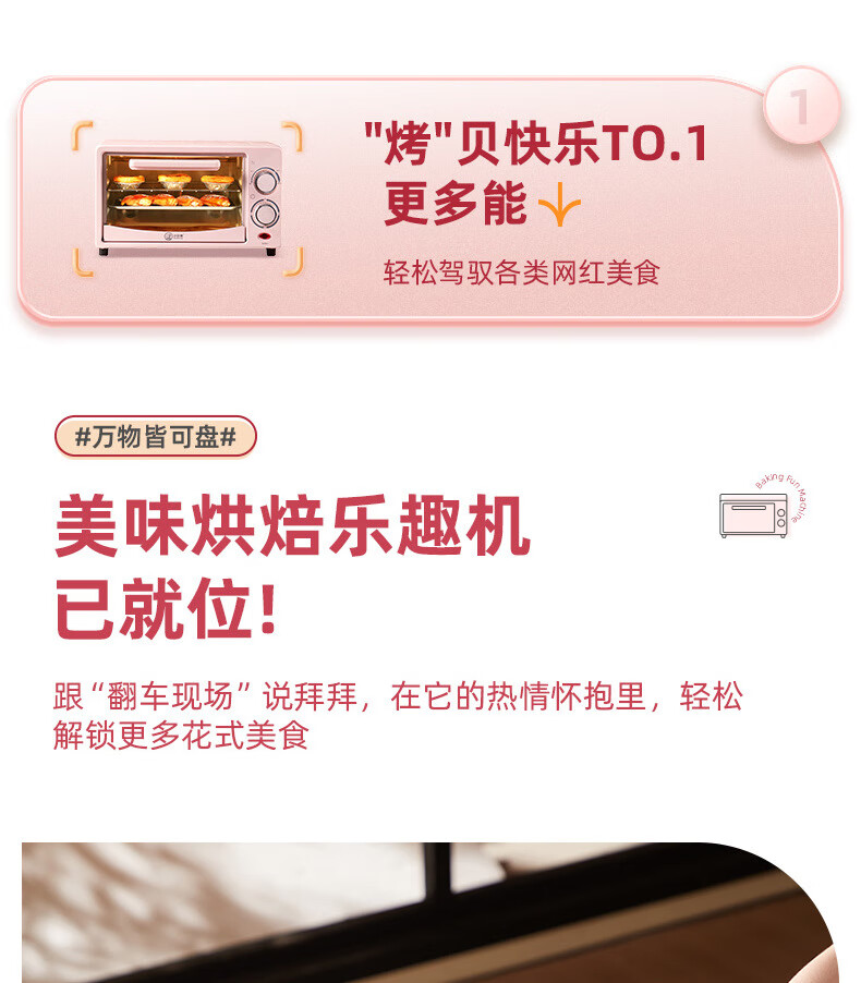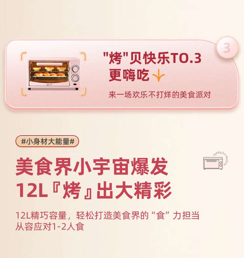 Xiaomi Guoba 2025 New Three-in-One Air Fryer Household Oven All-in-One Machine Large Capacity Light Pink Single Knob Model-Timing Model Dual Heat 12L
