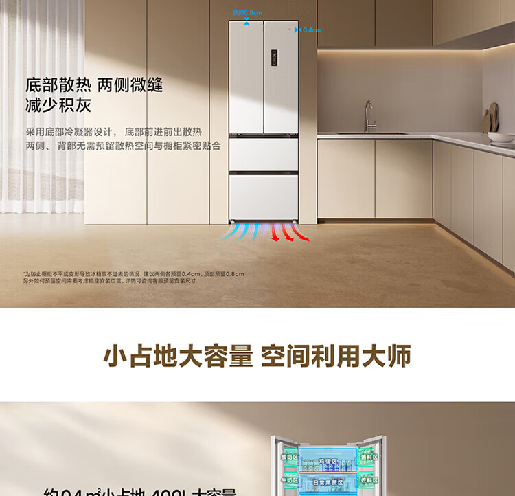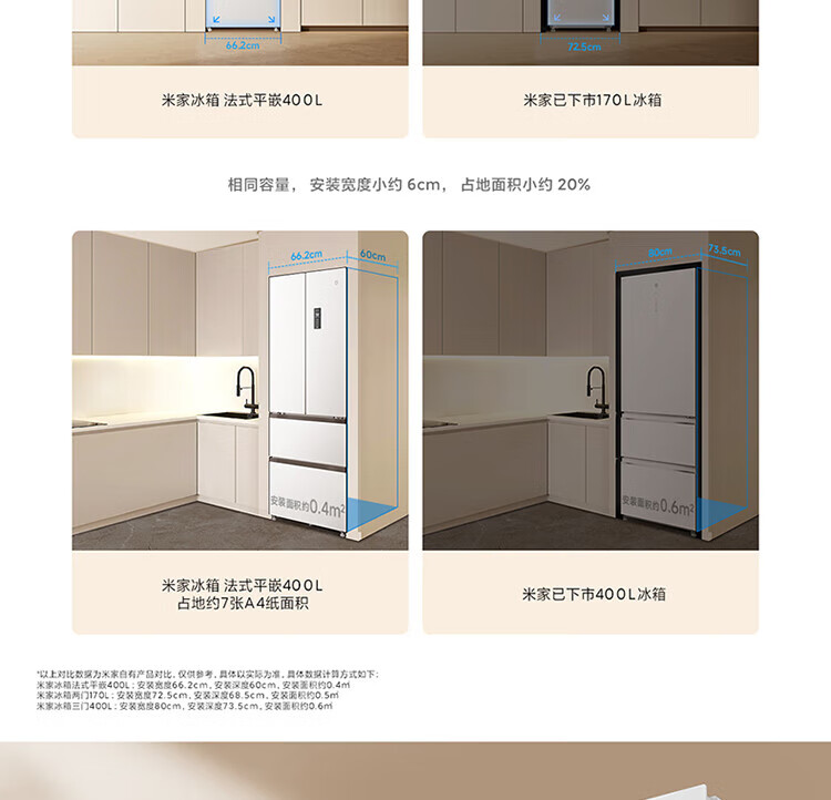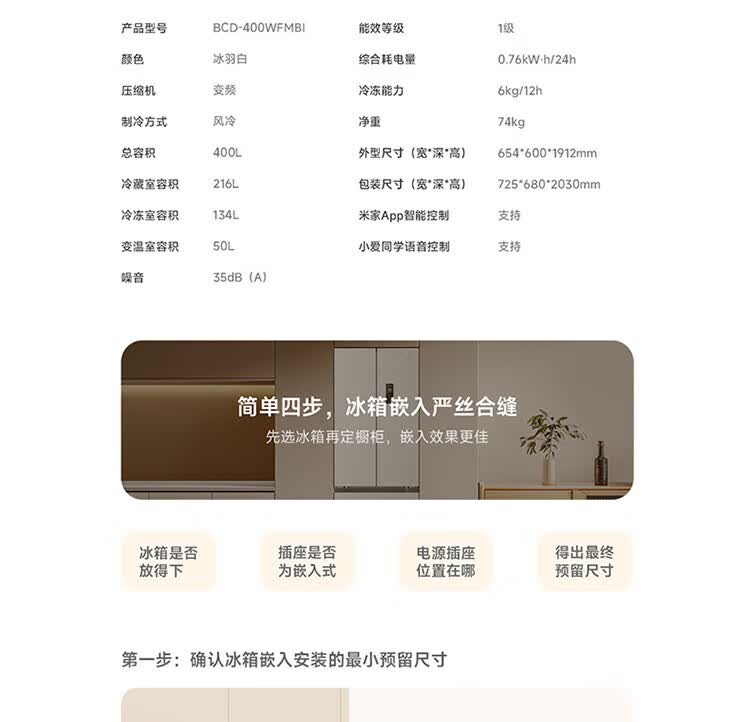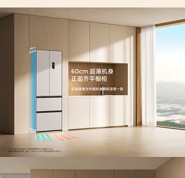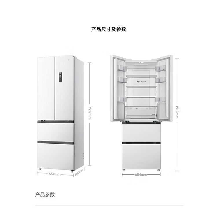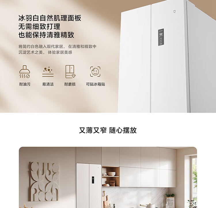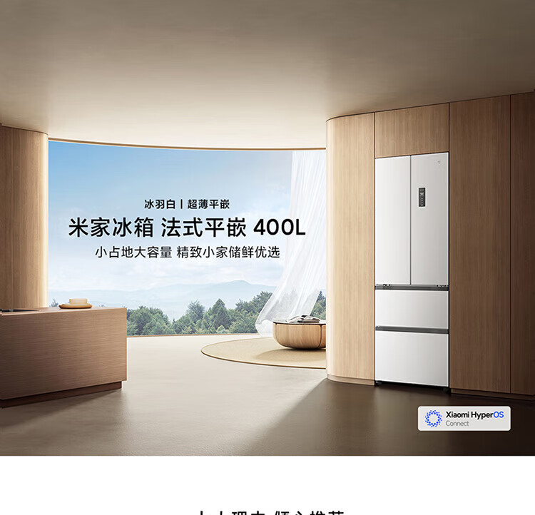 Mijia Xiaomi Xiaomi refrigerator 400 liters French multi-door refrigerator household large capacity first-level frequency conversion 60cm ultra-thin flat-mounted BCD-400WFMBI