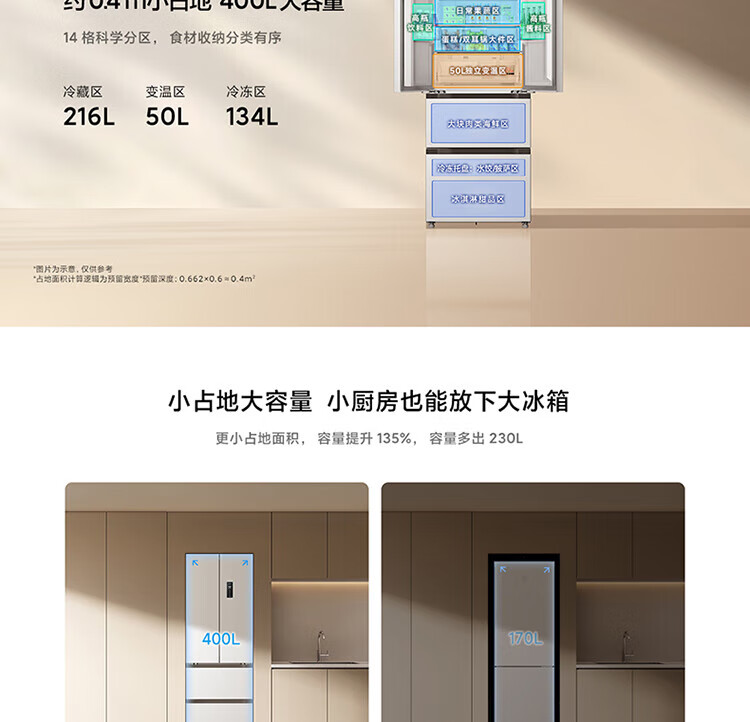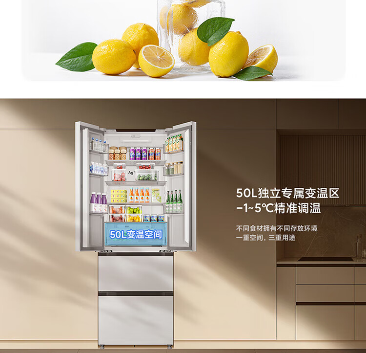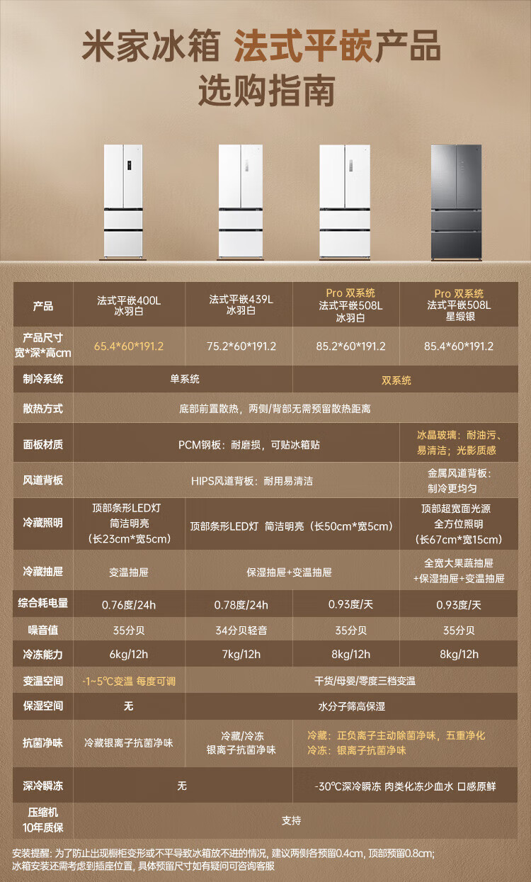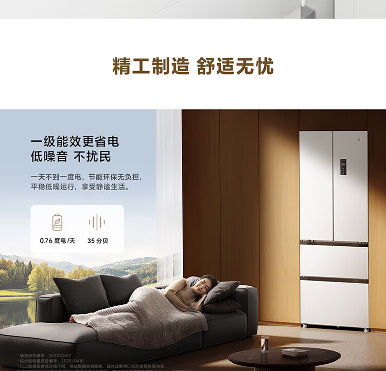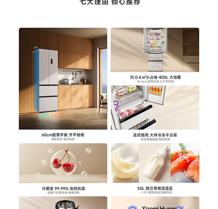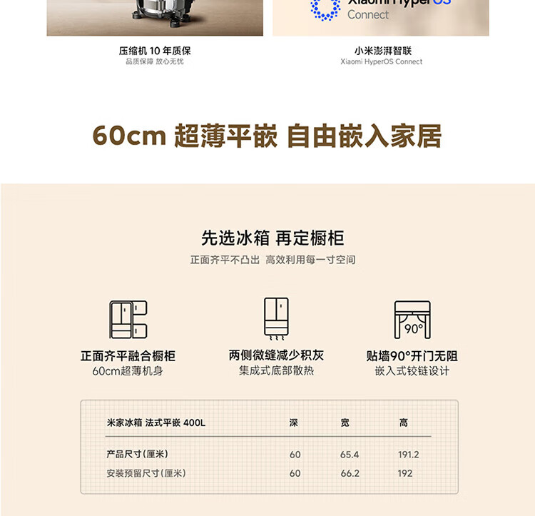 Mijia Xiaomi Xiaomi refrigerator 400 liters French multi-door refrigerator household large capacity first-level frequency conversion 60cm ultra-thin flat-mounted BCD-400WFMBI