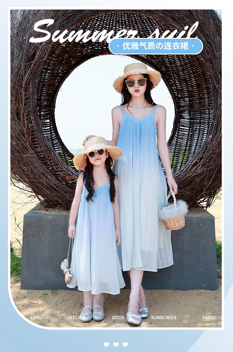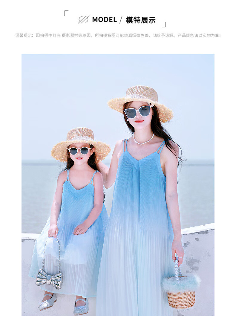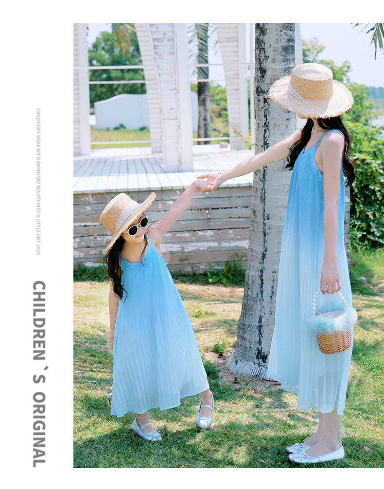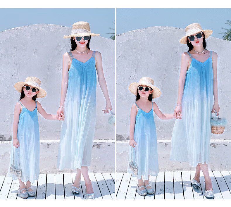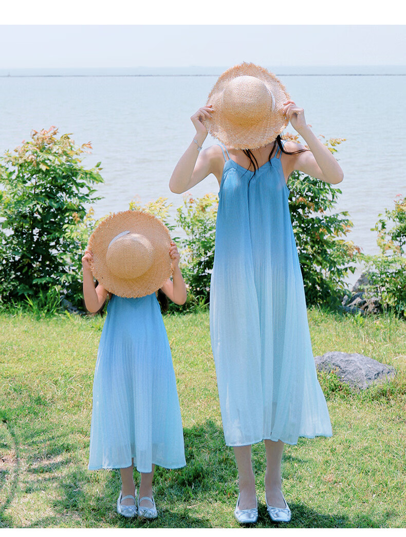 Little Bear Elf (xiaoxiongjingling) mother-daughter parent-child wear summer gradient color suspender dress high-end seaside beach dress sisters fashionable street glacier blue dress 80 mother size S (recommended weight 80-100 Jin Jin equals 0.5 kg)