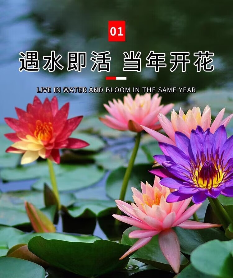Water lily hydroponic plants bloom in all seasons, fish tanks, ponds, lotus pots, water-based root blocks, 5 large quality water lilies (mixed colors with buds)