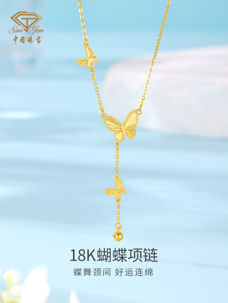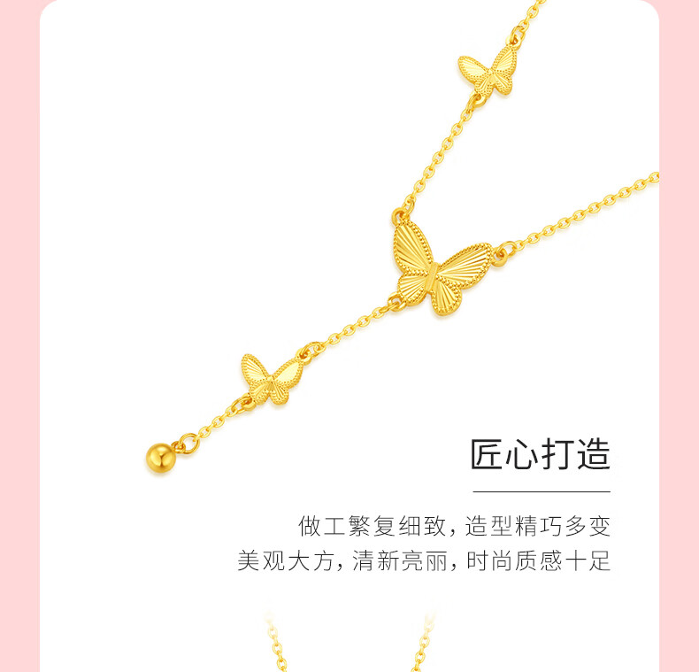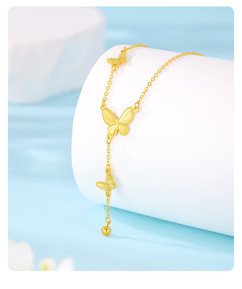 Chinese jewelry 18K gold necklace butterfly tassel set chain plain chain jewelry birthday gift for girlfriend and wife 18K butterfly tassel necklace gold weight about 2.35g