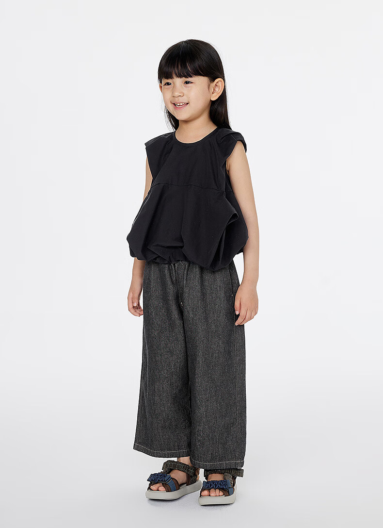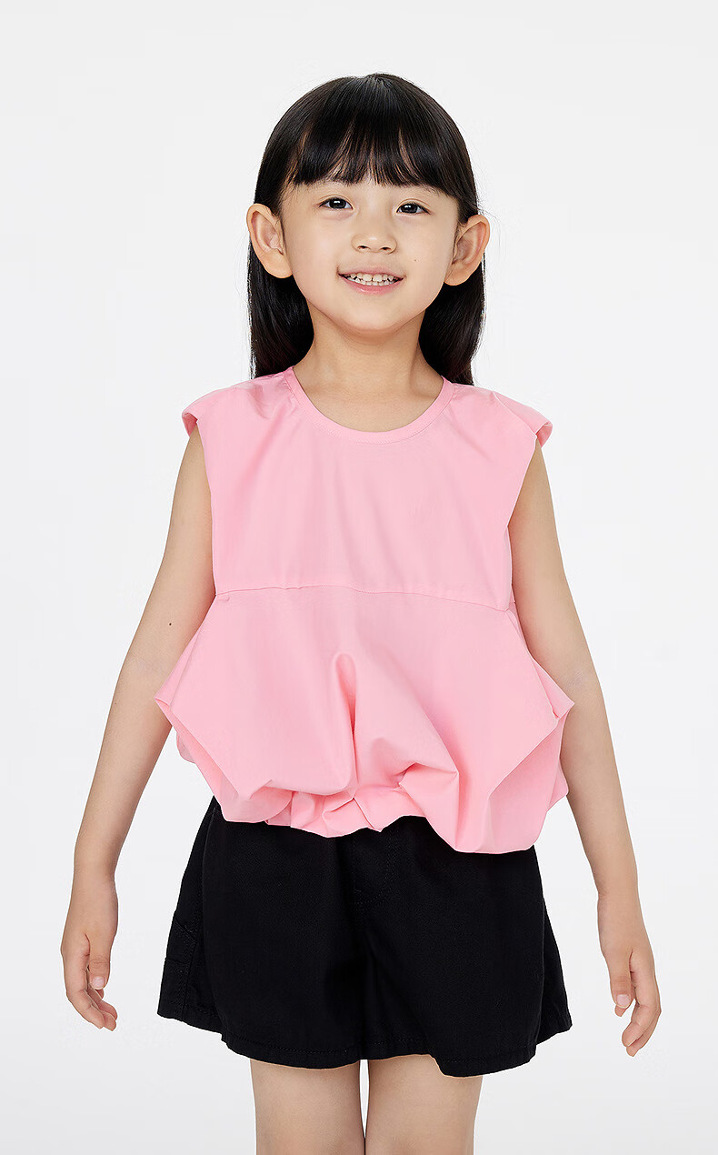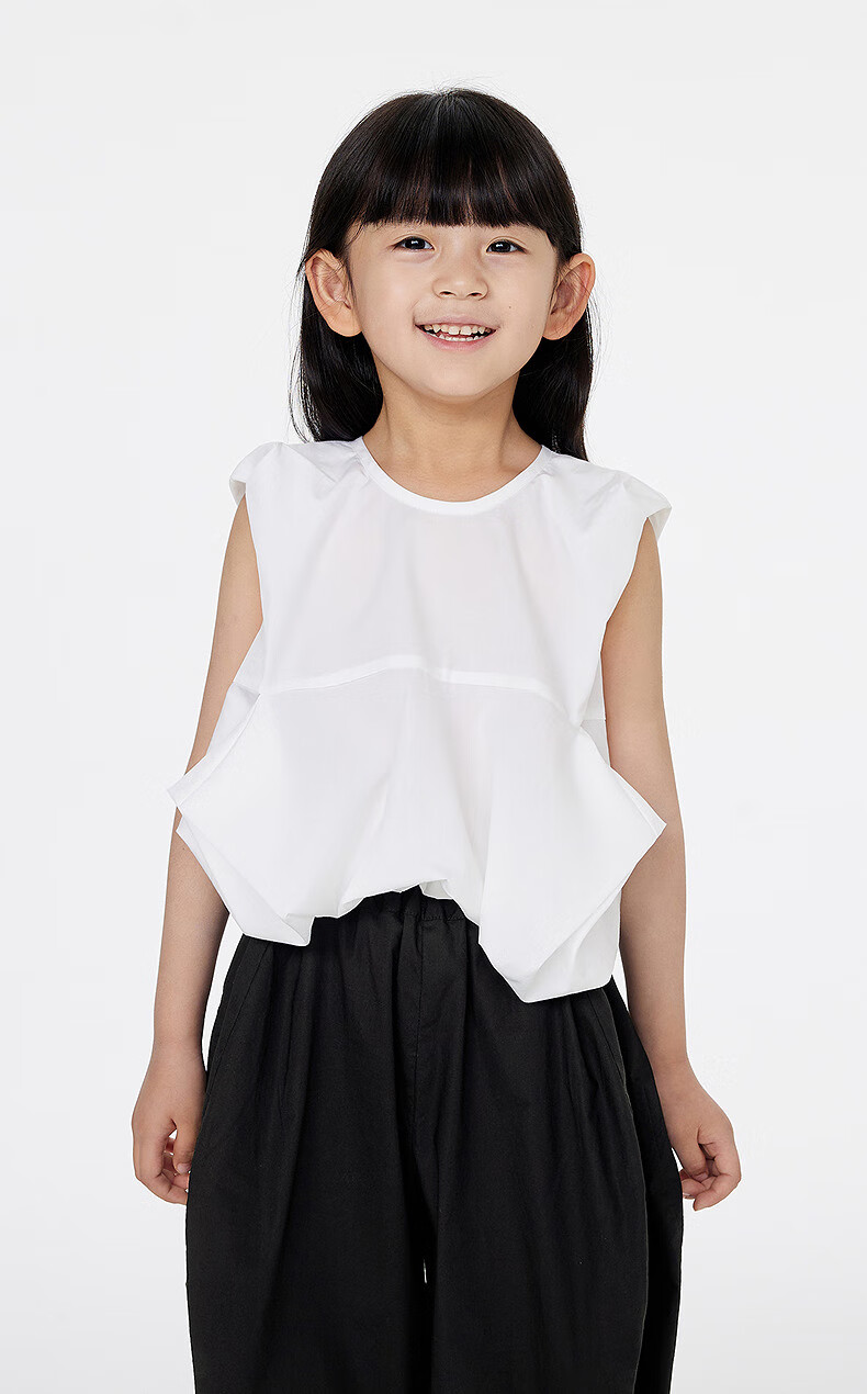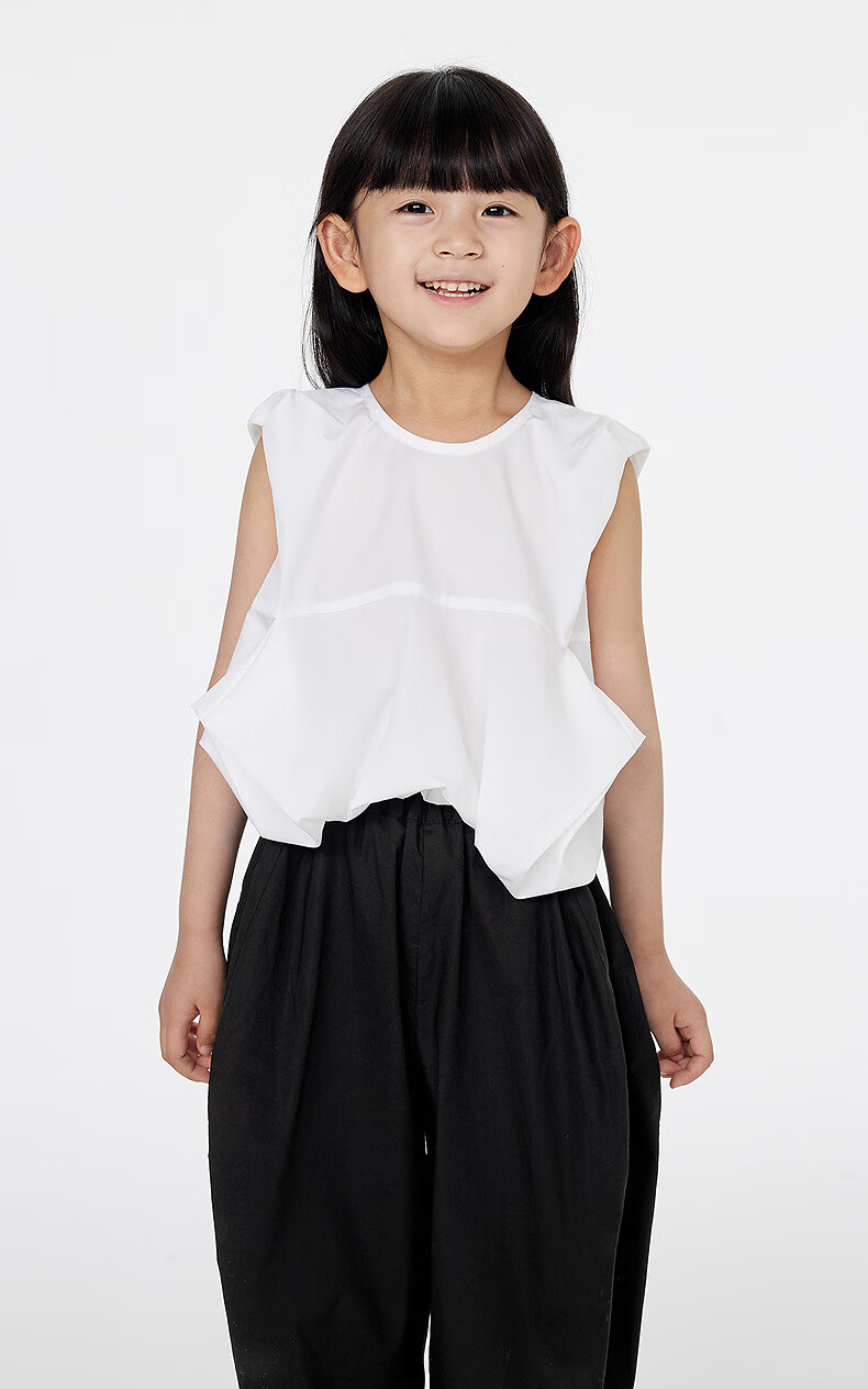 Jnby by JNBY Jiangnan Buyi children's sleeveless shirt H-shaped loose cotton poplin pullover summer girls and children 1P6210840 101/bleached 100 cm