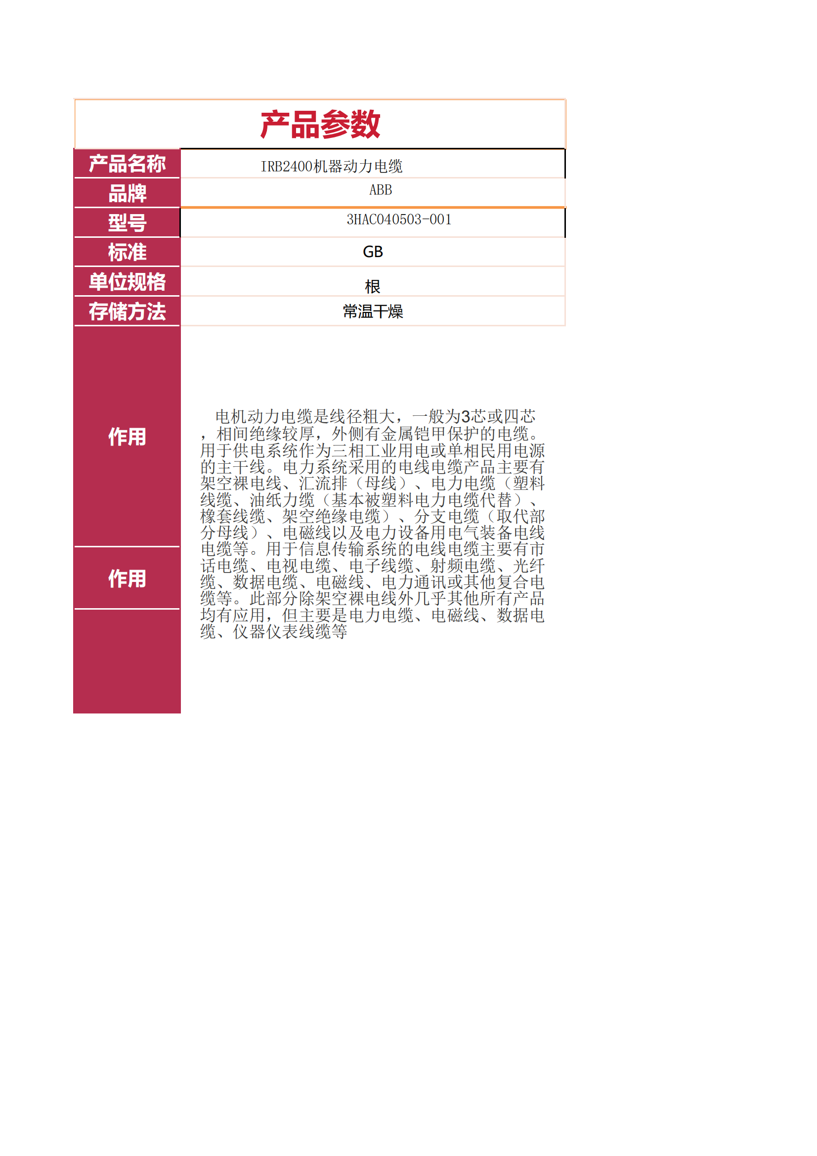 ABB IRB2400 machine power cable 3HAC040503-001 (piece)