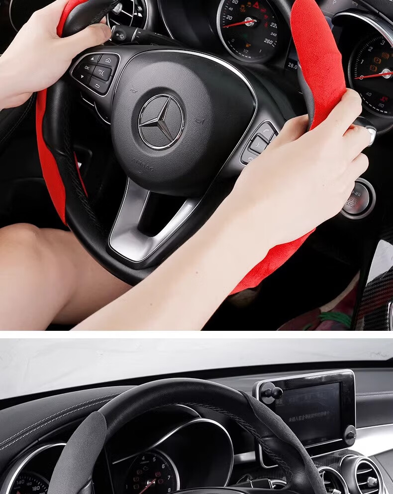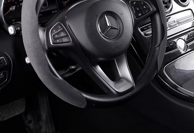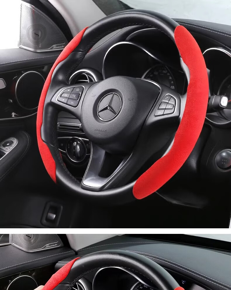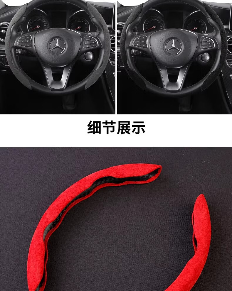 Car suede steering wheel cover winter sweat-absorbent anti-slip ultra-thin D-type cassette handlebar cover for all seasons for men and women 4S grade suede leather carbon black sweat-absorbent and anti-slip