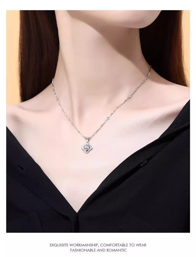 PT950 platinum necklace women's four-leaf clover light luxury diamond pendant 18 clavicle chain girlfriend gift lucky four-leaf clover necklace pendant (white diamond)