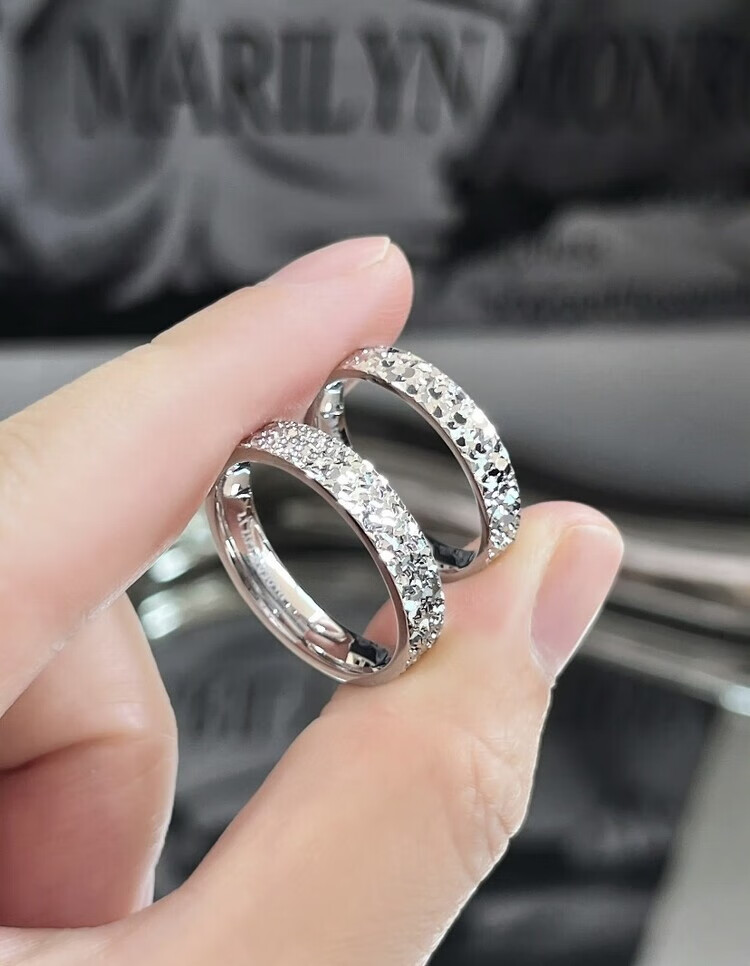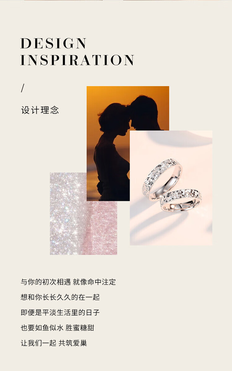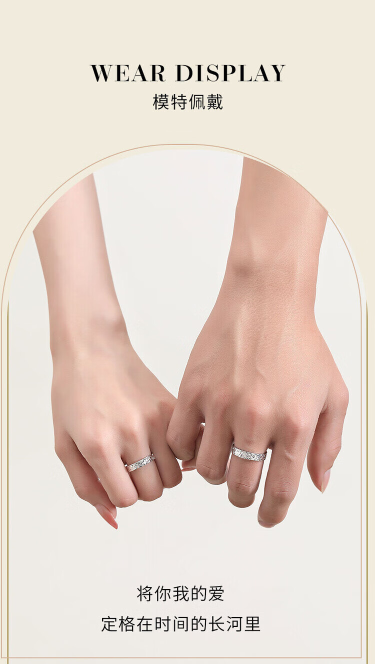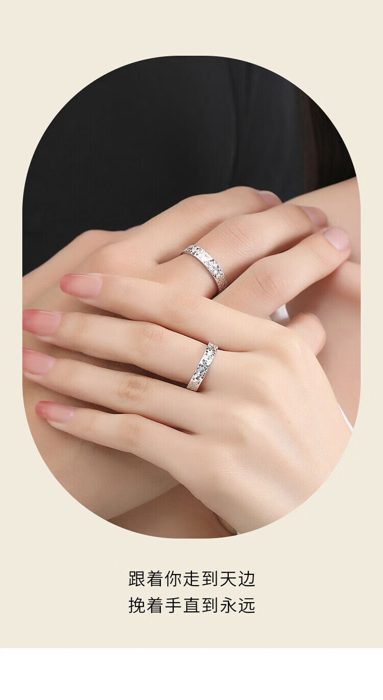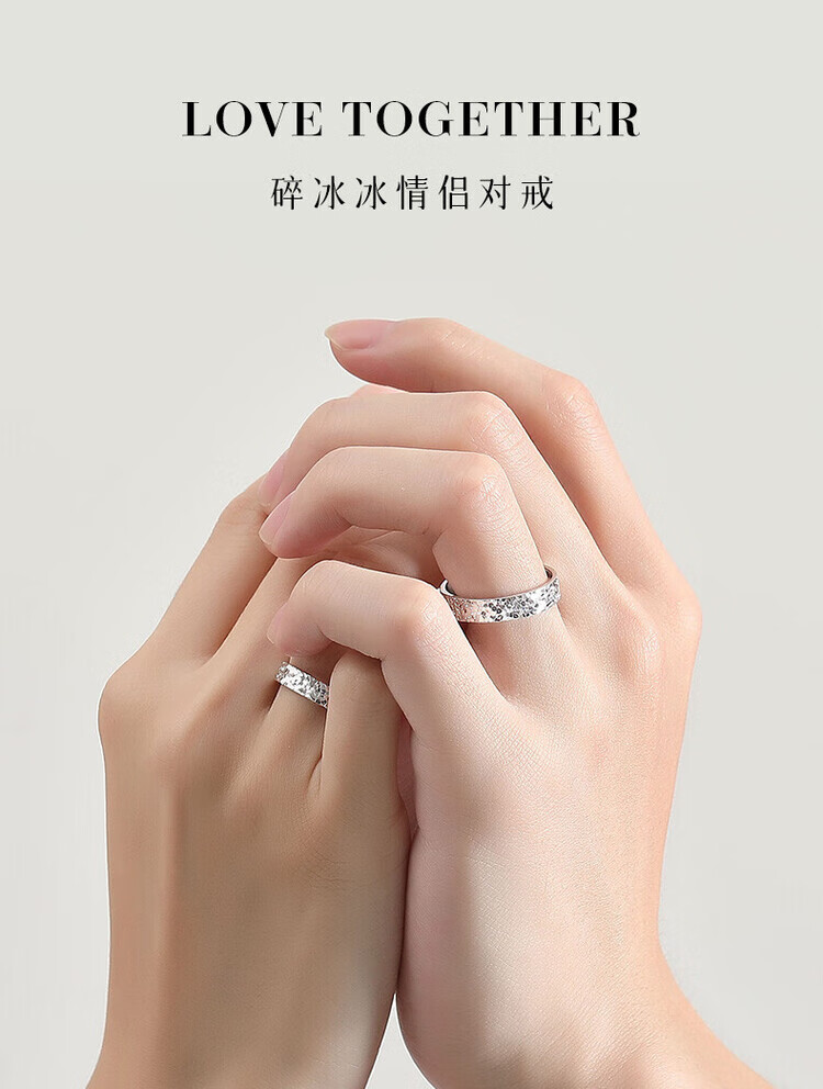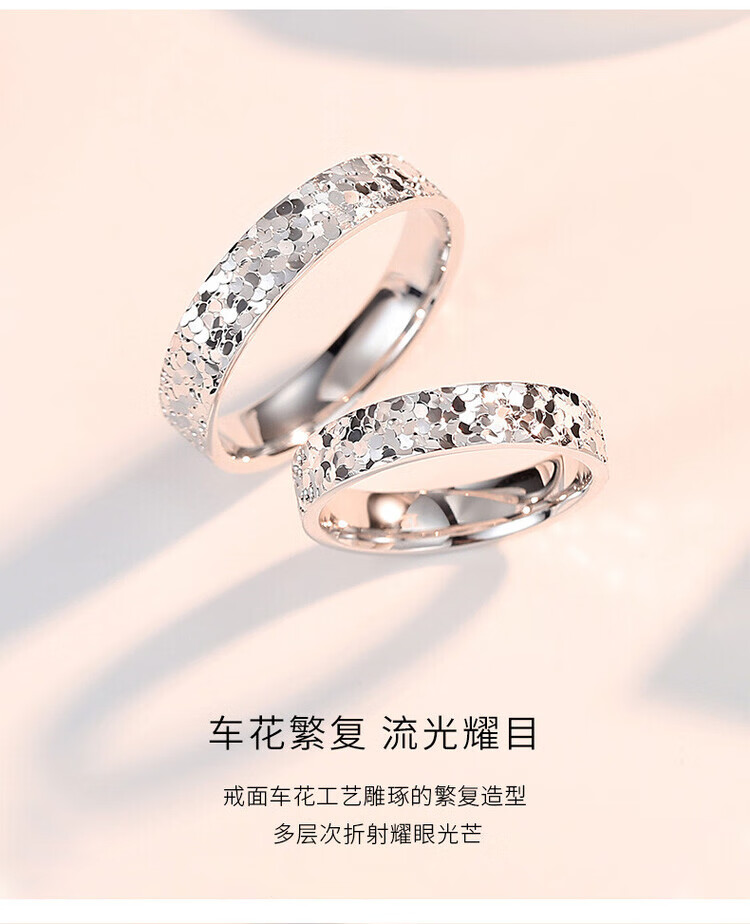 PT950 platinum ring for men and women, broken ice couple ring, platinum ring with engraving, 520 proposal gift for girlfriend, female ring size 10 (circumference 51-52)