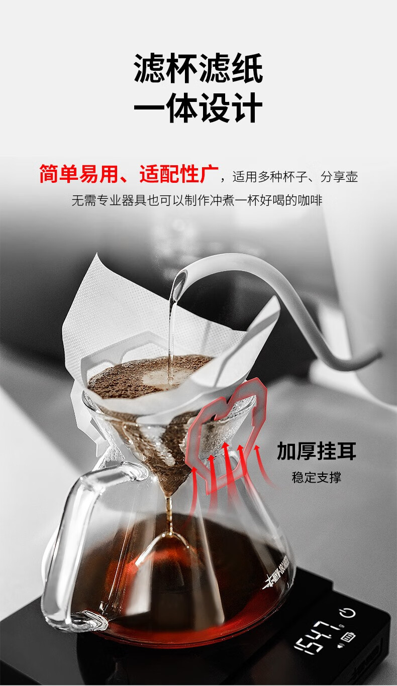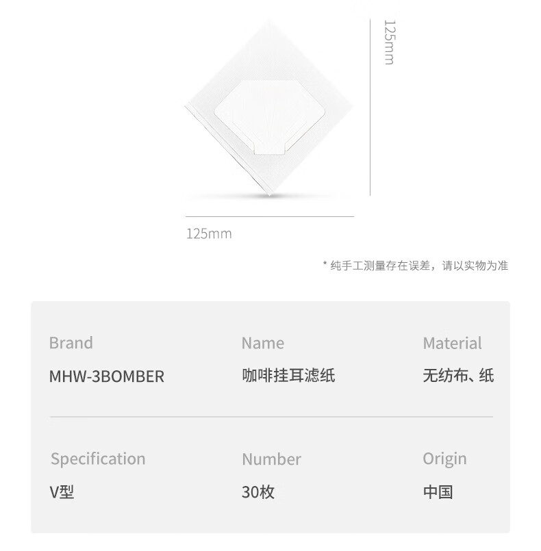 MHW-3BOMBER bomber coffee hanging filter paper hand-brewed coffee extraction filter paper V-shaped square filter paper outdoor camping portable square hanging filter paper-50 pieces no filter cup required