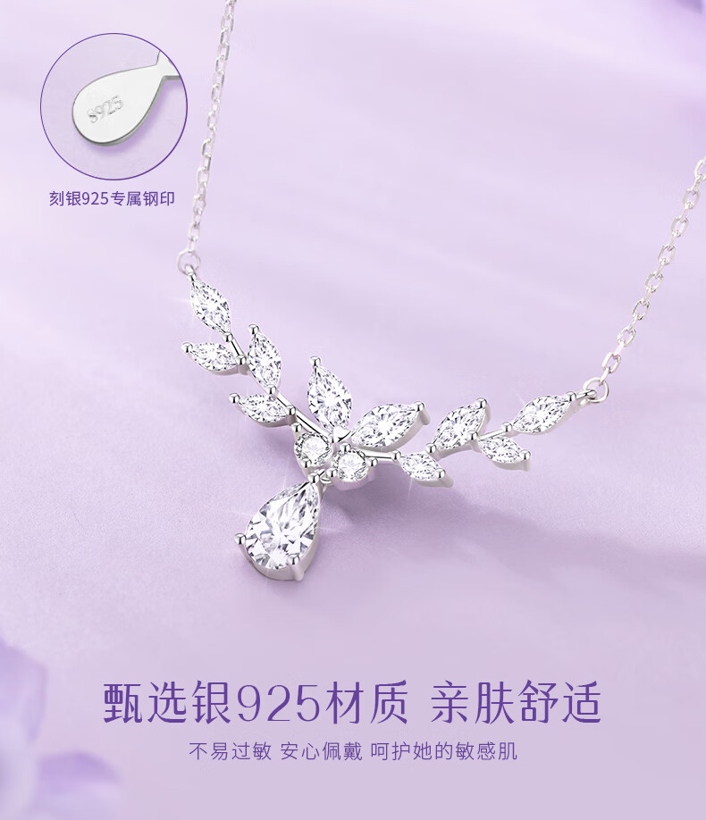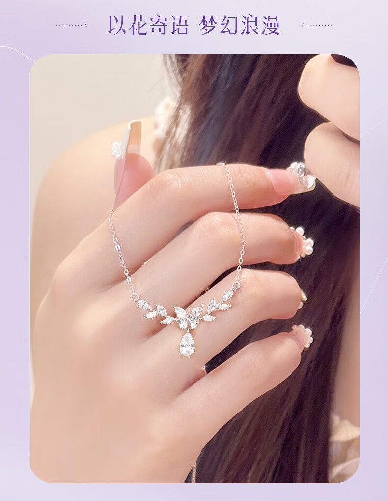Lao Fengxiang Wisteria Flower Silver Necklace Women's Pendant Clavicle Chain 2025 New Birthday Gift for Girlfriend and Wife Silver Jewelry Wisteria Flower Necklace + Certificate + Gift Box