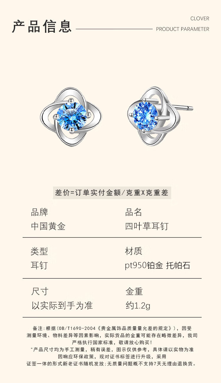 CHINA GOLD pt950 platinum lucky four-leaf clover earrings women's platinum earrings Valentine's Day birthday gift for girlfriend and lover pt950-four-leaf clover earrings white about 1.2g