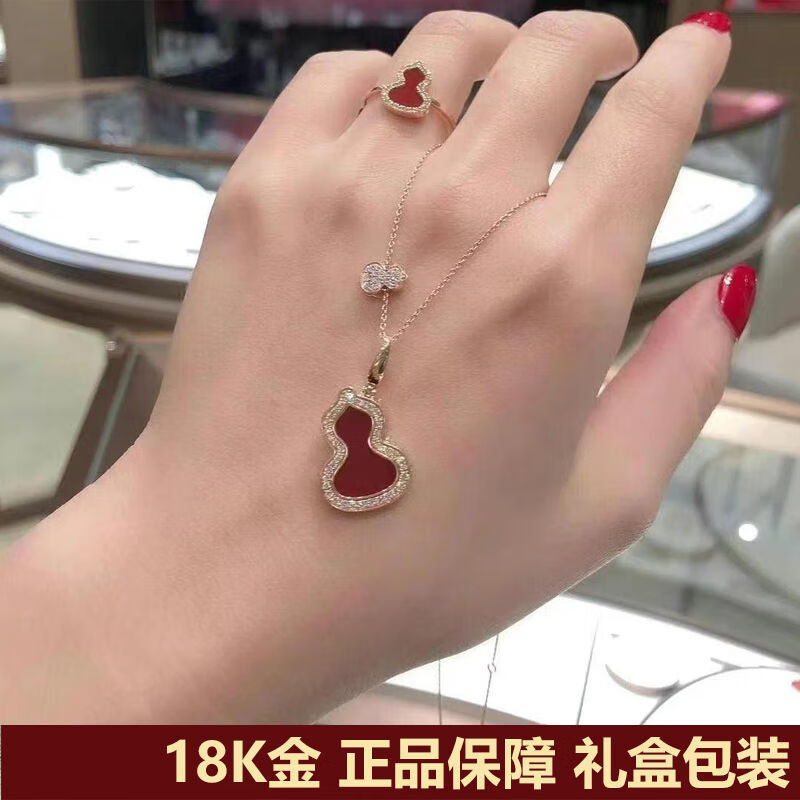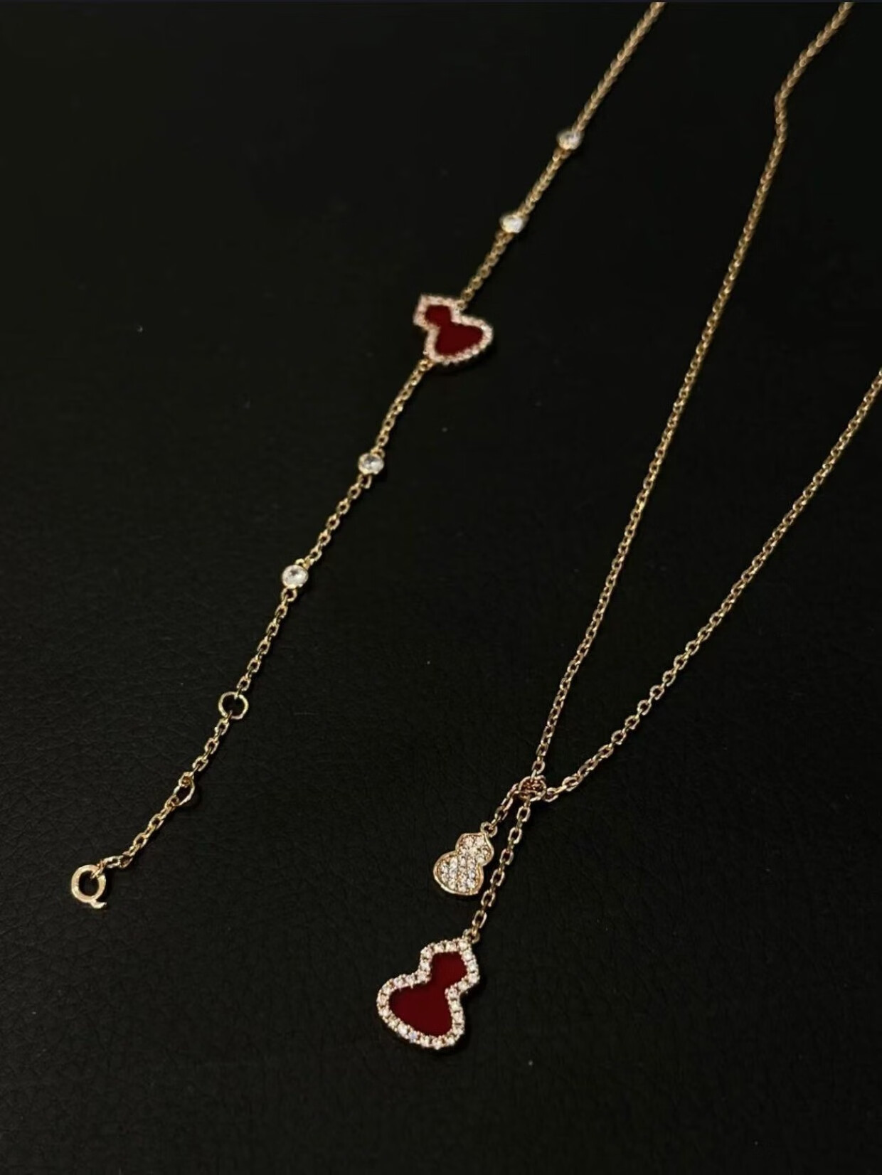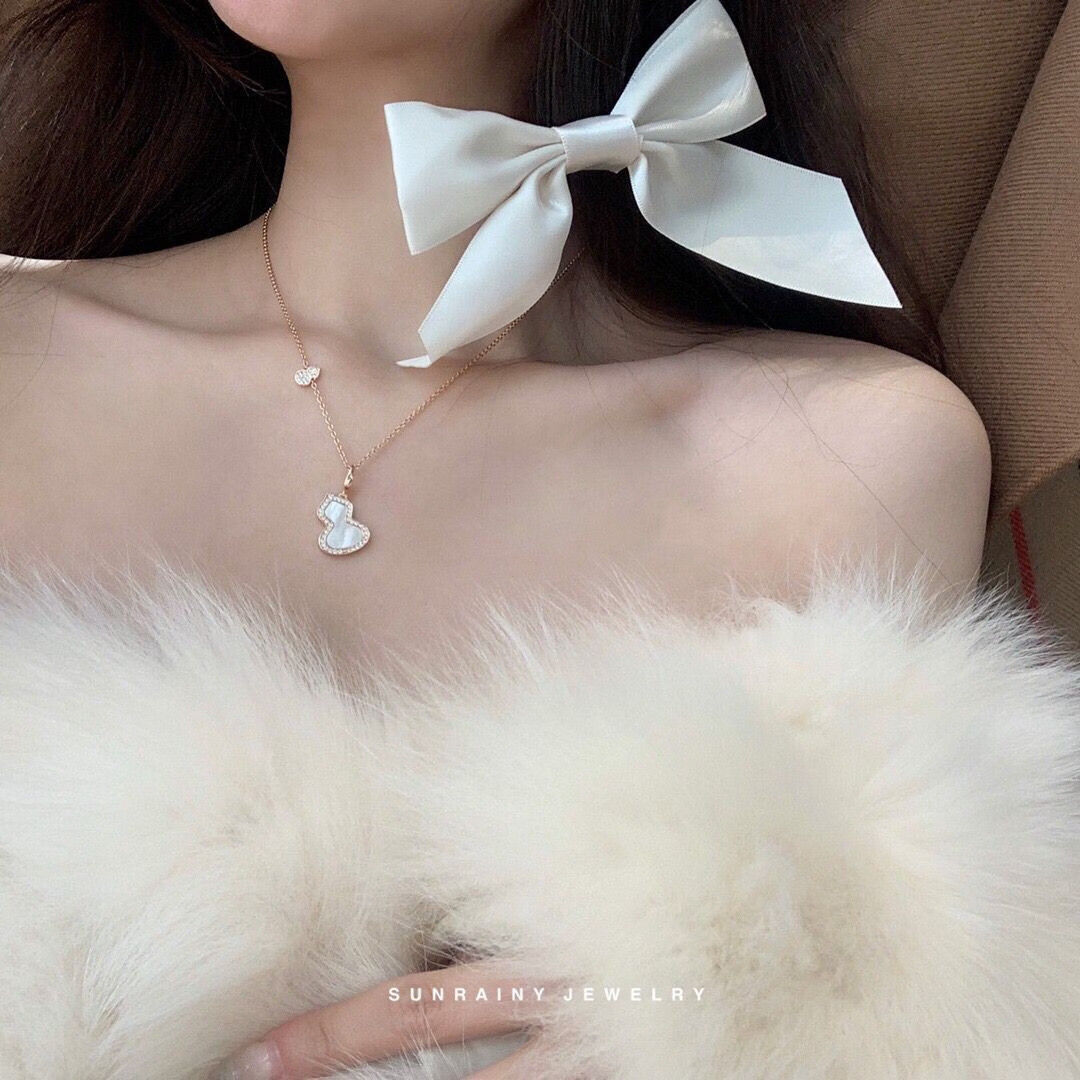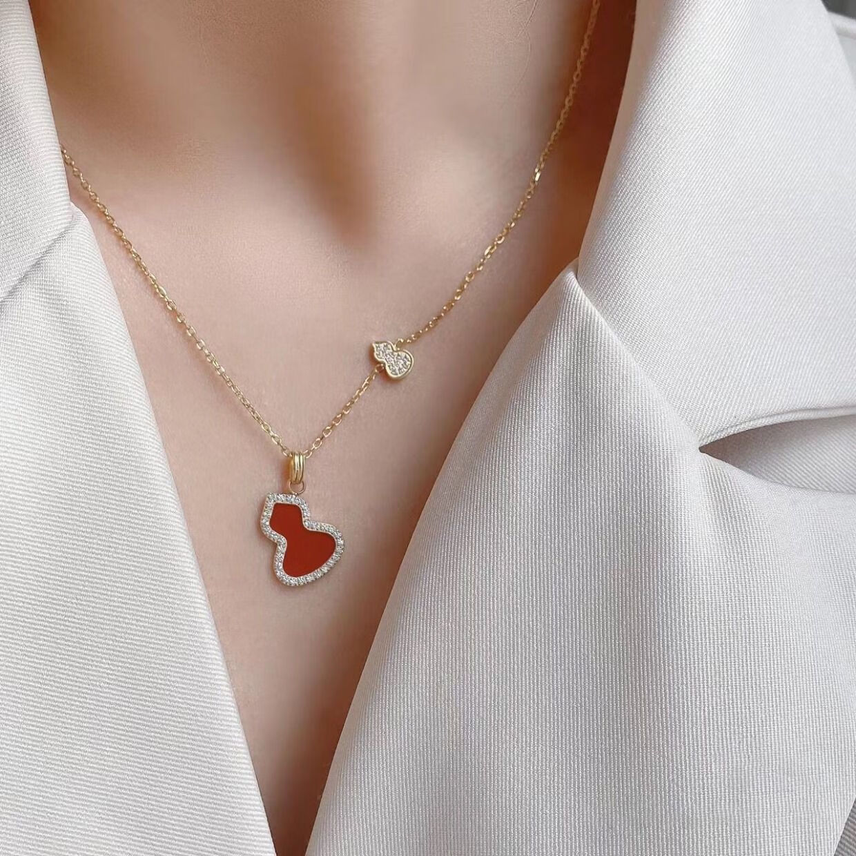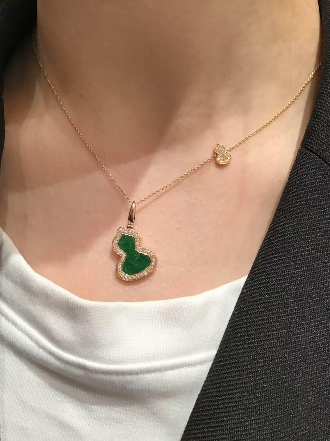 Wei Ci light luxury 18K gold-plated unicorn gourd necklace for women carnelian white mother-of-pearl rose gold with diamonds as a birthday gift for your girlfriend, small size, green agate, rose gold
