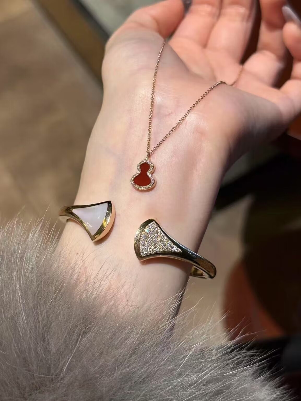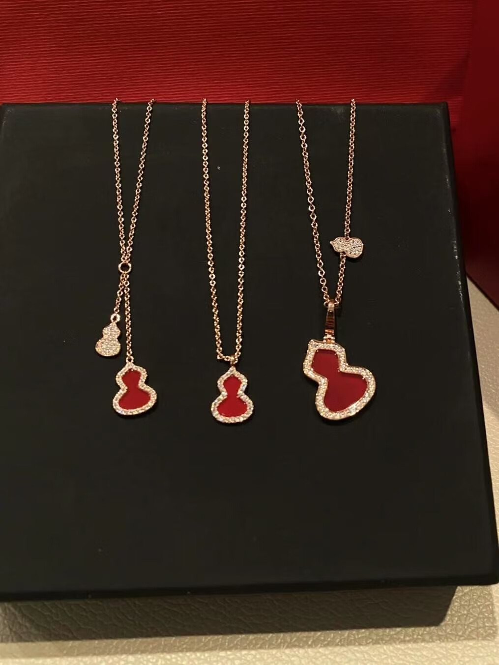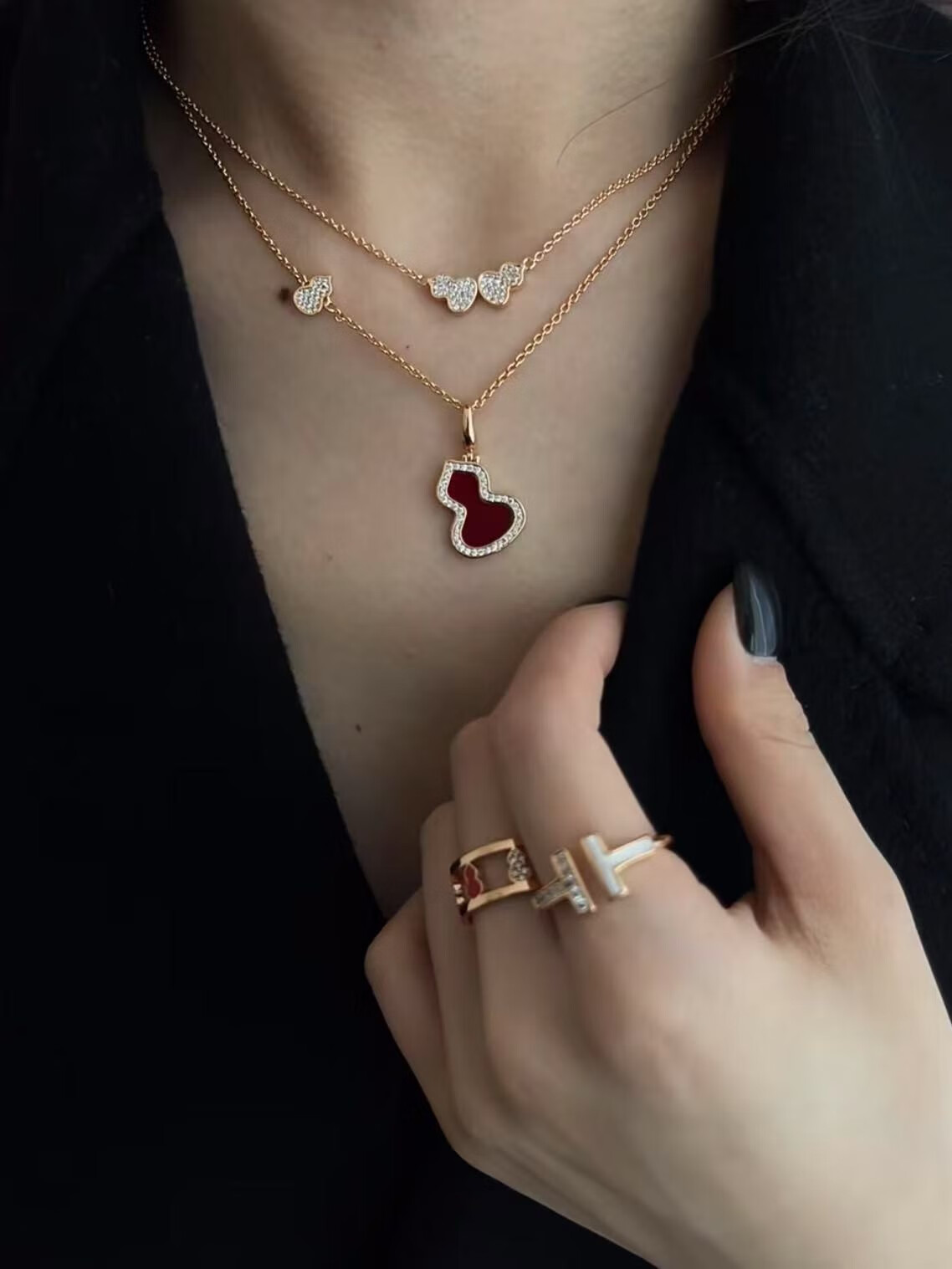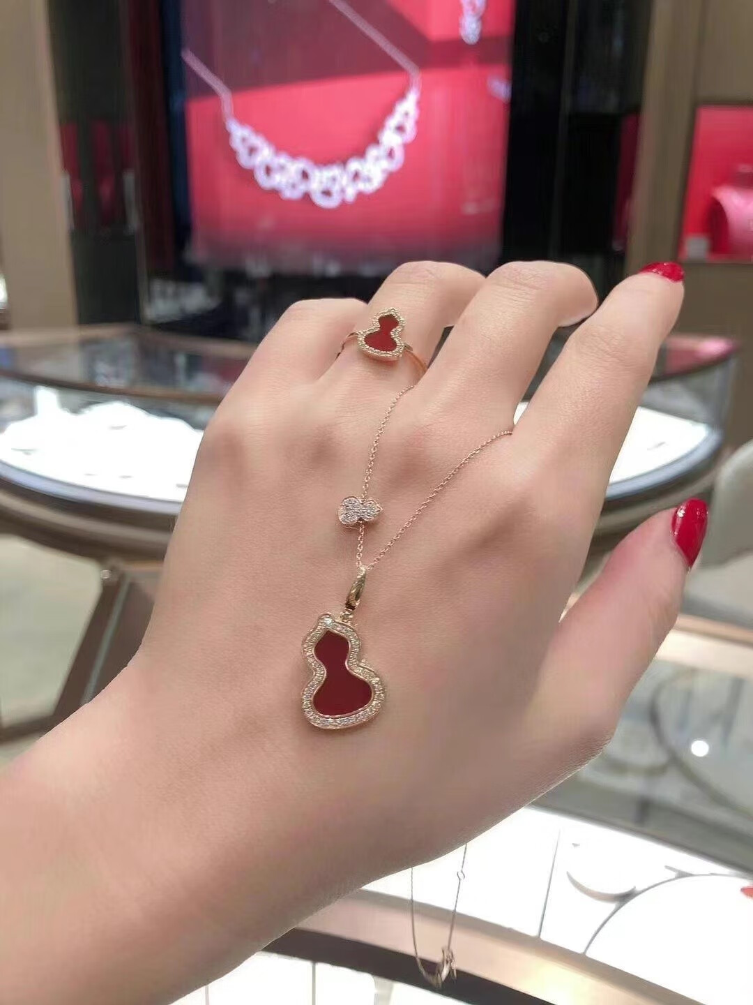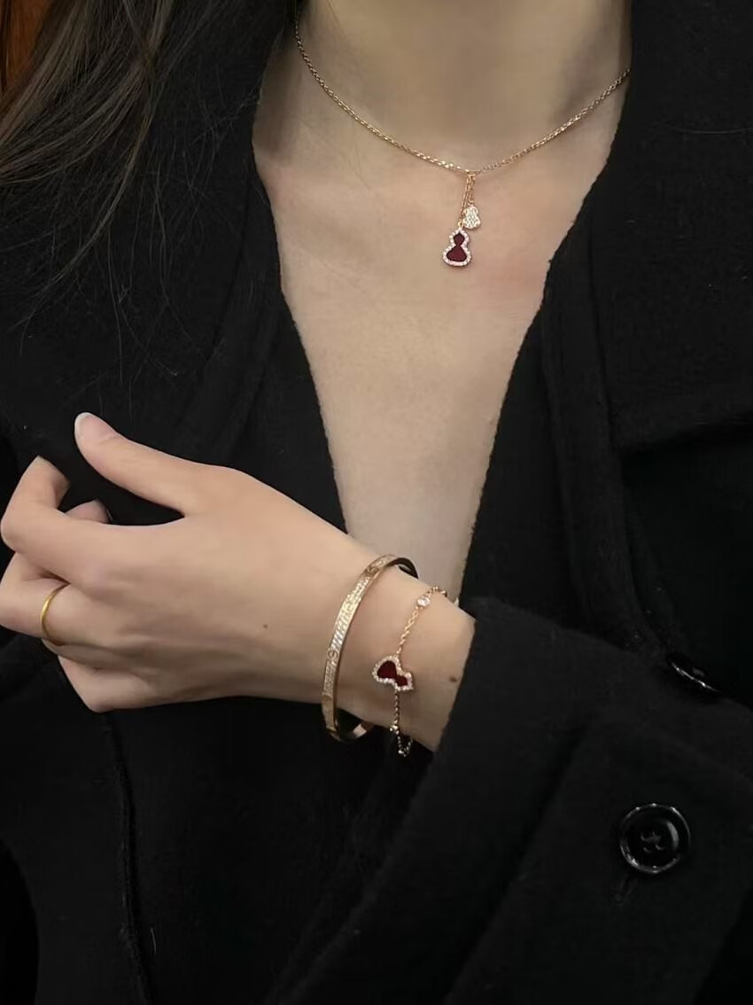 Wei Ci light luxury 18K gold-plated unicorn gourd necklace for women carnelian white mother-of-pearl rose gold with diamonds as a birthday gift for your girlfriend, small size, green agate, rose gold