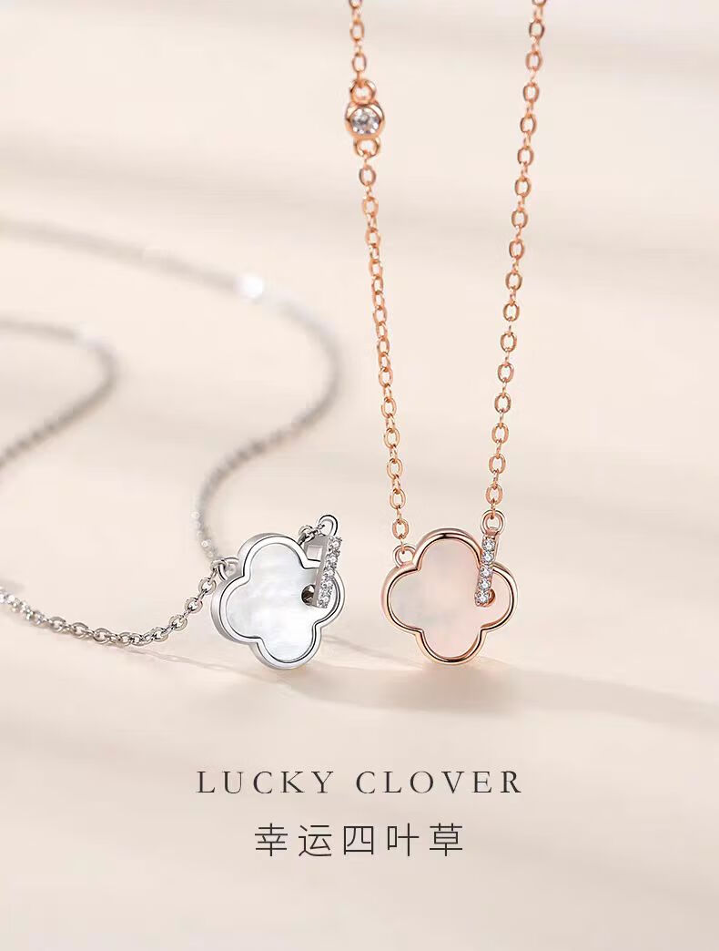 Wei Ci 2025 New Necklace Women's Four-leaf Clover Plated 18K Rose Gold Pendant Color Gold Clavicle Chain as a Gift for Your Girlfriend Four-leaf Clover Necklace (Rose Gold)