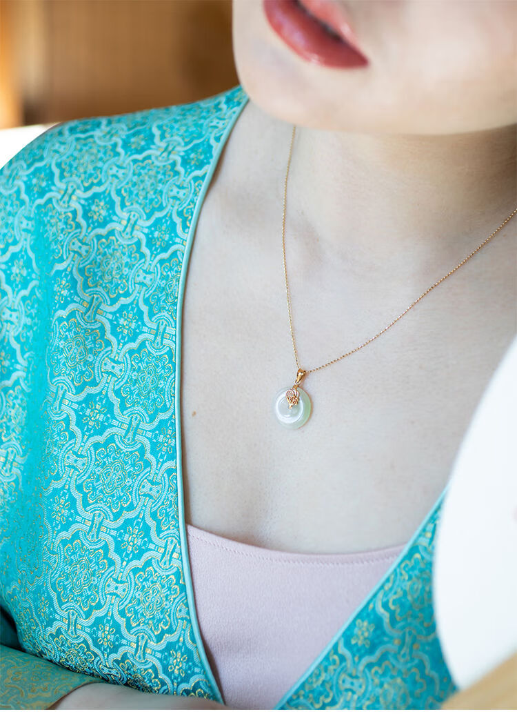Wei Ci MissQueeny Qiwei 18k gold flower leaves green Hetian jade pendant summer fresh and elegant gold flower