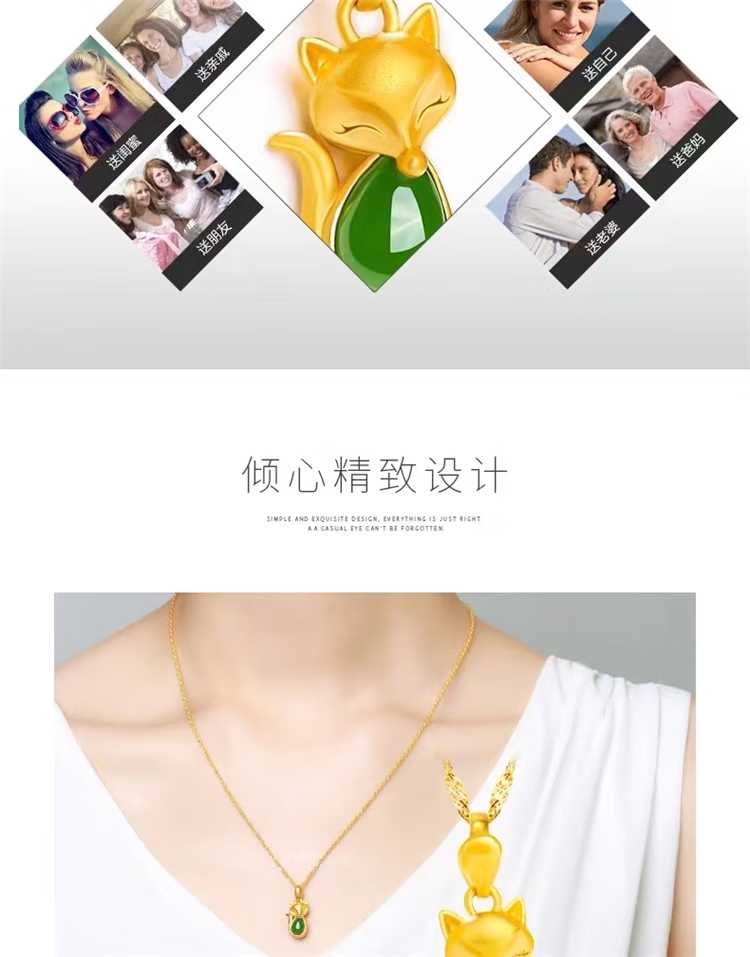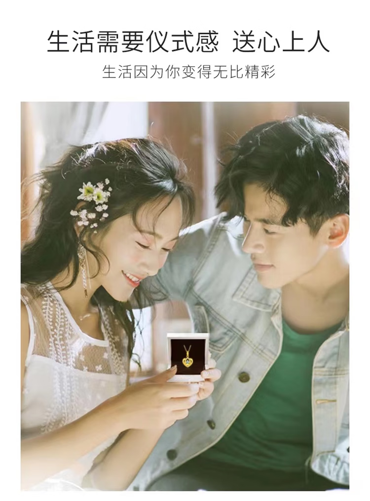 Wei Ci gold necklace women's pure gold heart-shaped pendant plated 18k color gold clavicle chain 2025 new Valentine's Day gift Jasper Fox