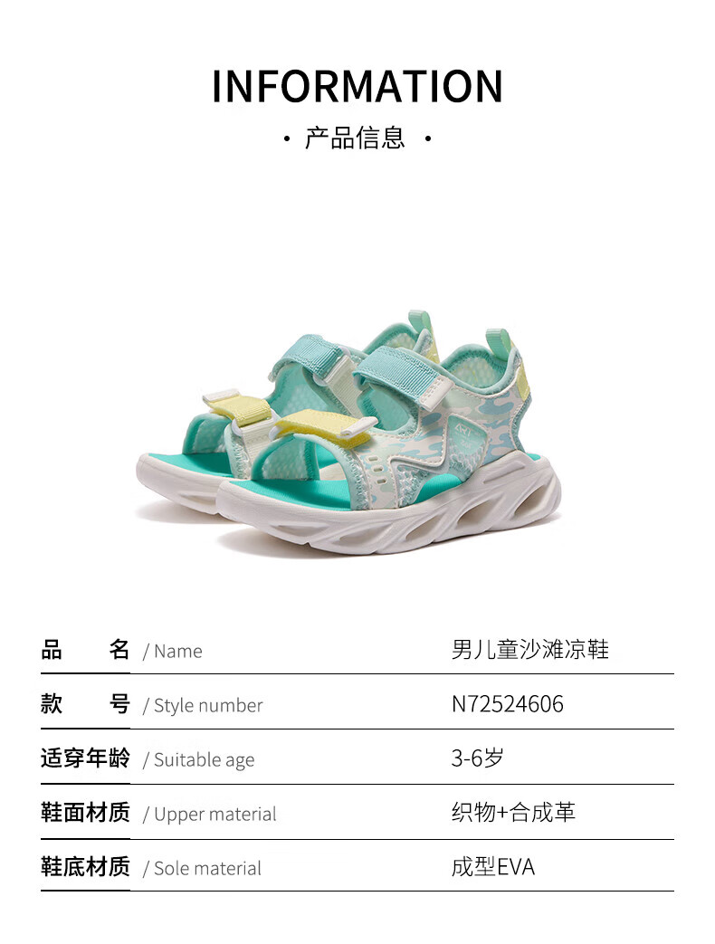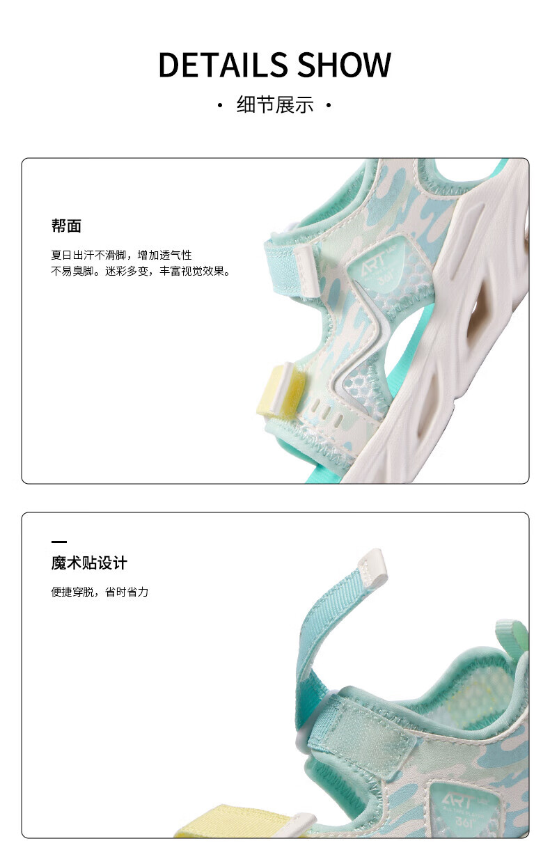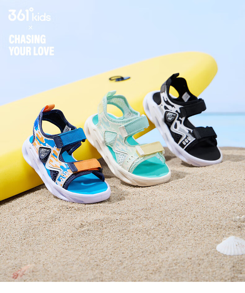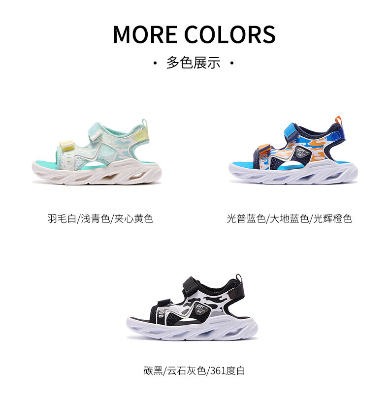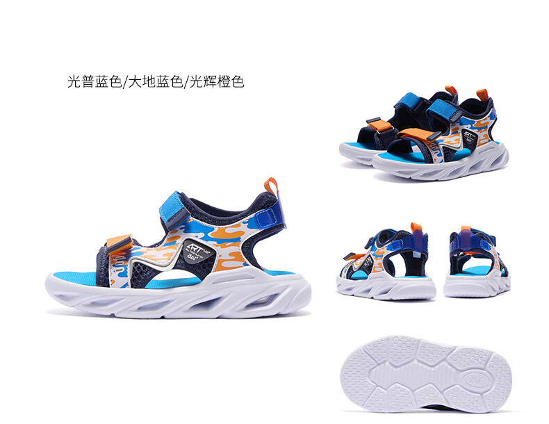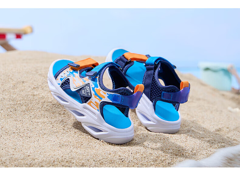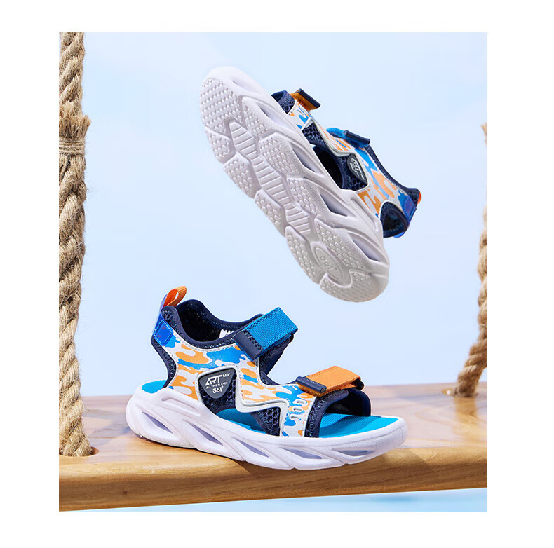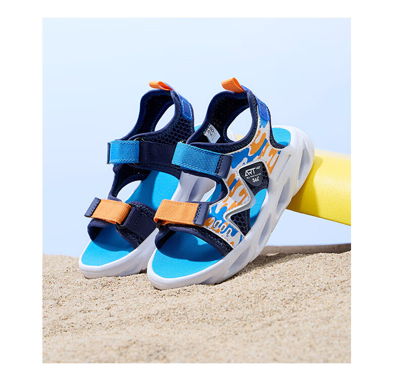 361 Children's Shoes Boys Beach Open Toe Sandals Summer New Children's Shoes Light Blue/Earth Blue/Glory Orange 28